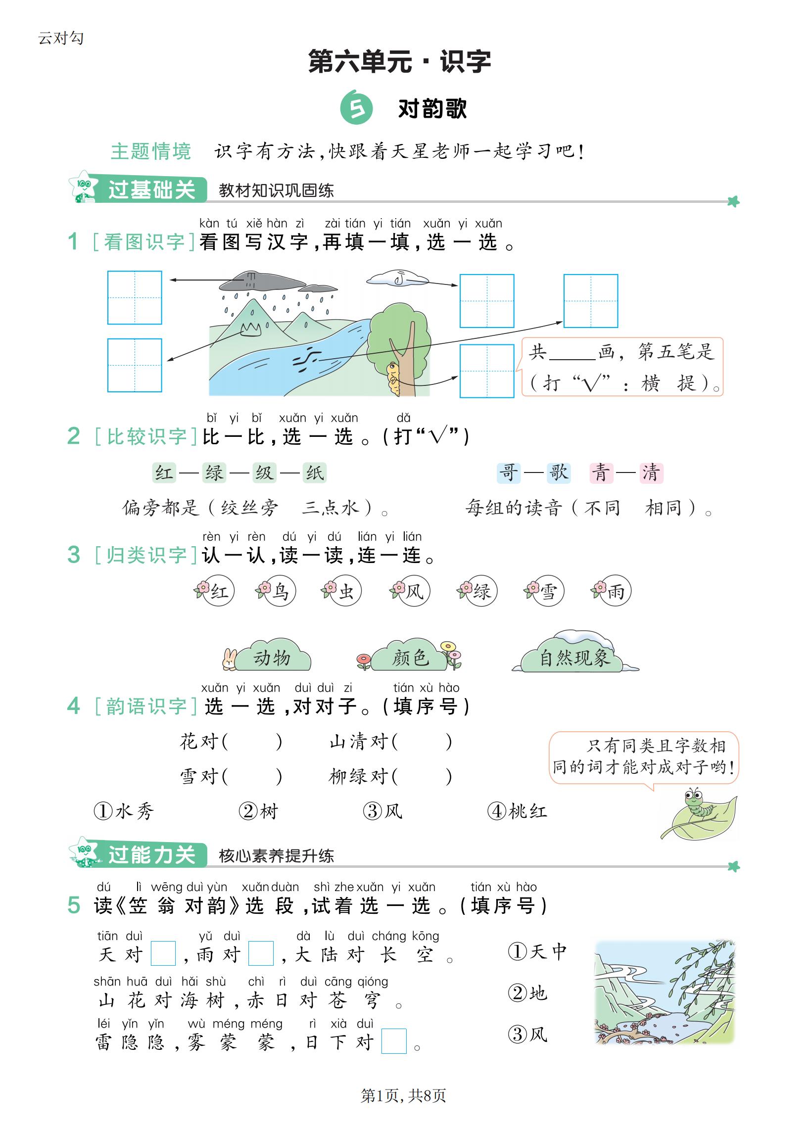 五年级语文上册 · 第一单元同步练习册-2025秋
