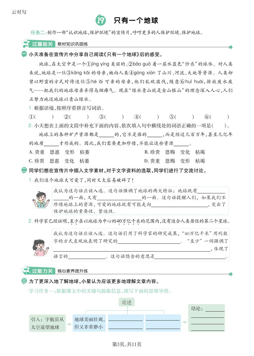 五年级语文上册 · 第三单元同步练习册-2025秋