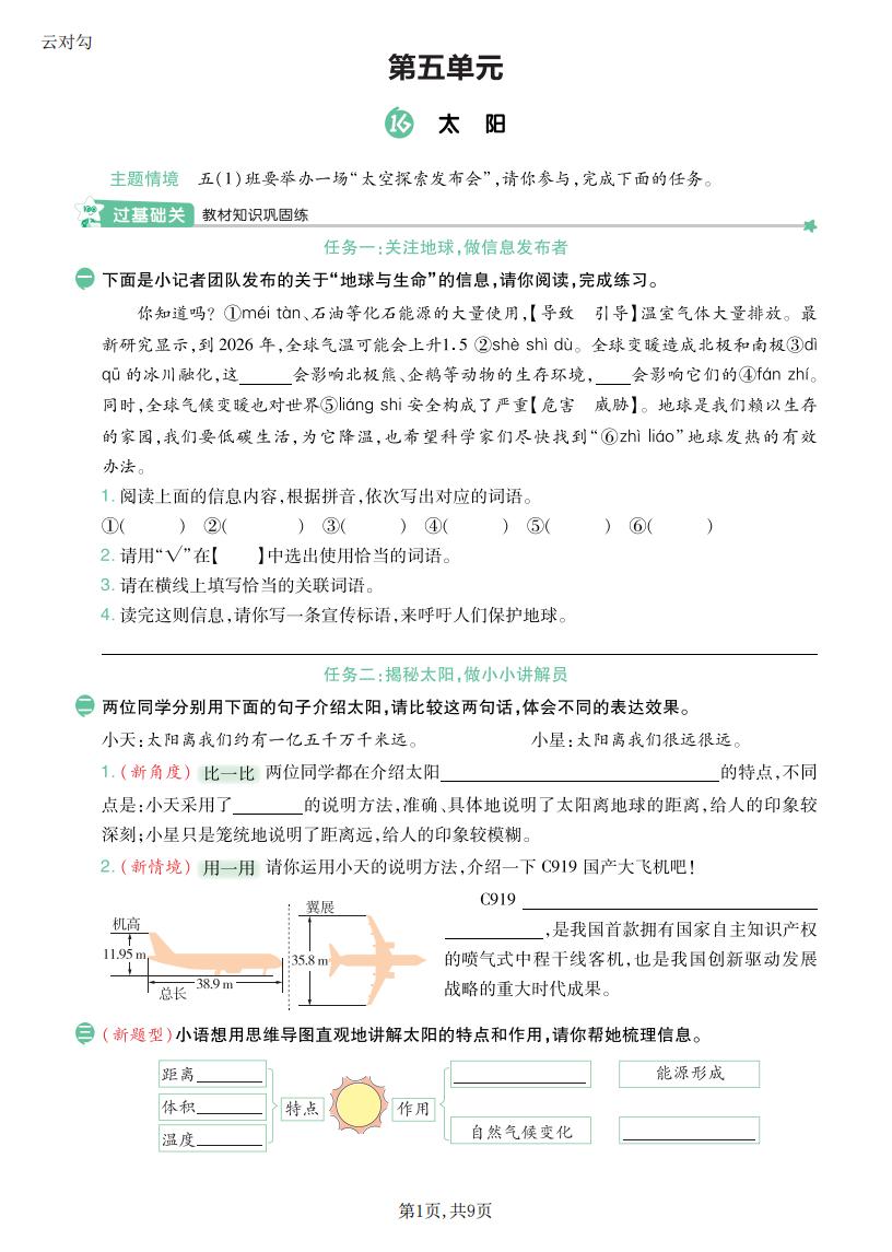 一年级语文上册 · 第二单元素质达标测试卷-2025秋