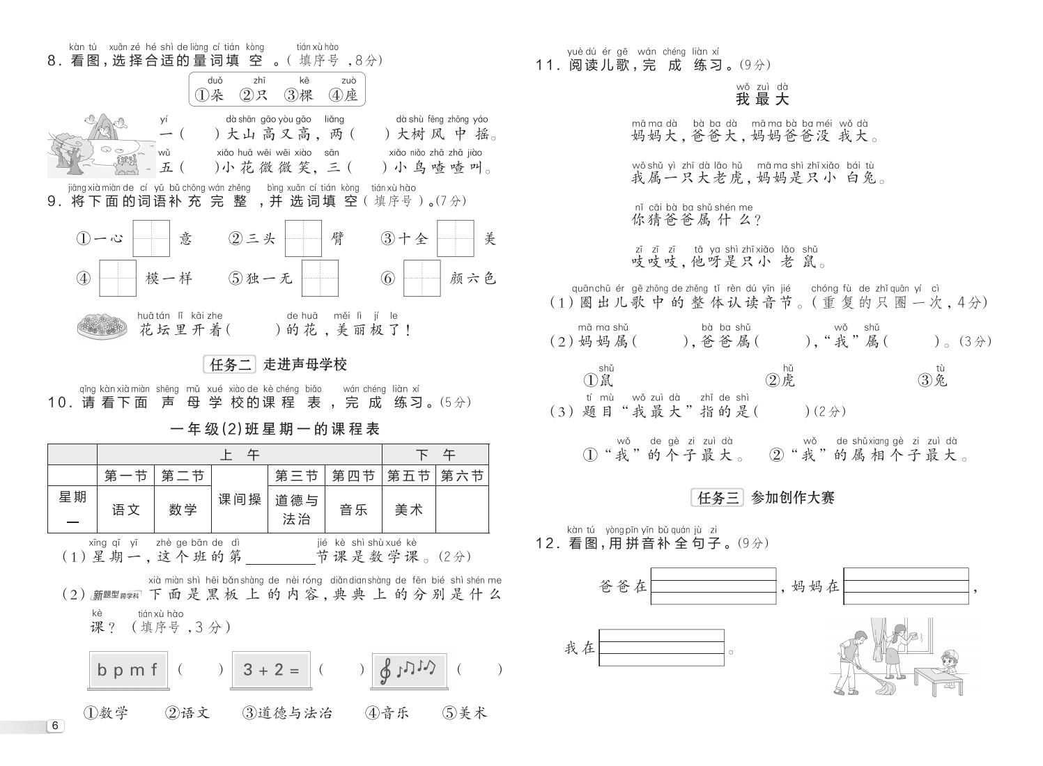 一年级语文上册 · 第三单元素质达标测试卷-2025秋