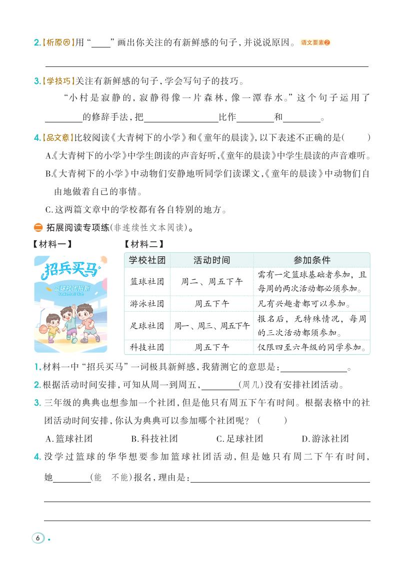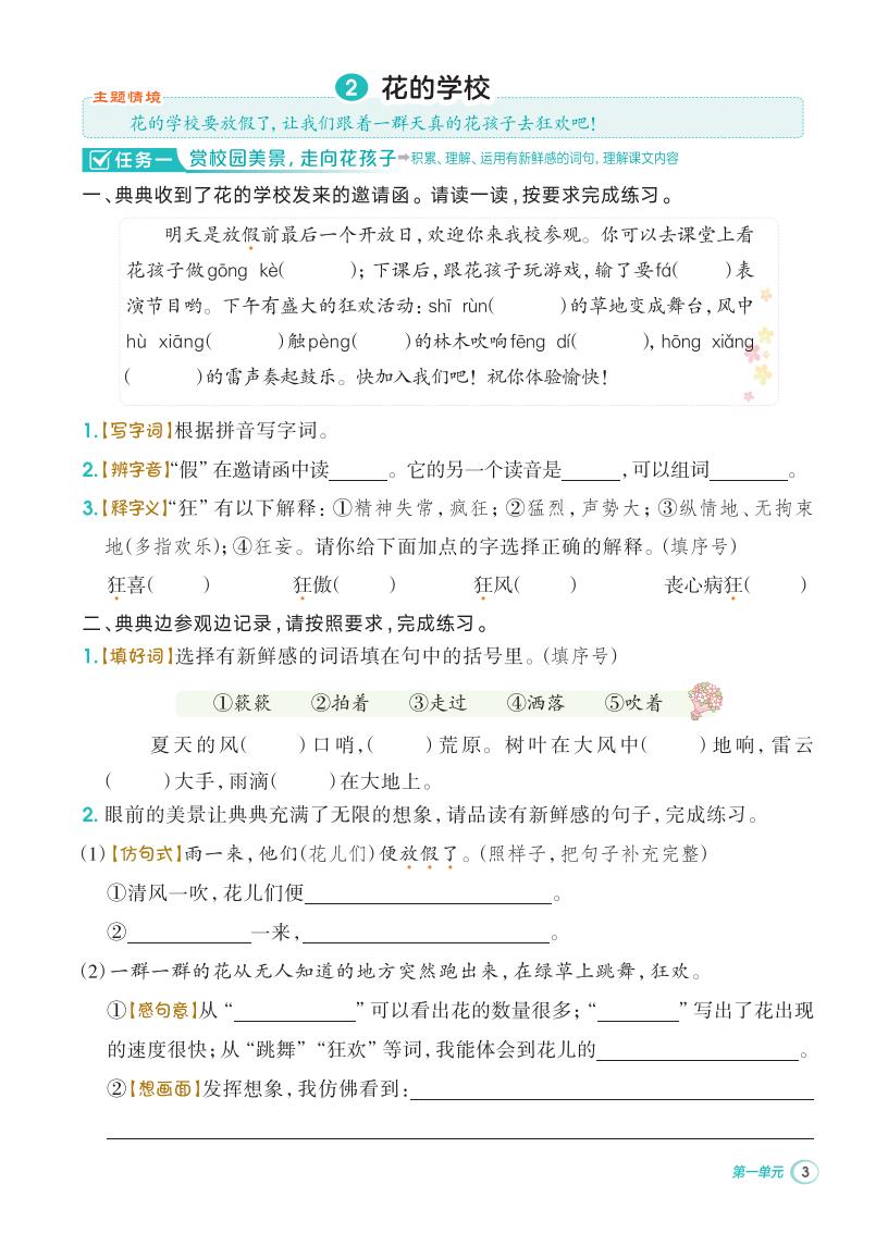 三年级语文上册 · 第一单元同步练习册-2025秋