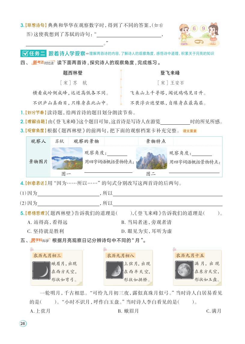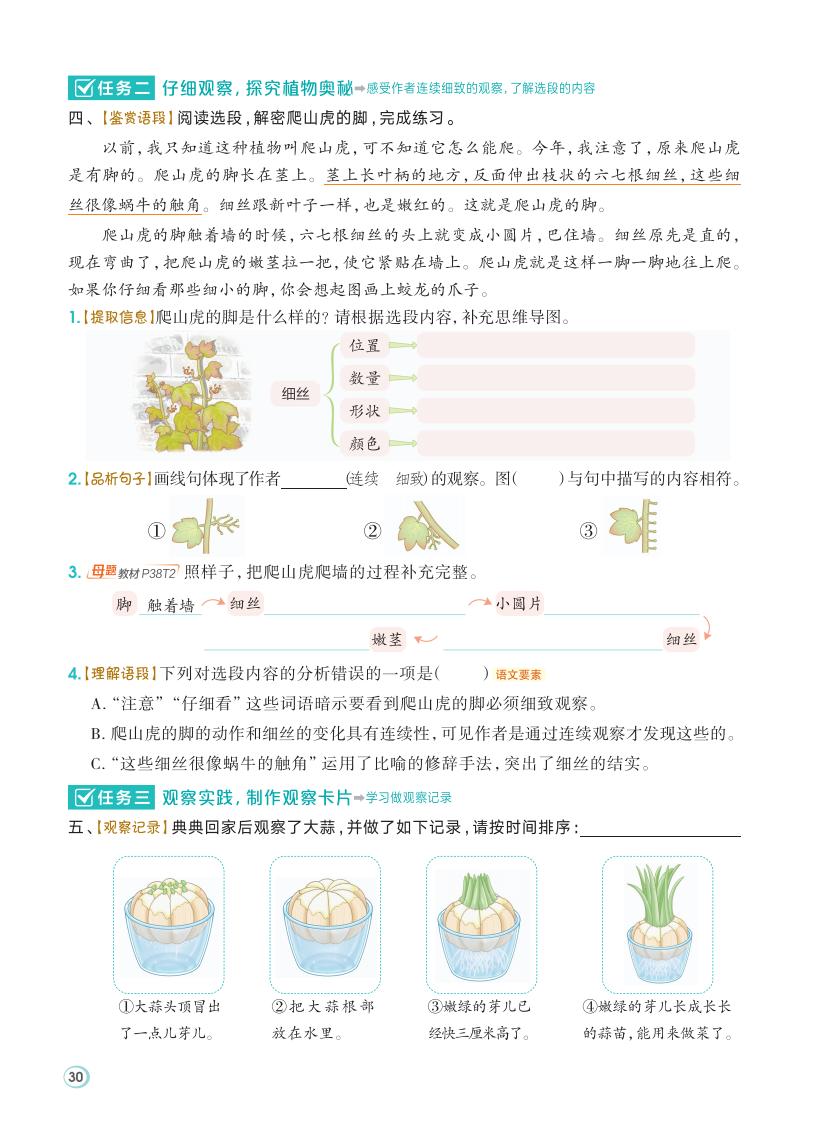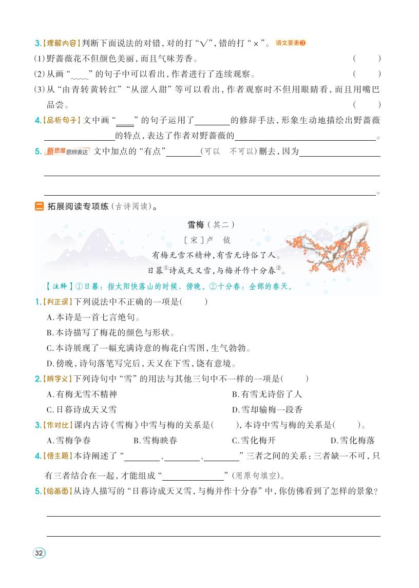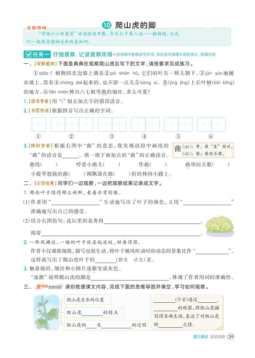 四年级语文上册 · 第三单元同步练习册-2025秋