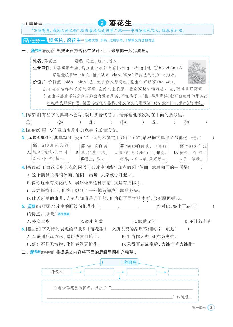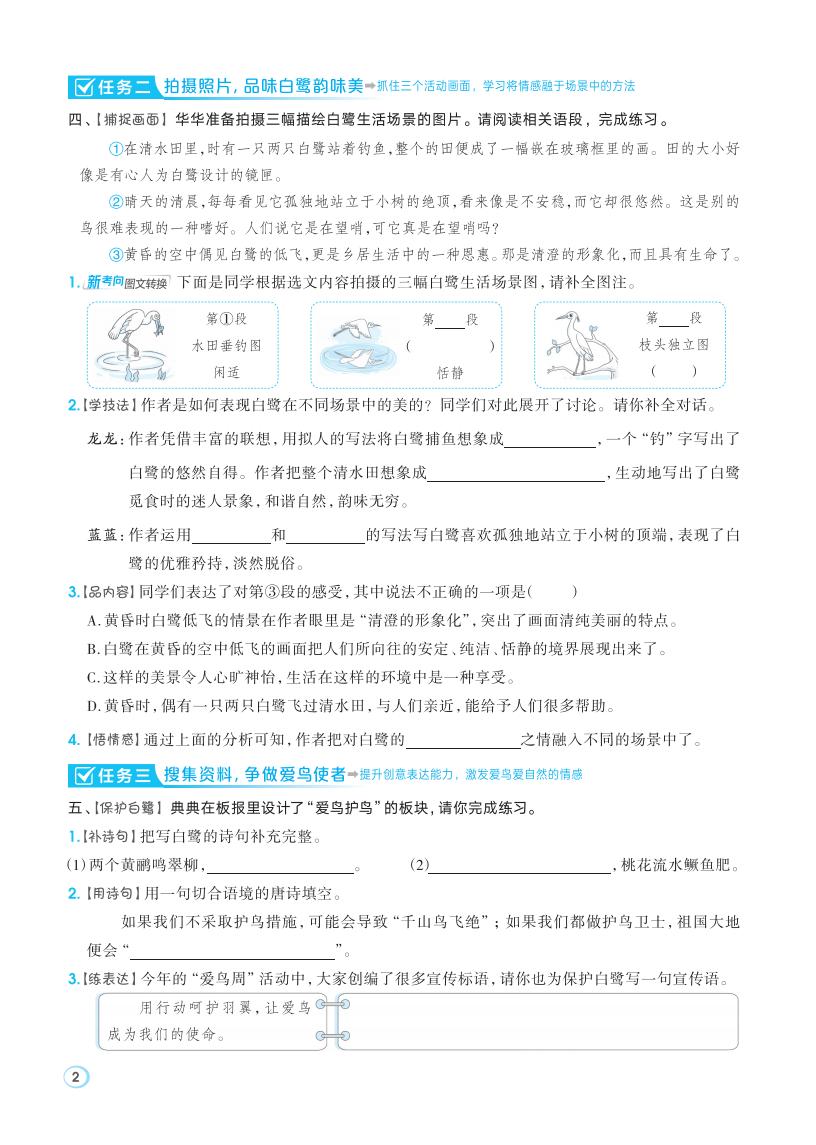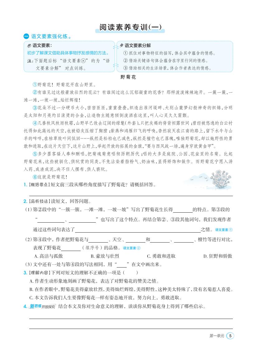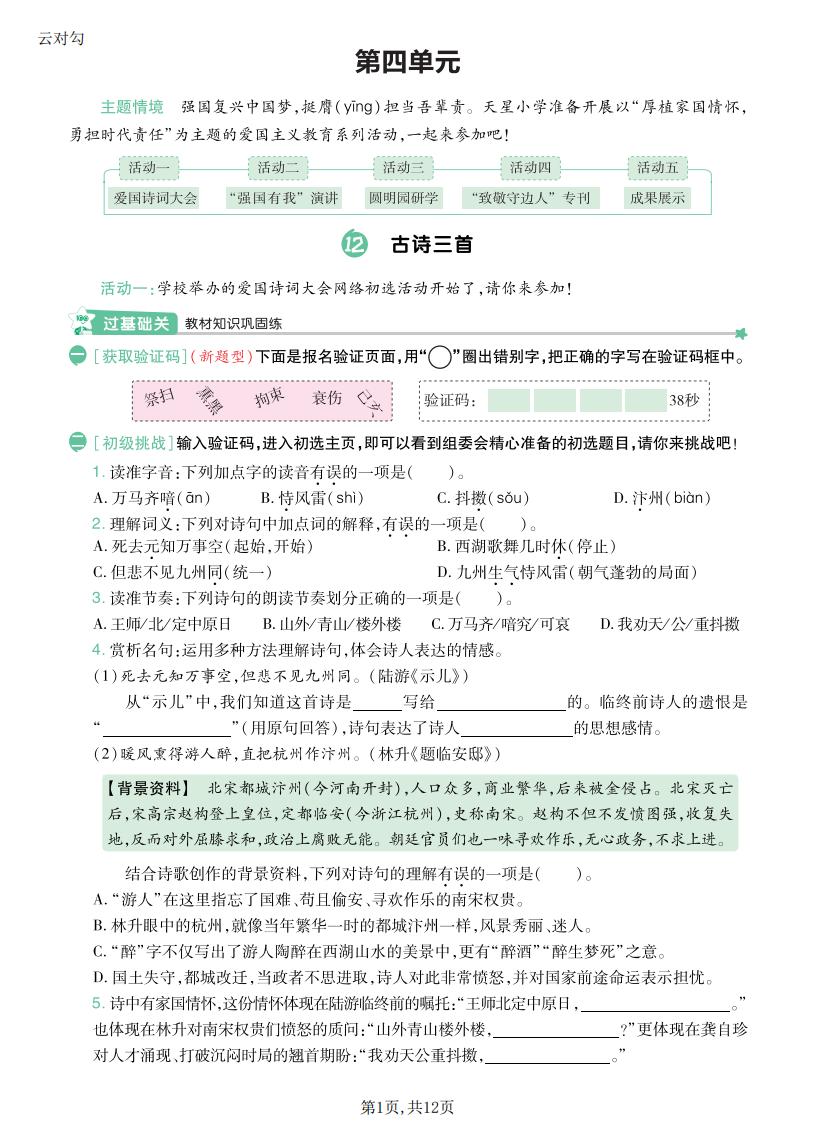 五年级语文上册 · 第一单元同步练习册-2025秋