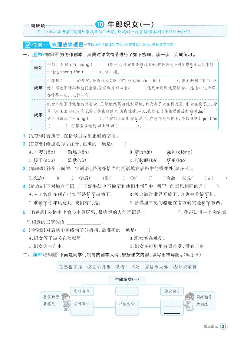 五年级语文上册 · 第三单元同步练习册-2025秋