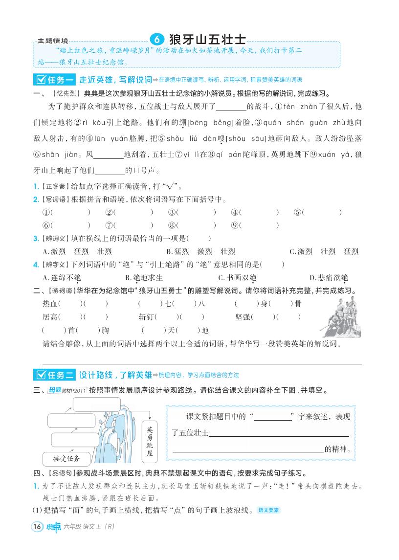 六年级语文上册 · 第二单元同步练习册-2025秋
