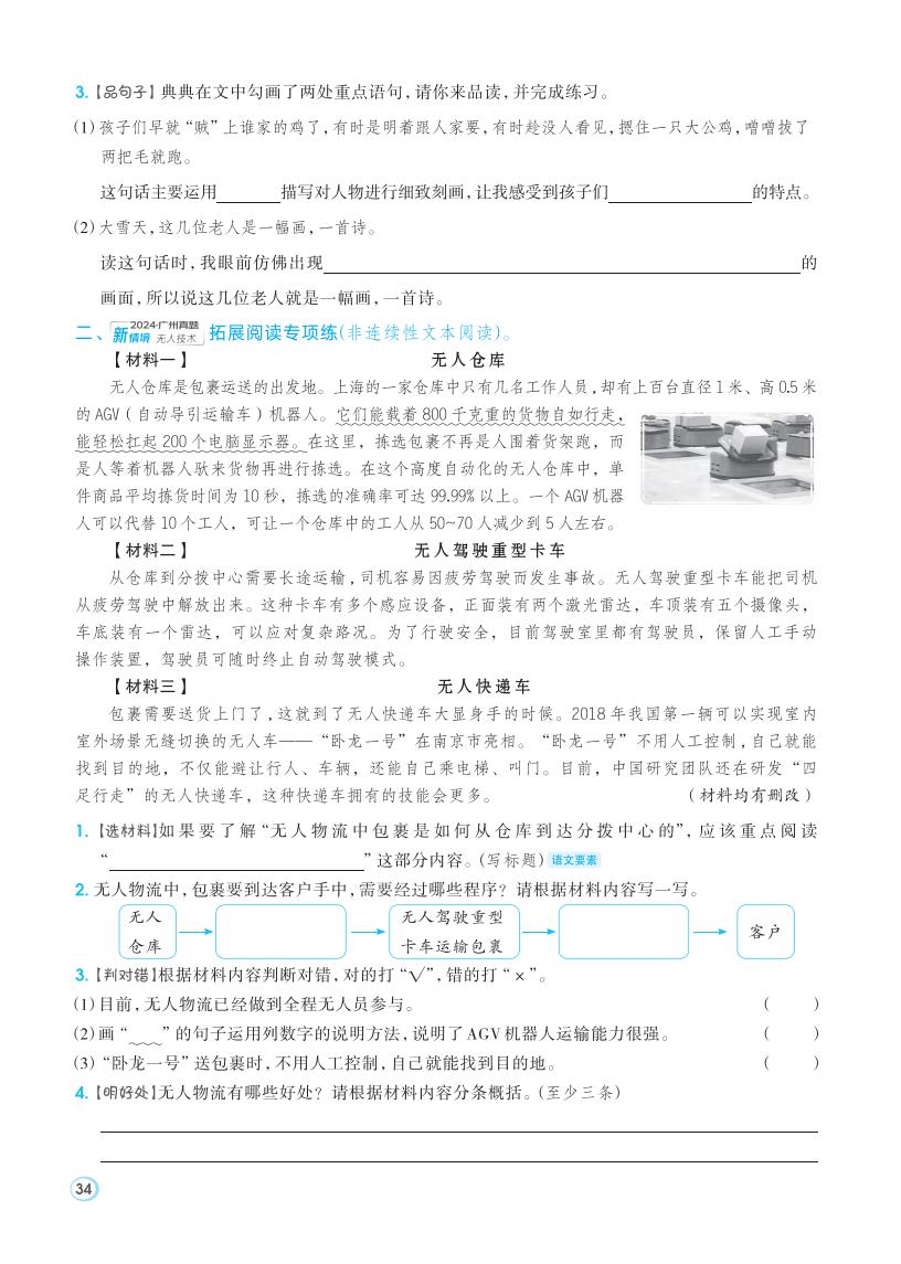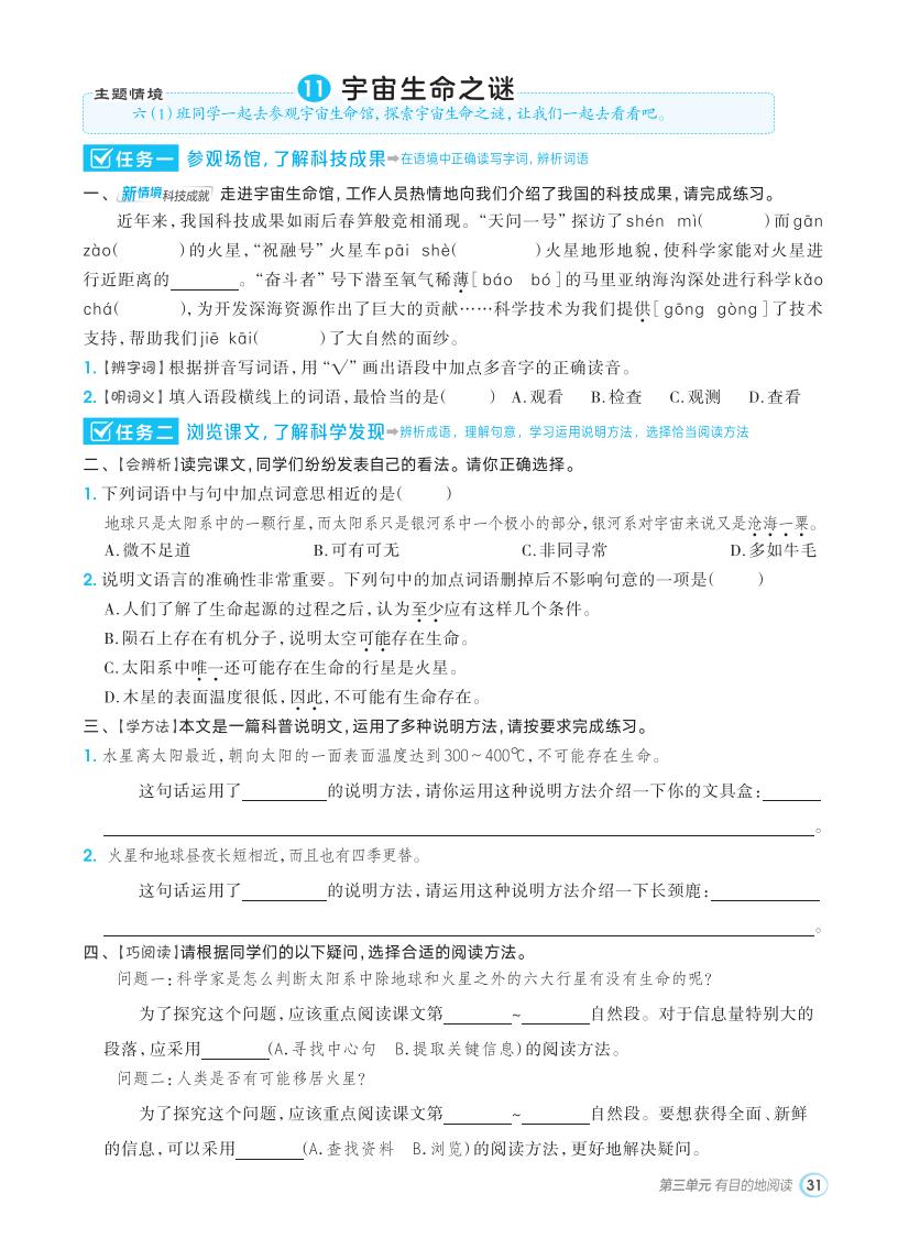六年级语文上册 · 第三单元同步练习册-2025秋