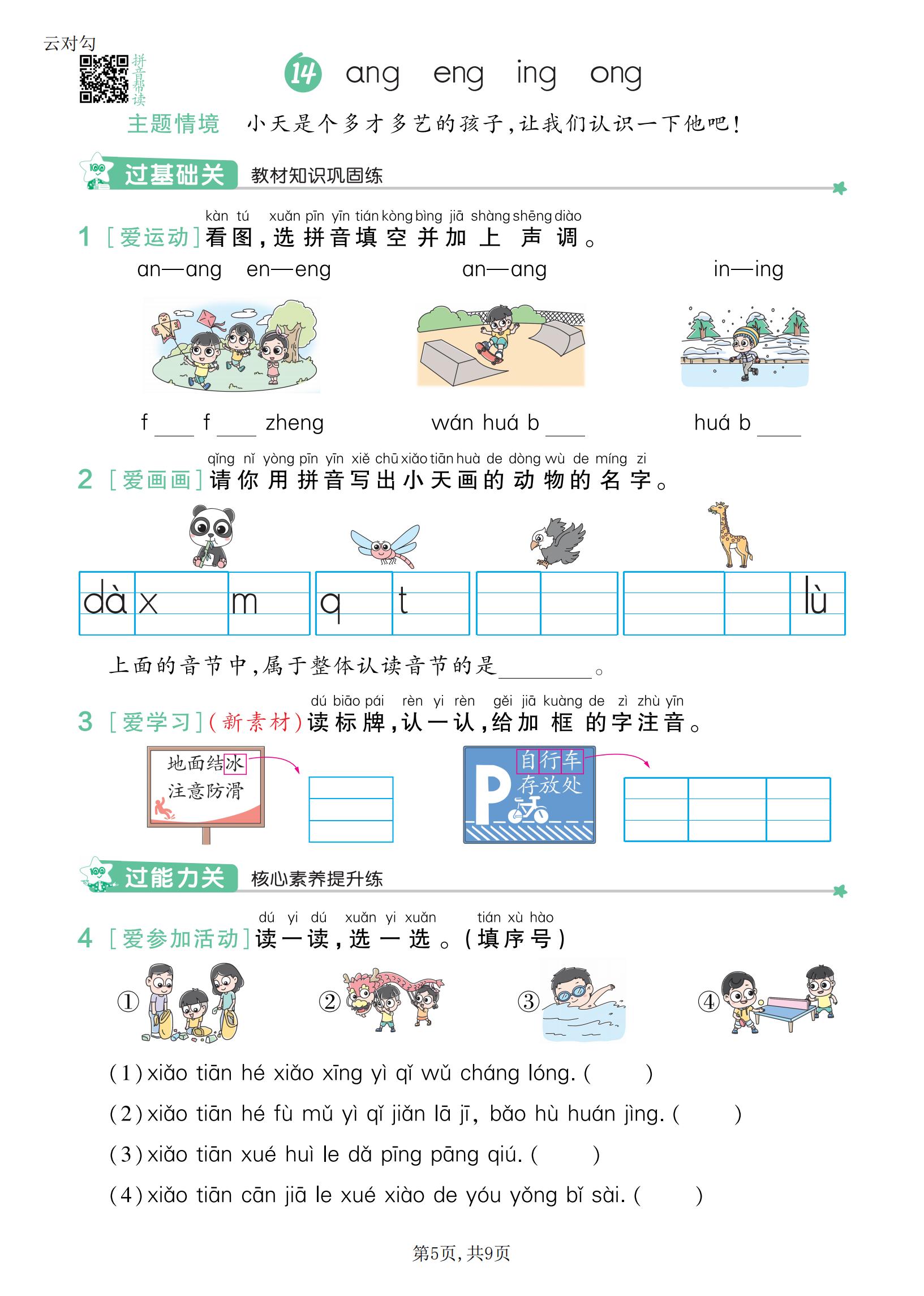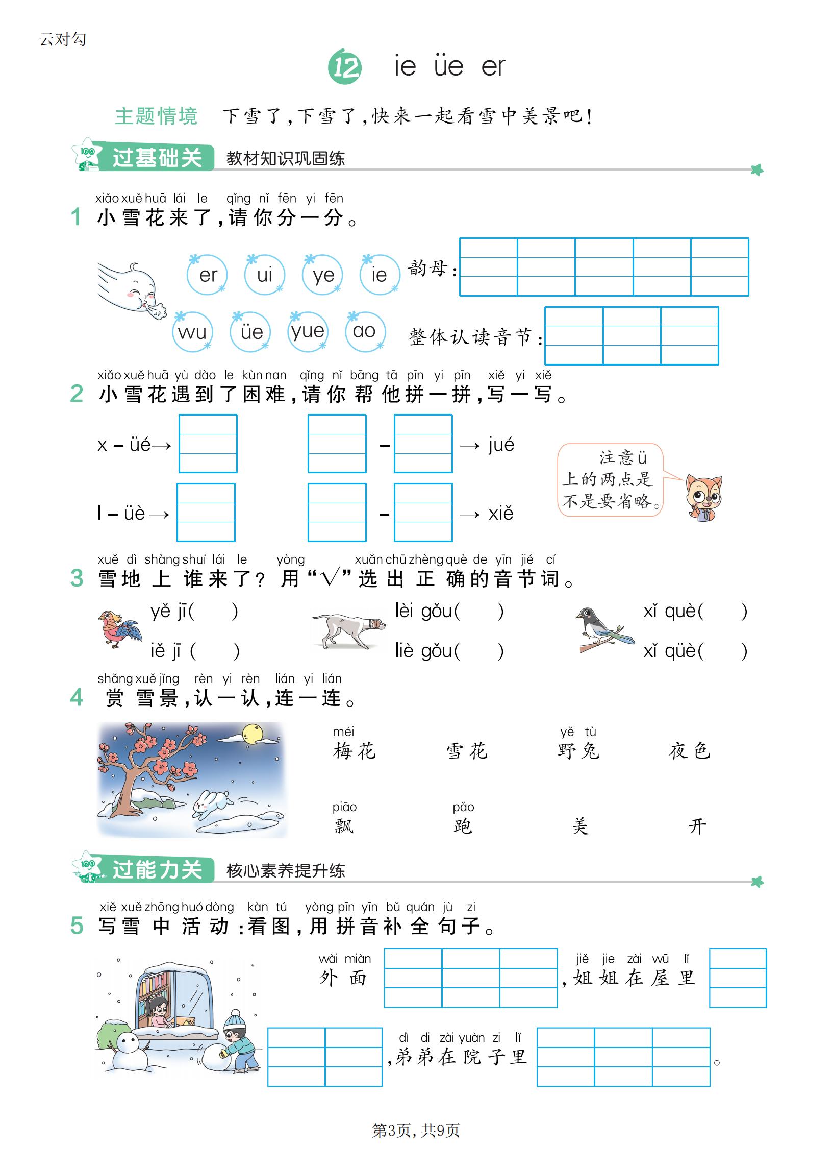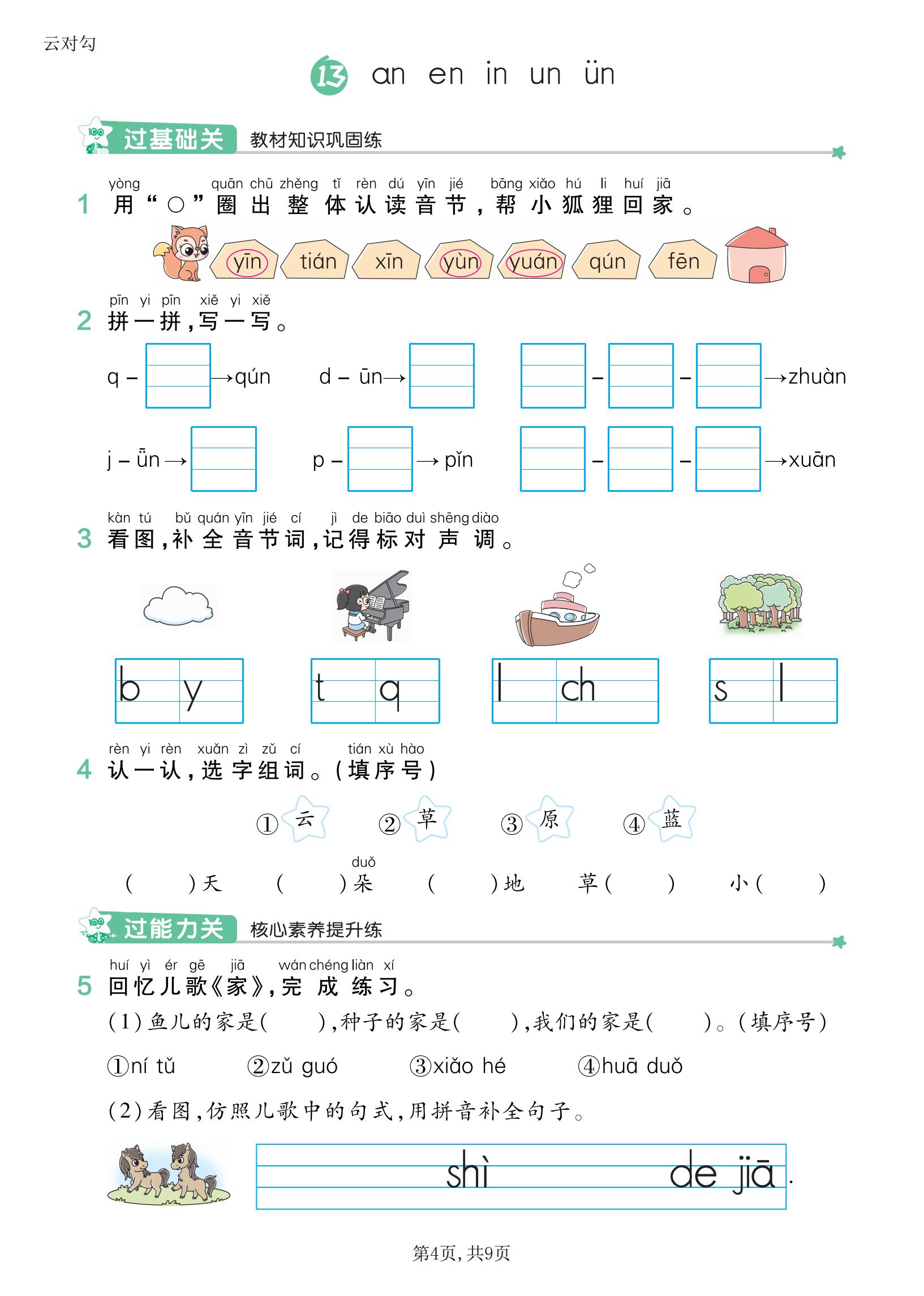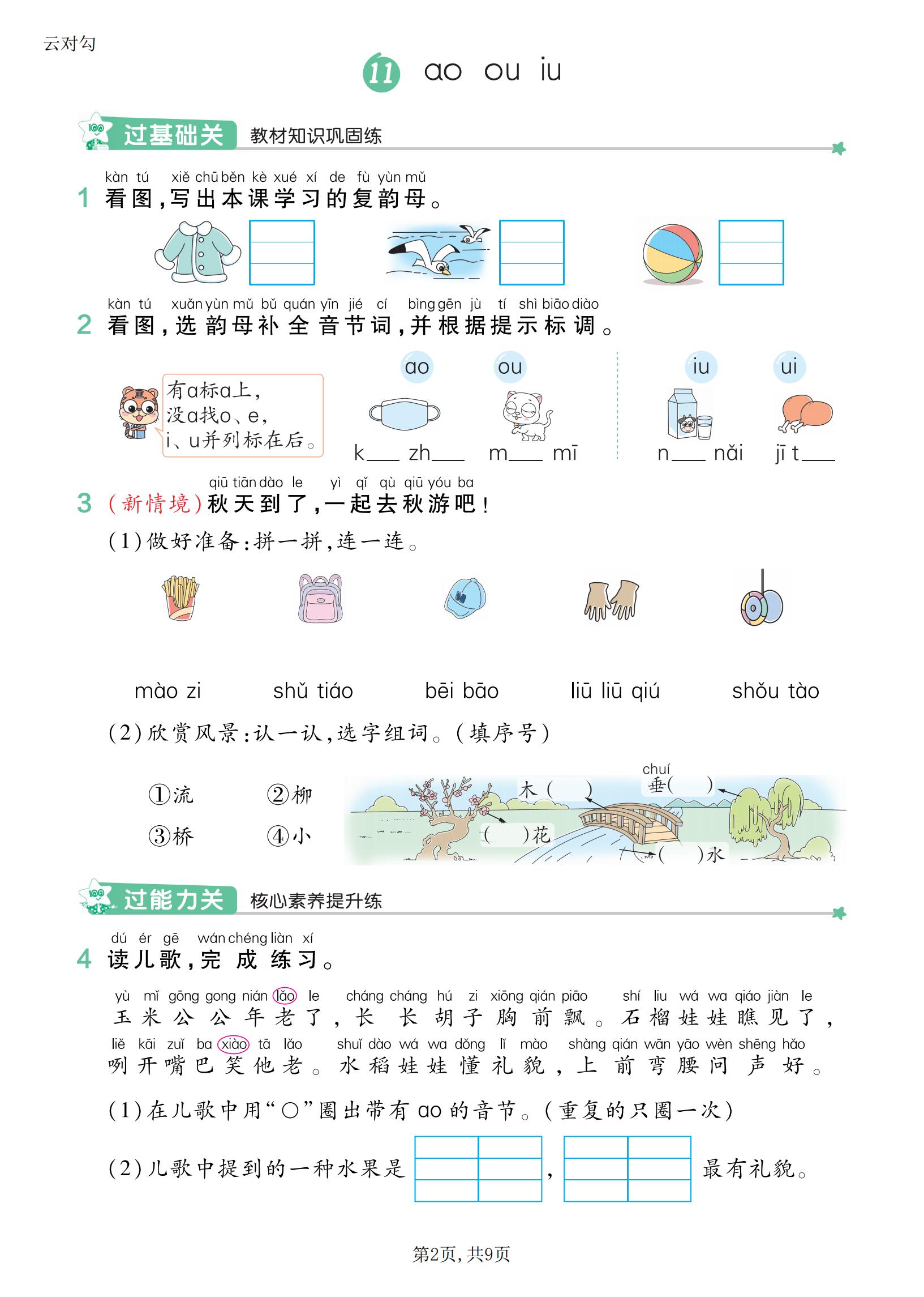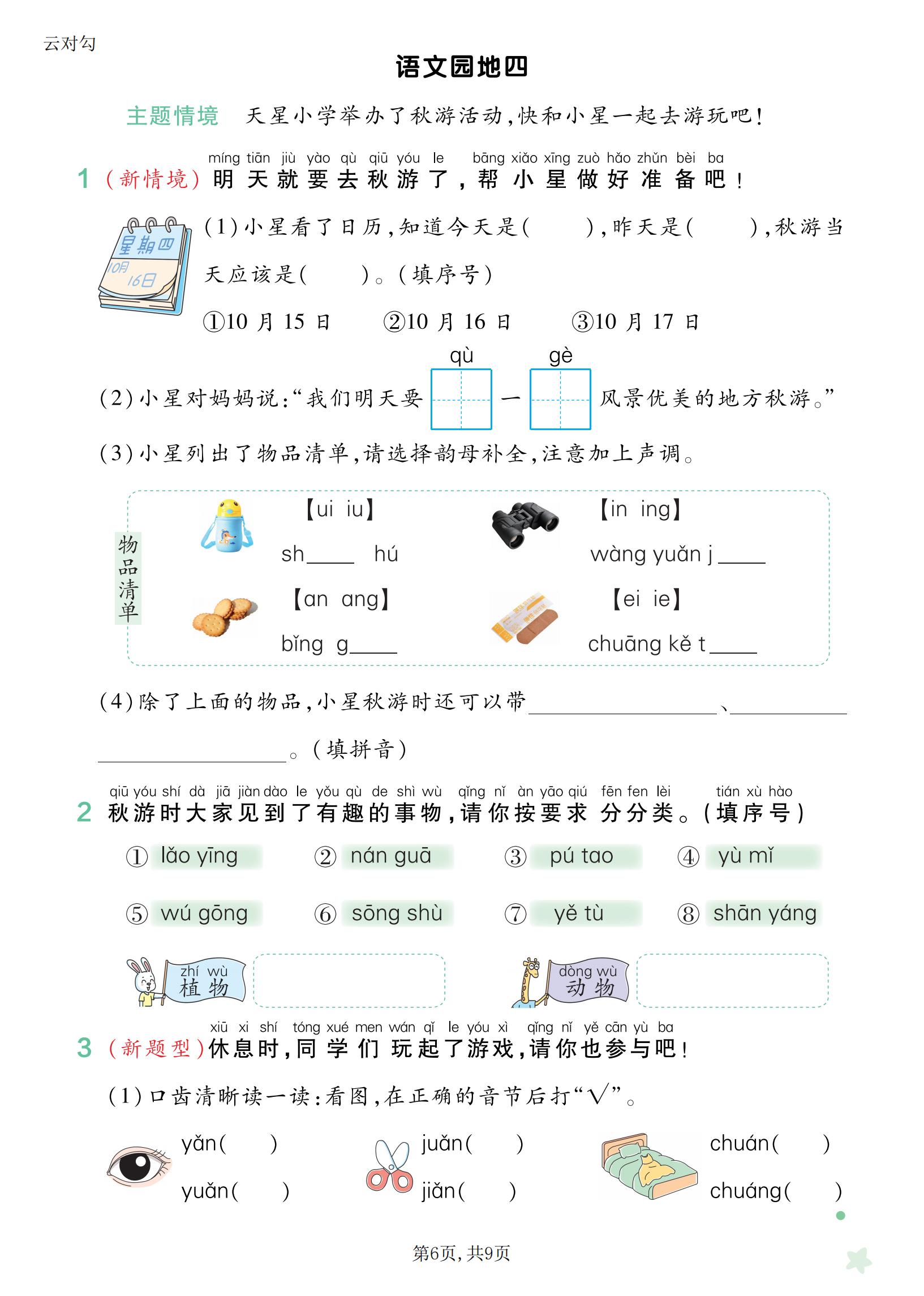 2025秋 · 一年级语文上册-一课一练-第四单元部分