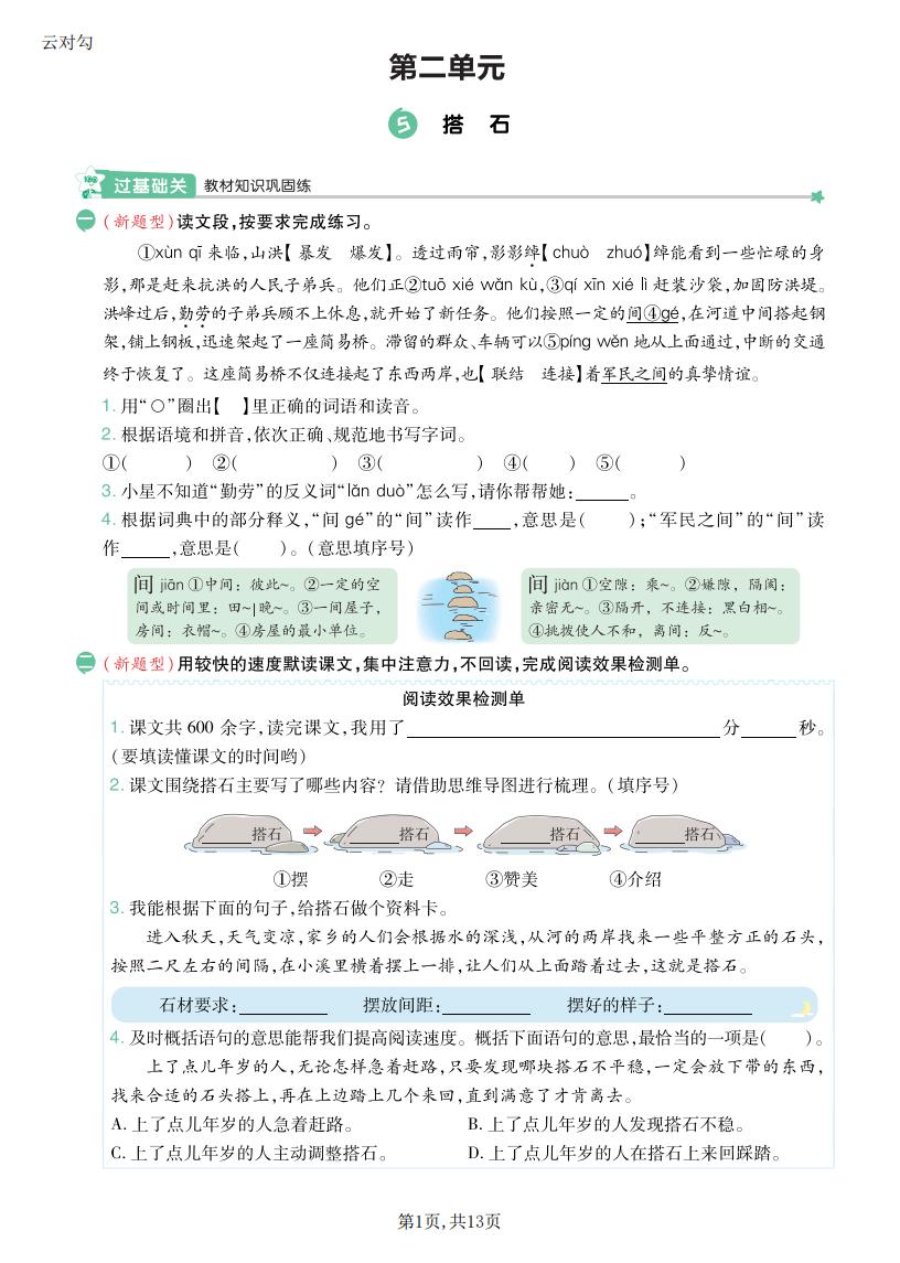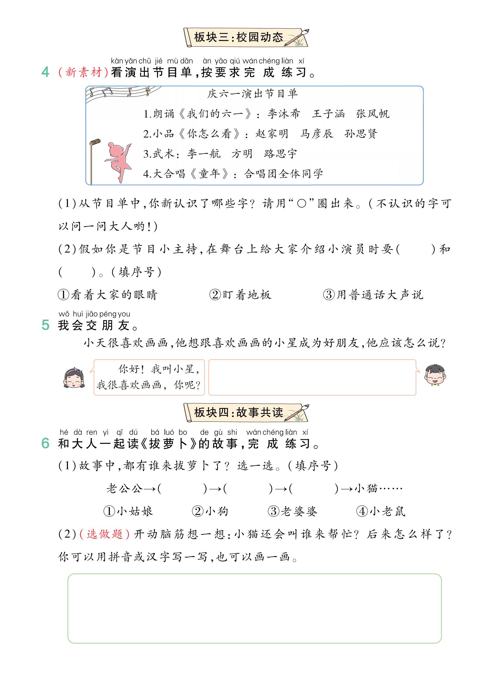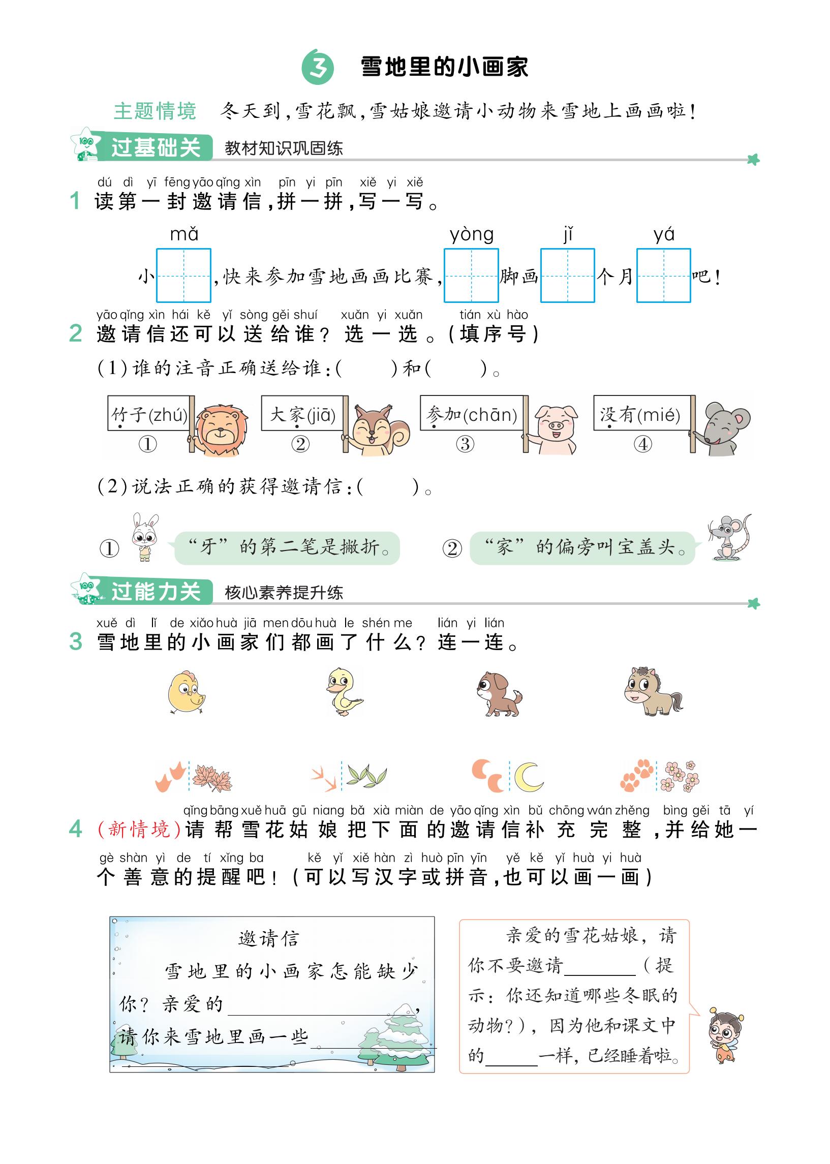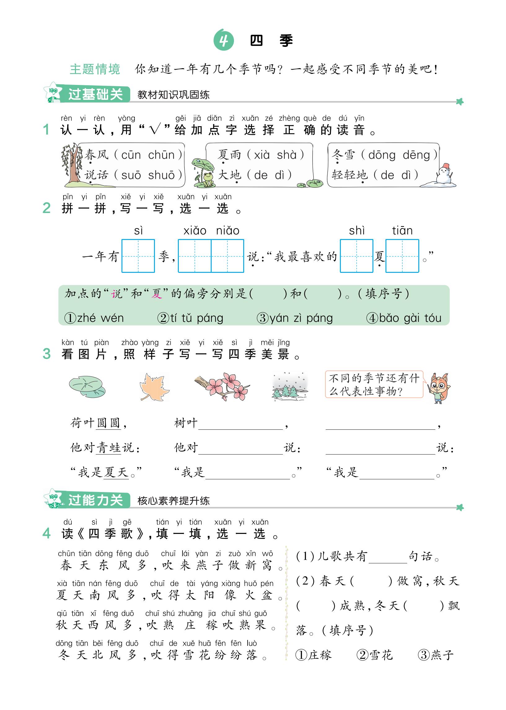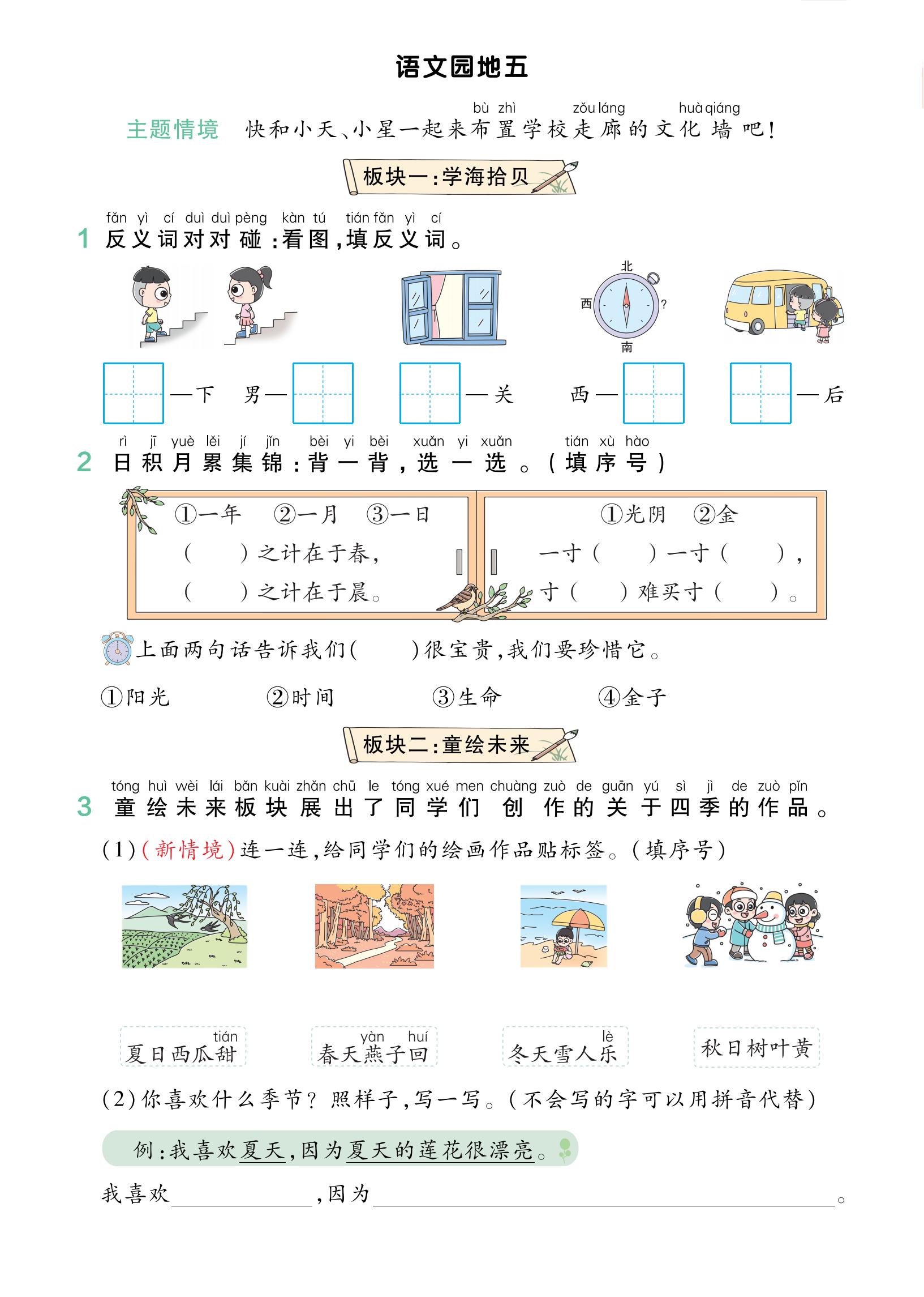 2025秋 · 一年级语文上册-一课一练-第五单元部分