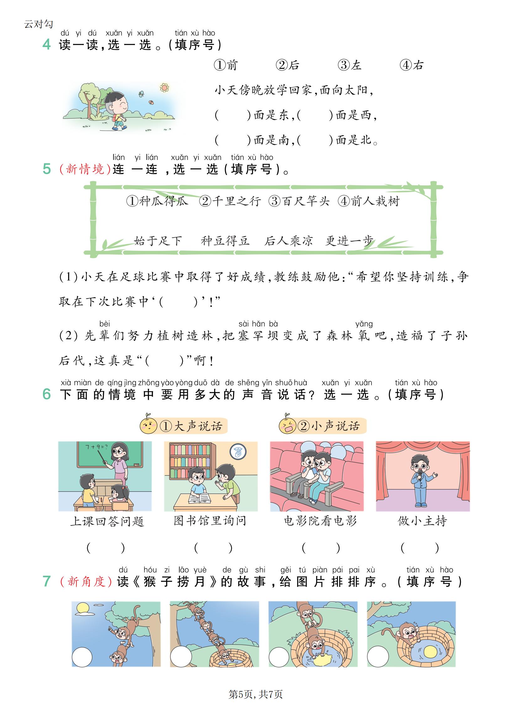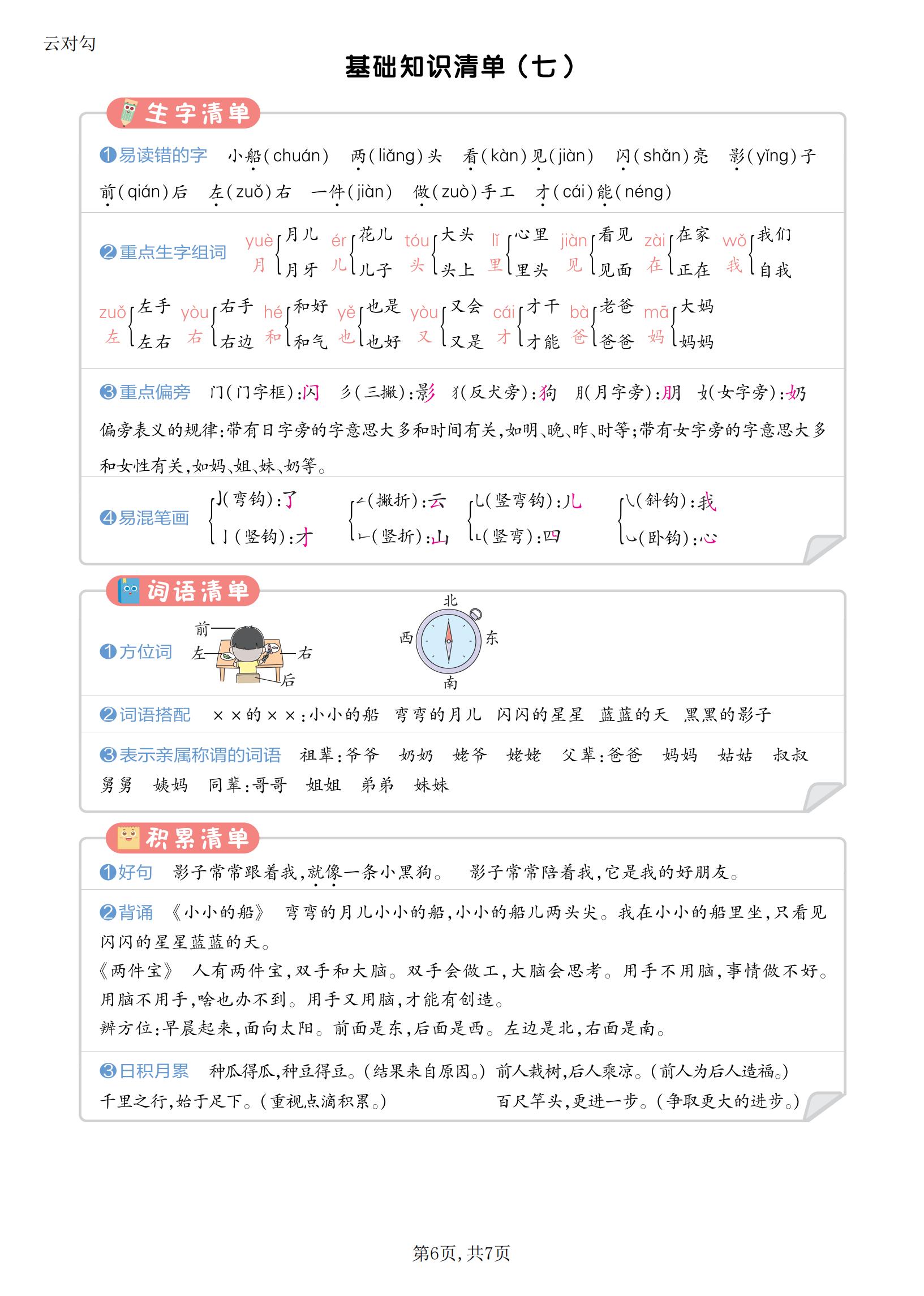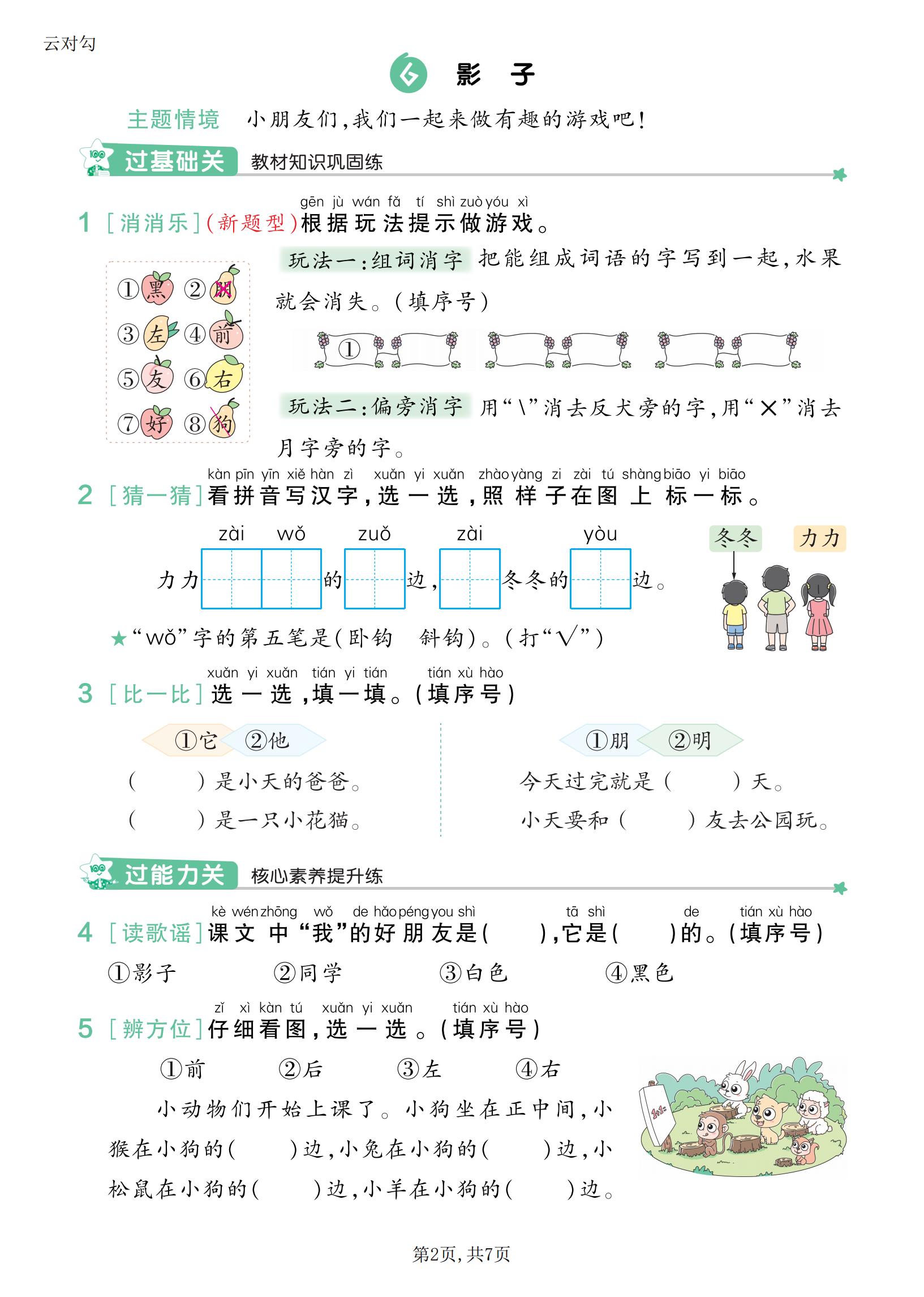 2025秋 · 一年级语文上册-一课一练-第七单元部分