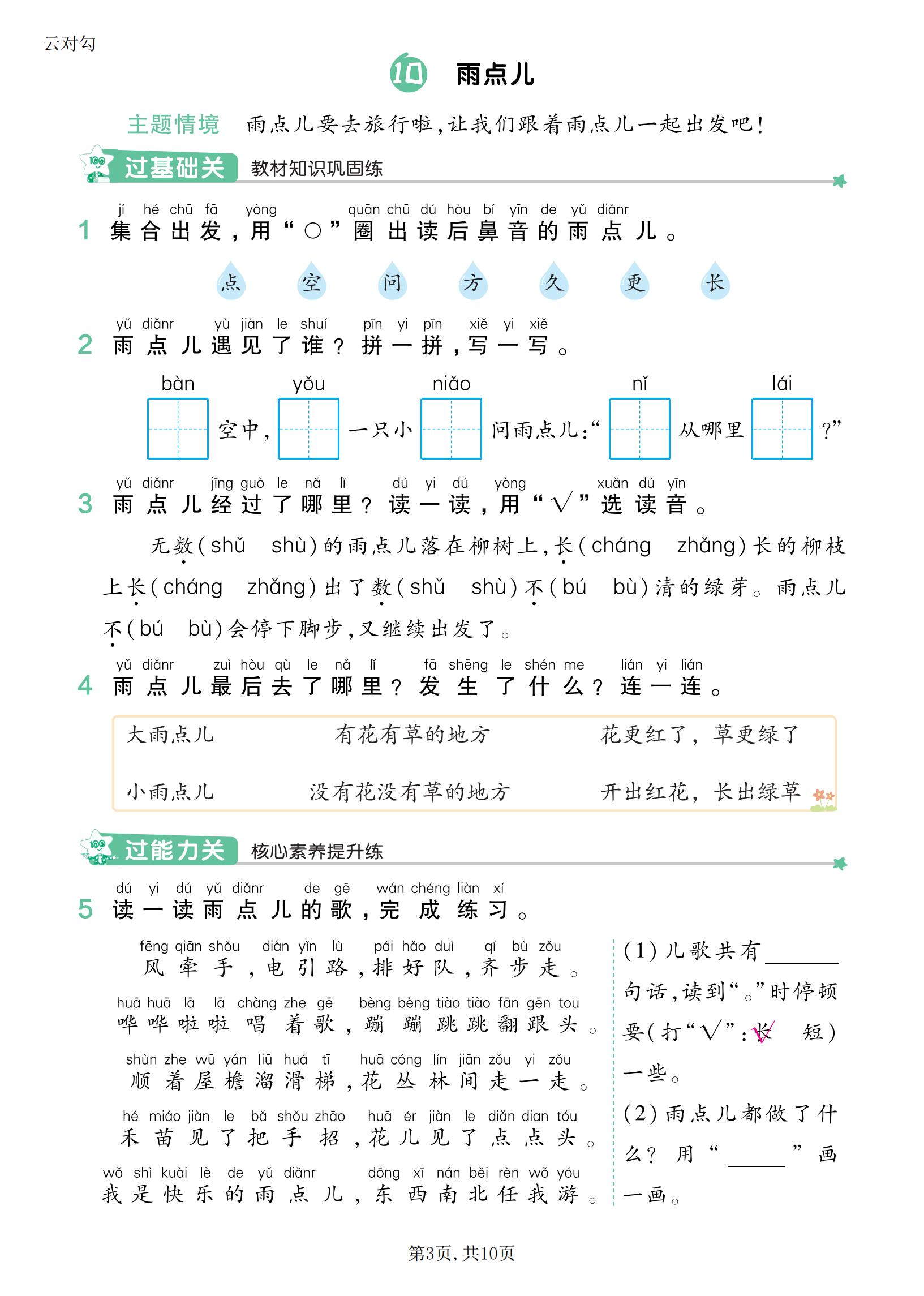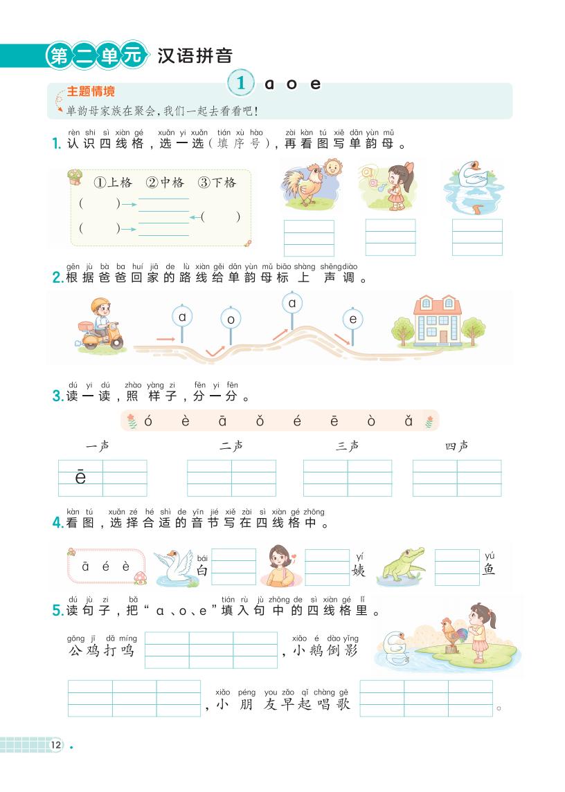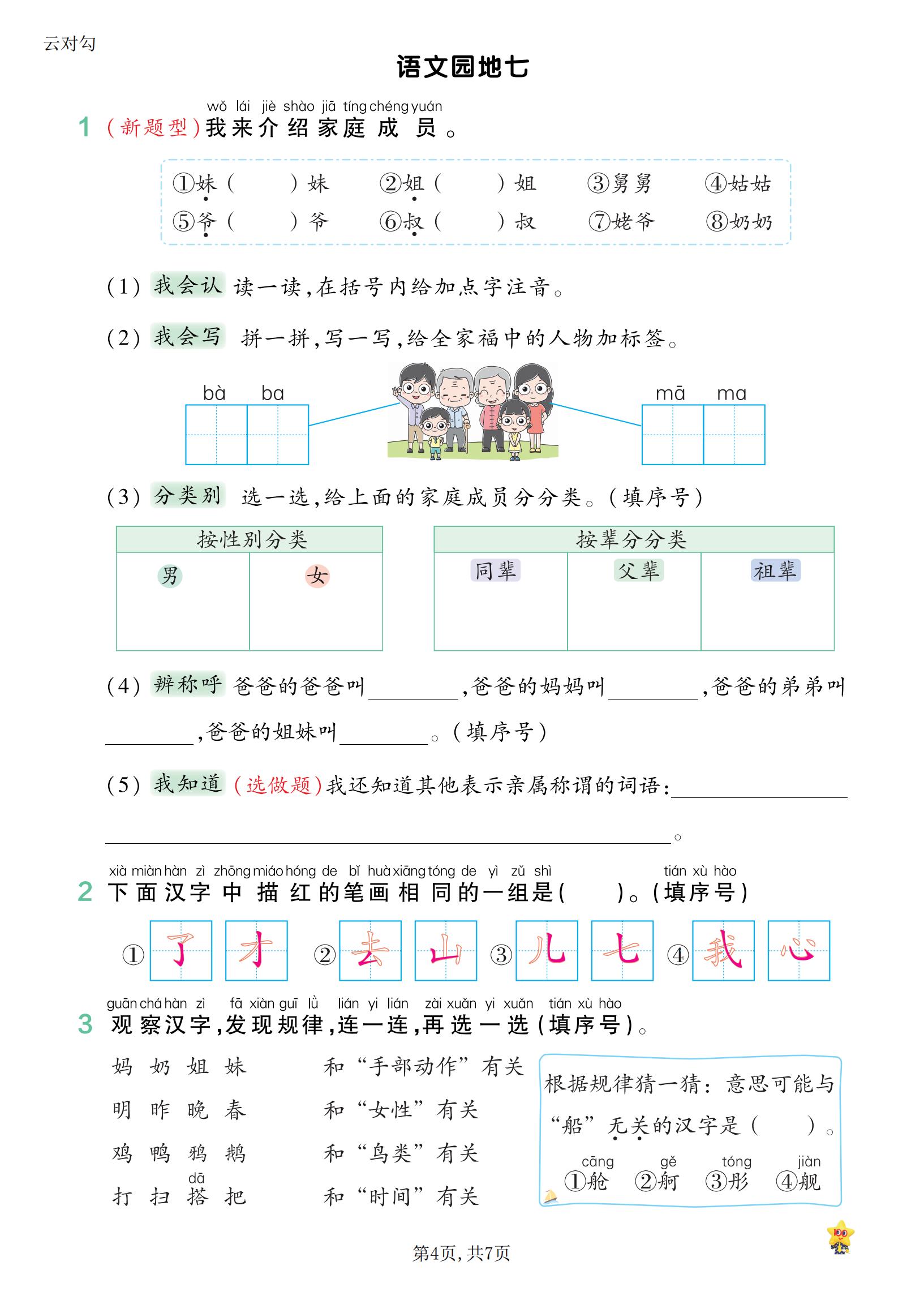 2025秋 · 一年级语文上册-一课一练-第七单元部分