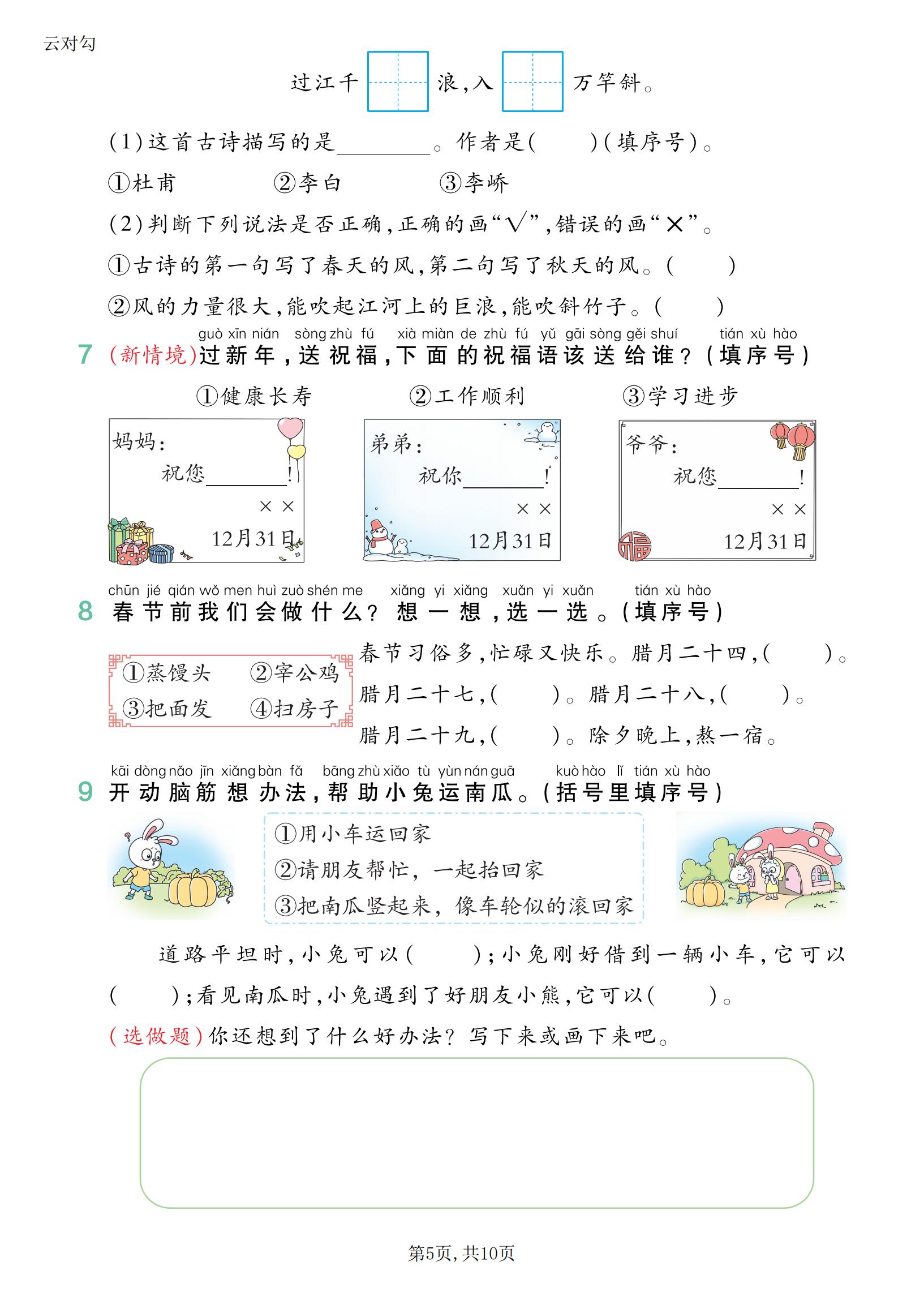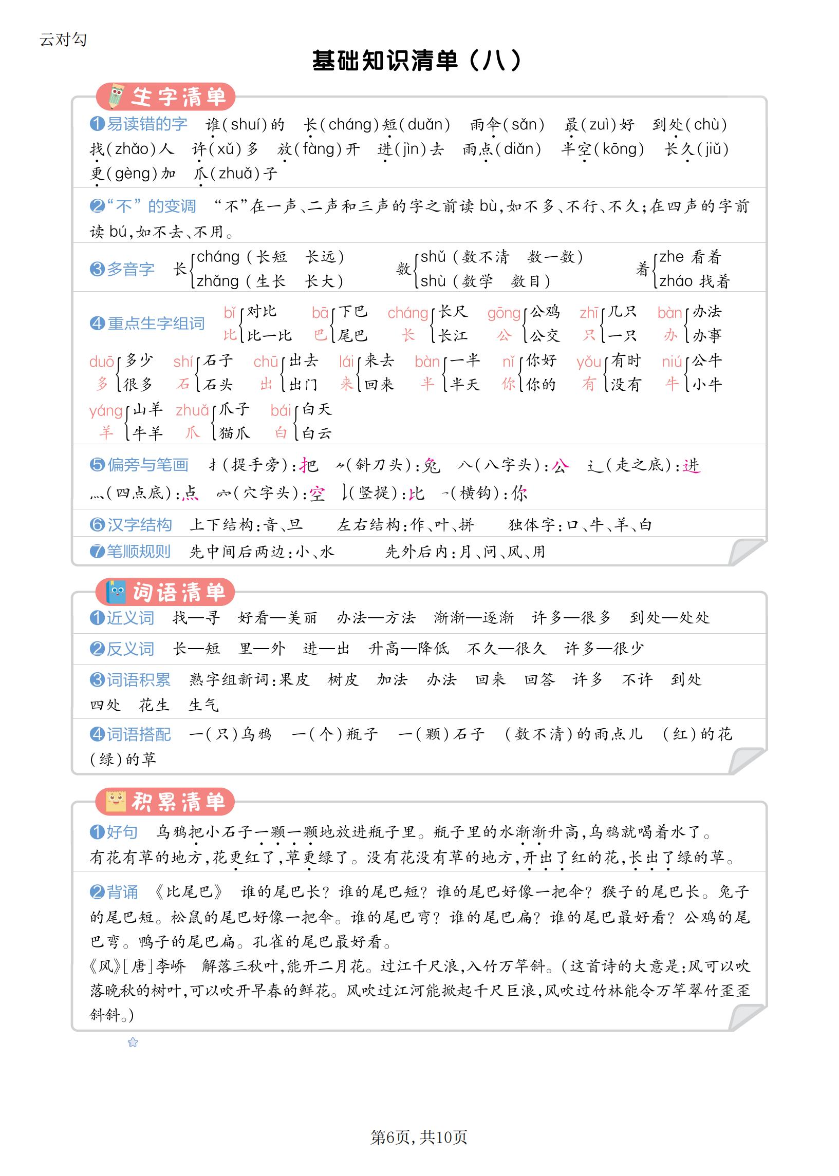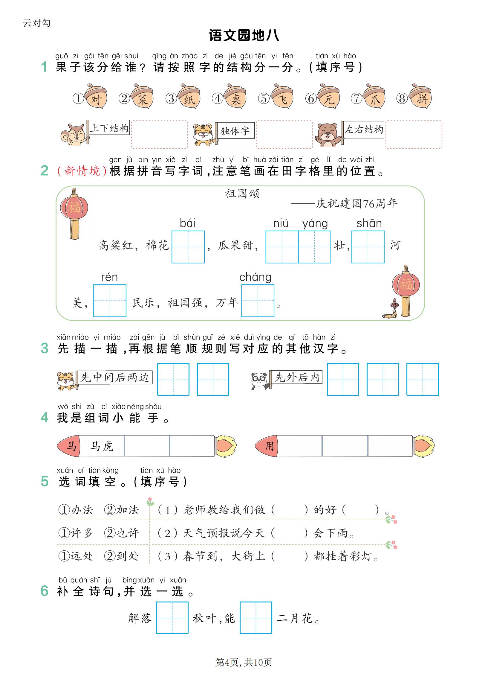 2025秋 · 一年级语文上册-一课一练-第八单元部分