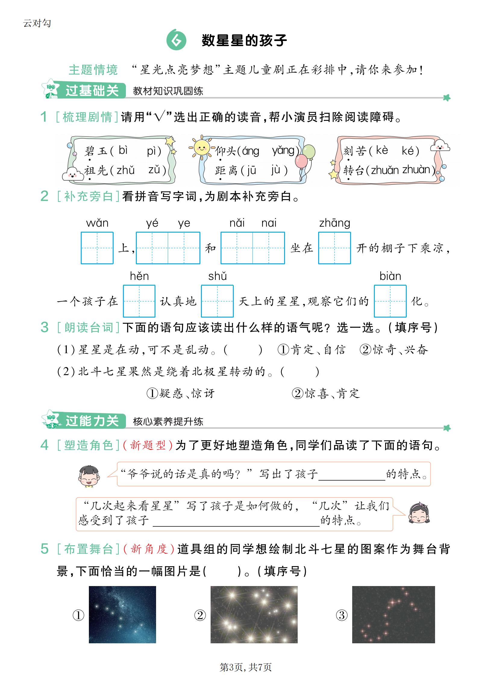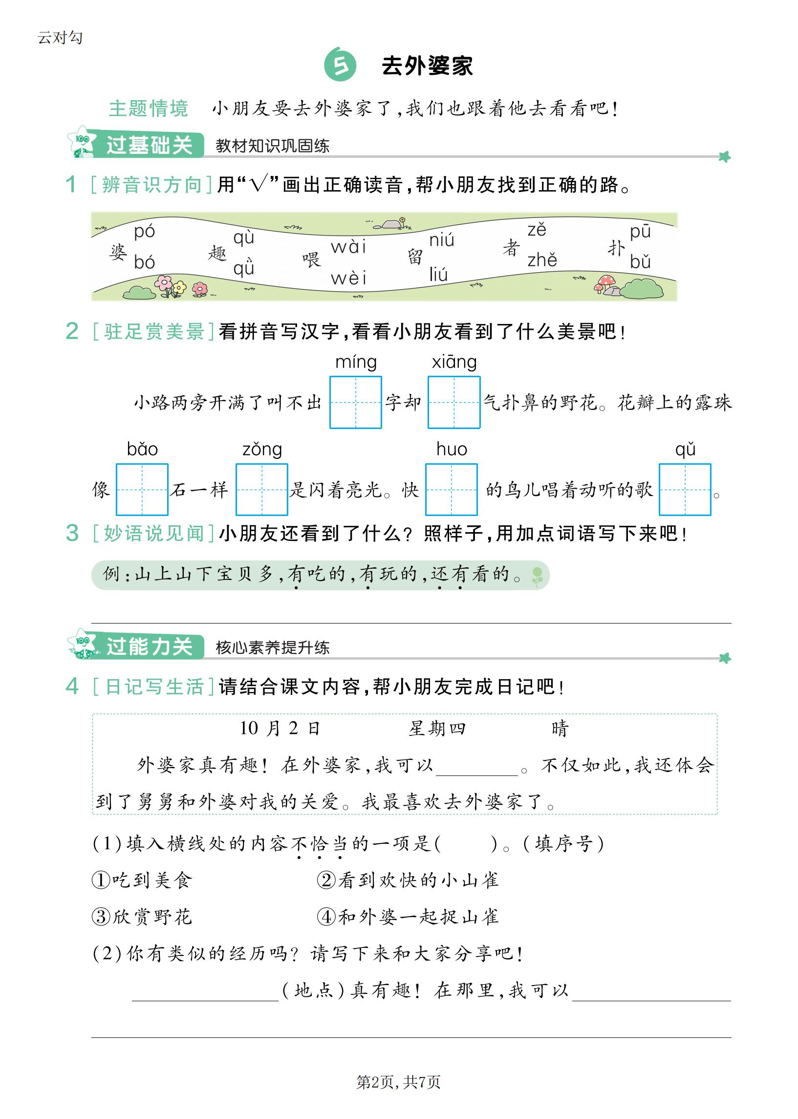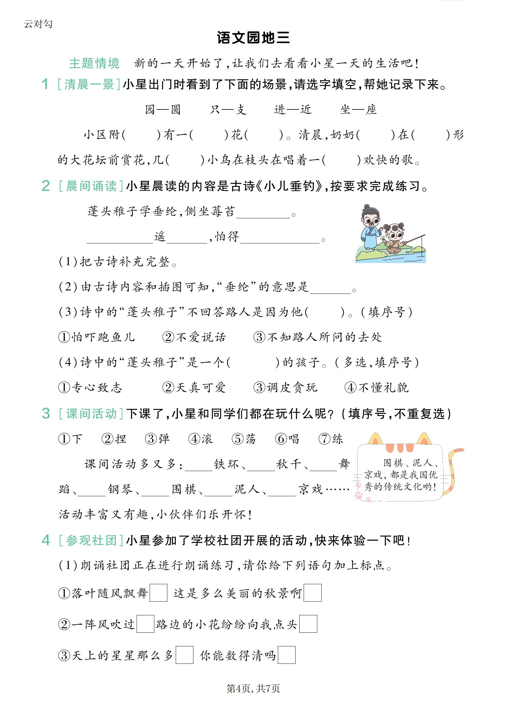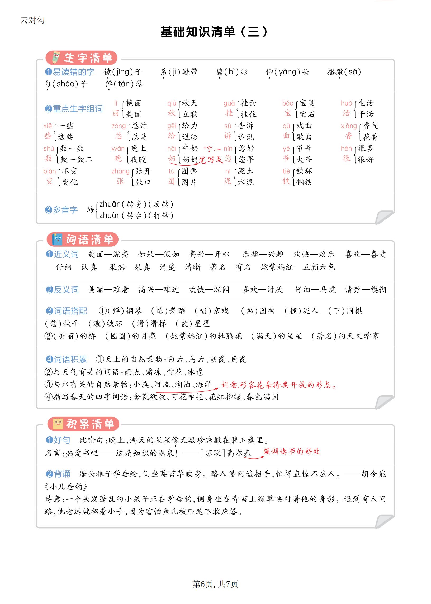 2025秋 · 二年级语文上册-一课一练-第三单元部分