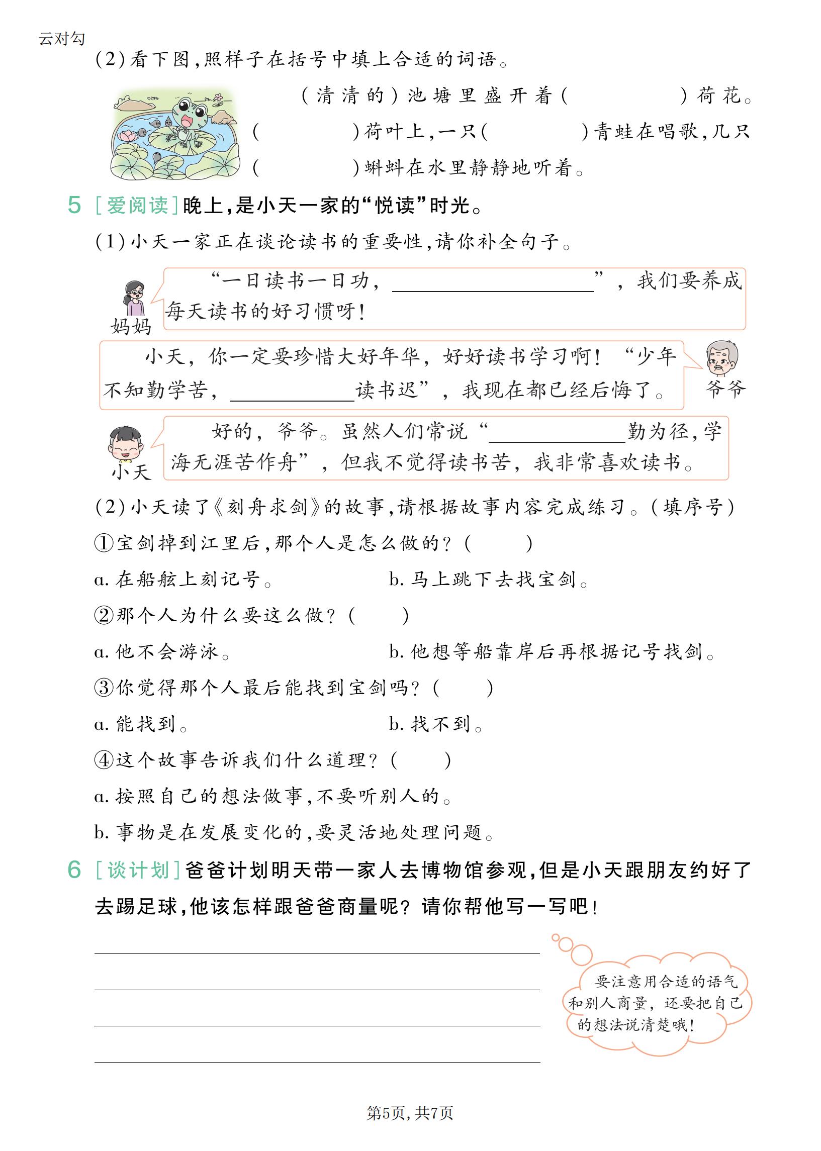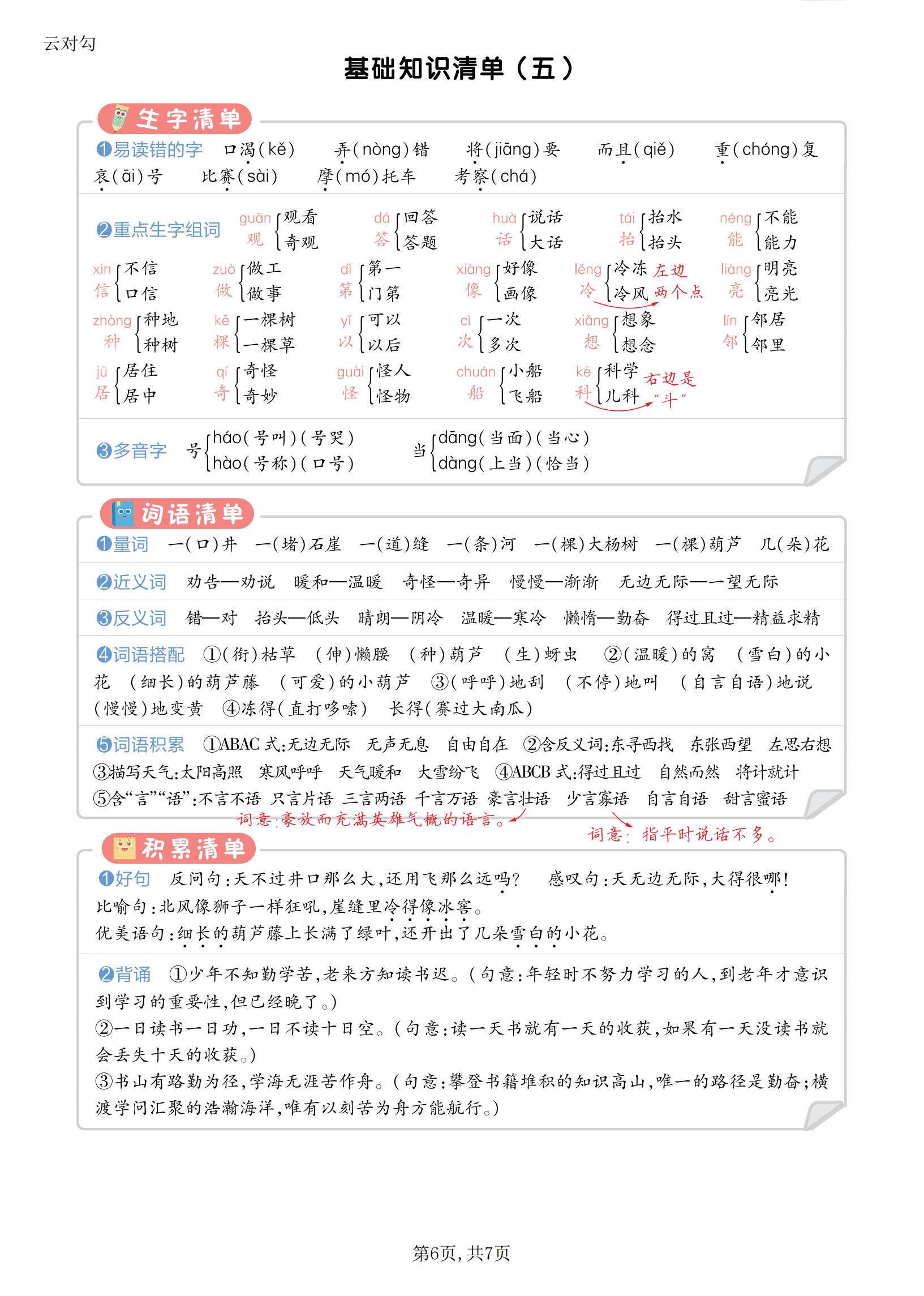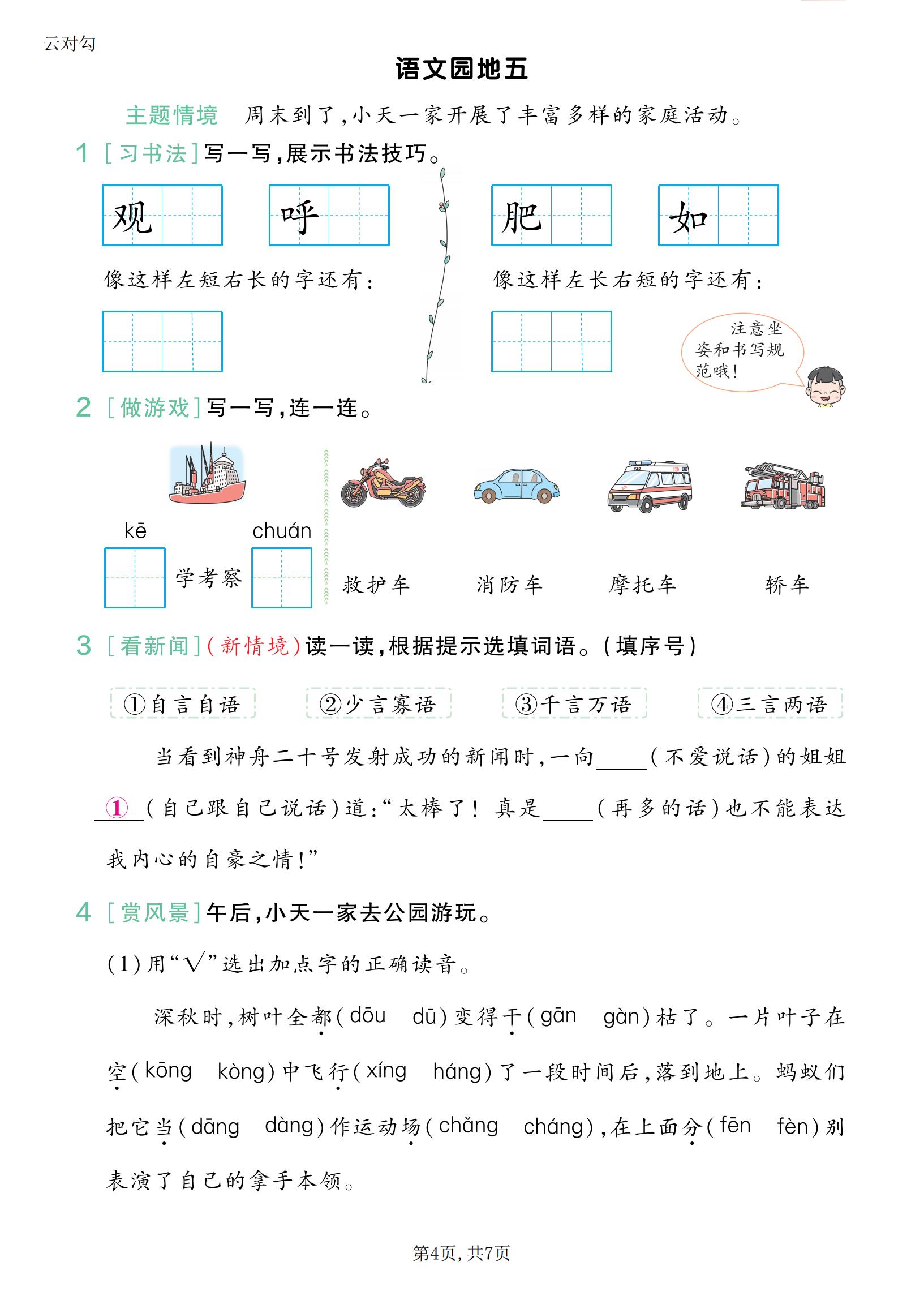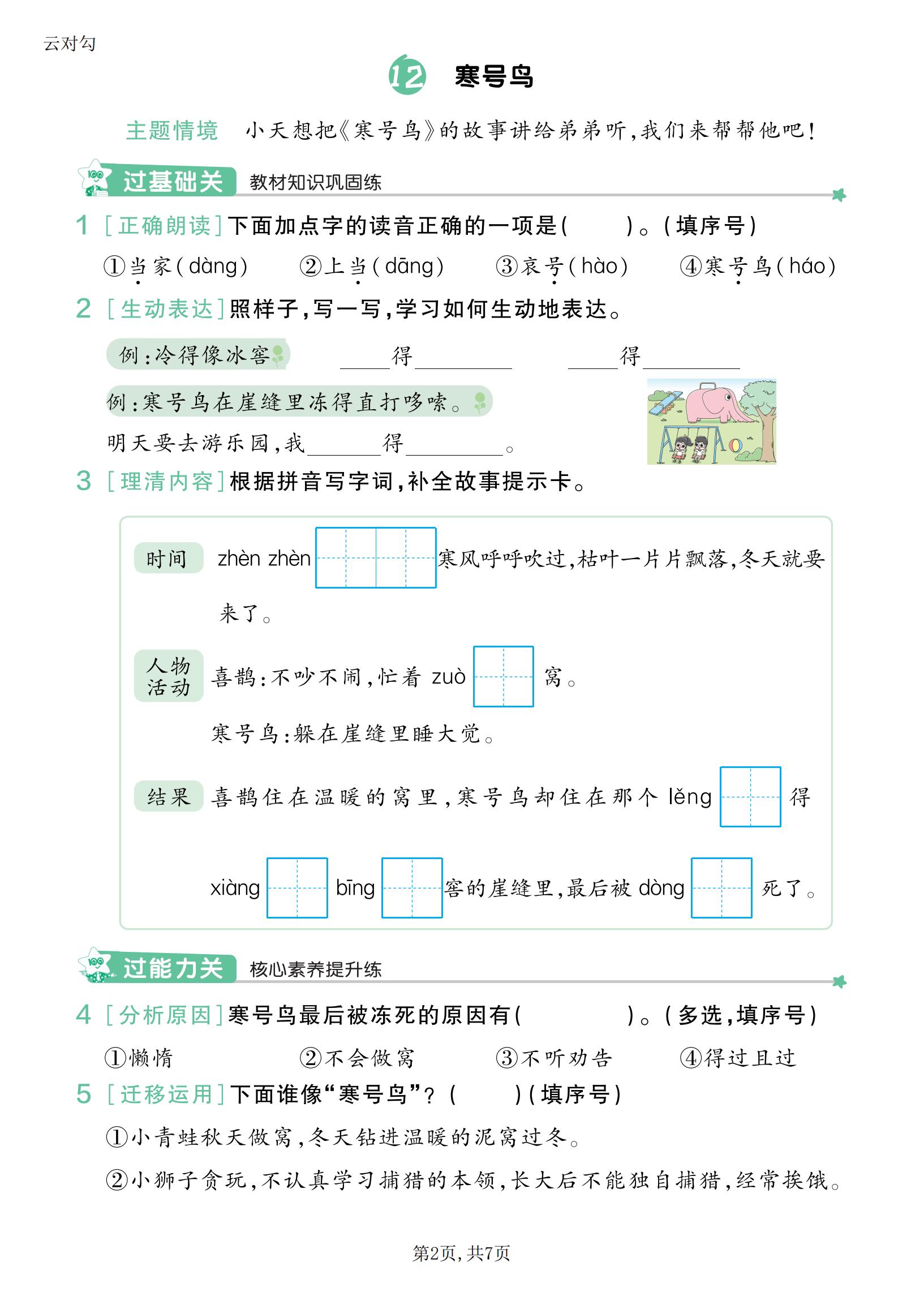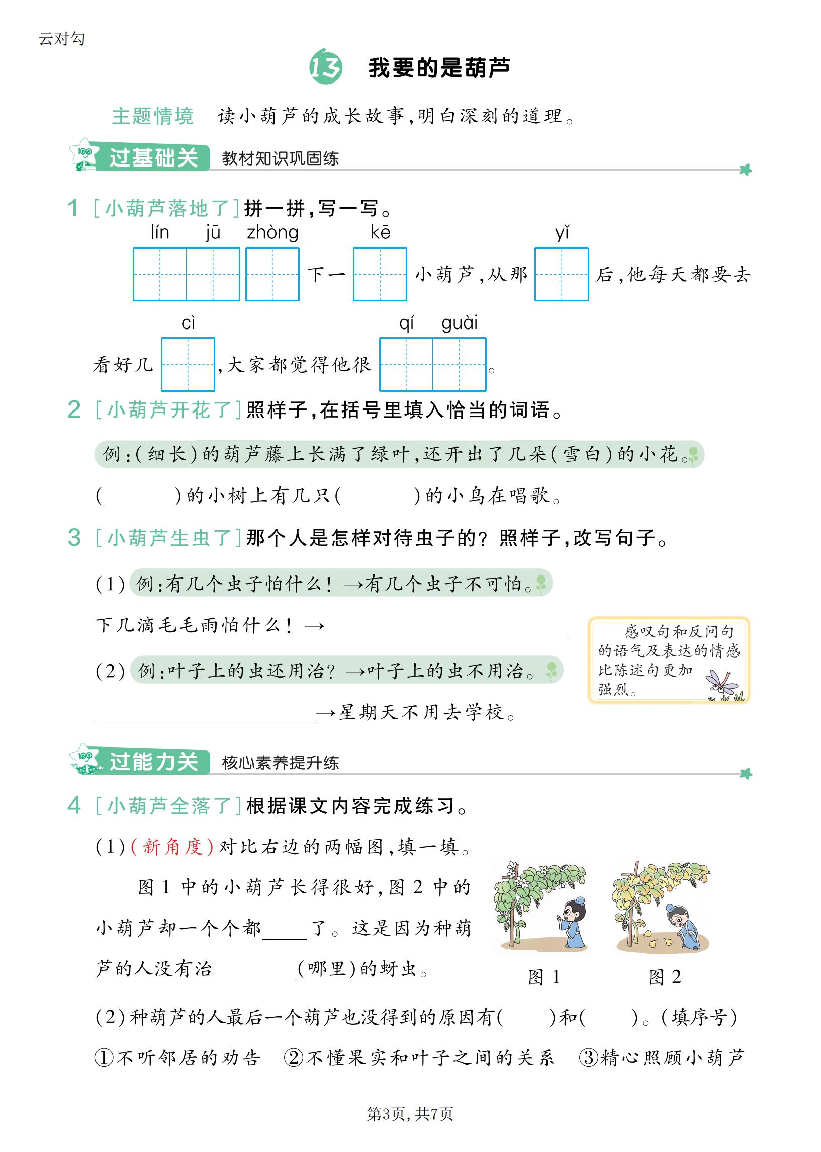 2025秋 · 二年级语文上册-一课一练-第五单元部分