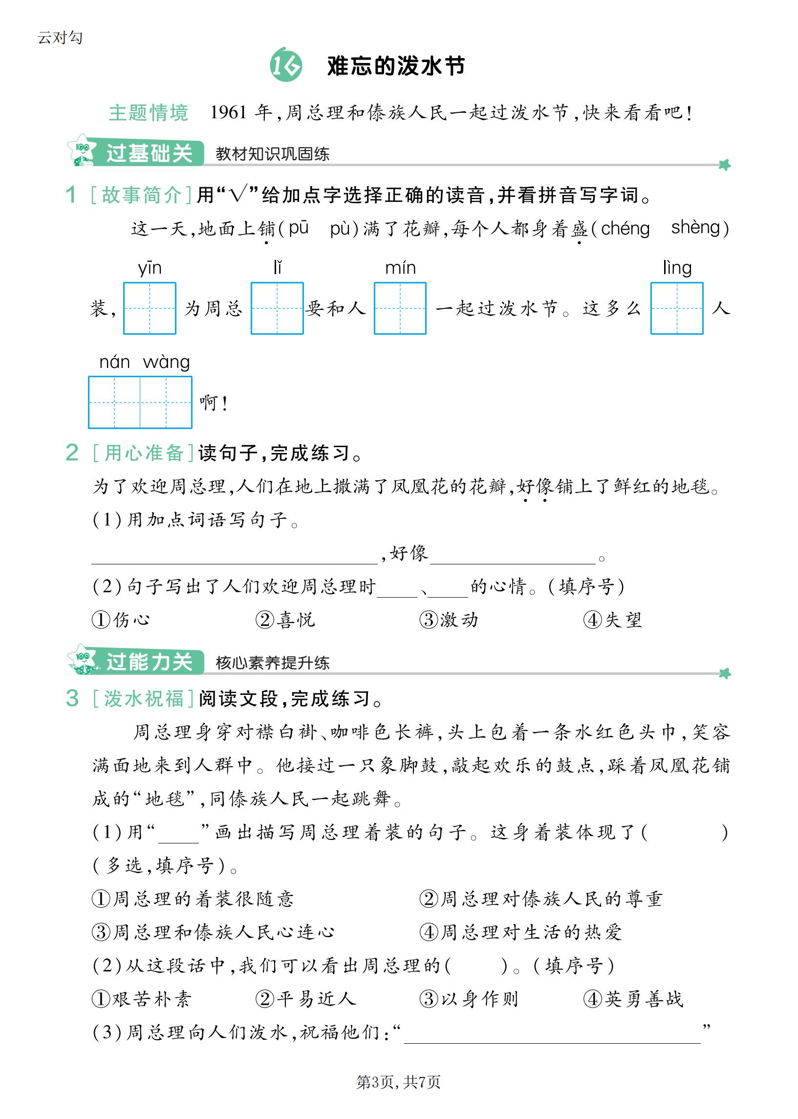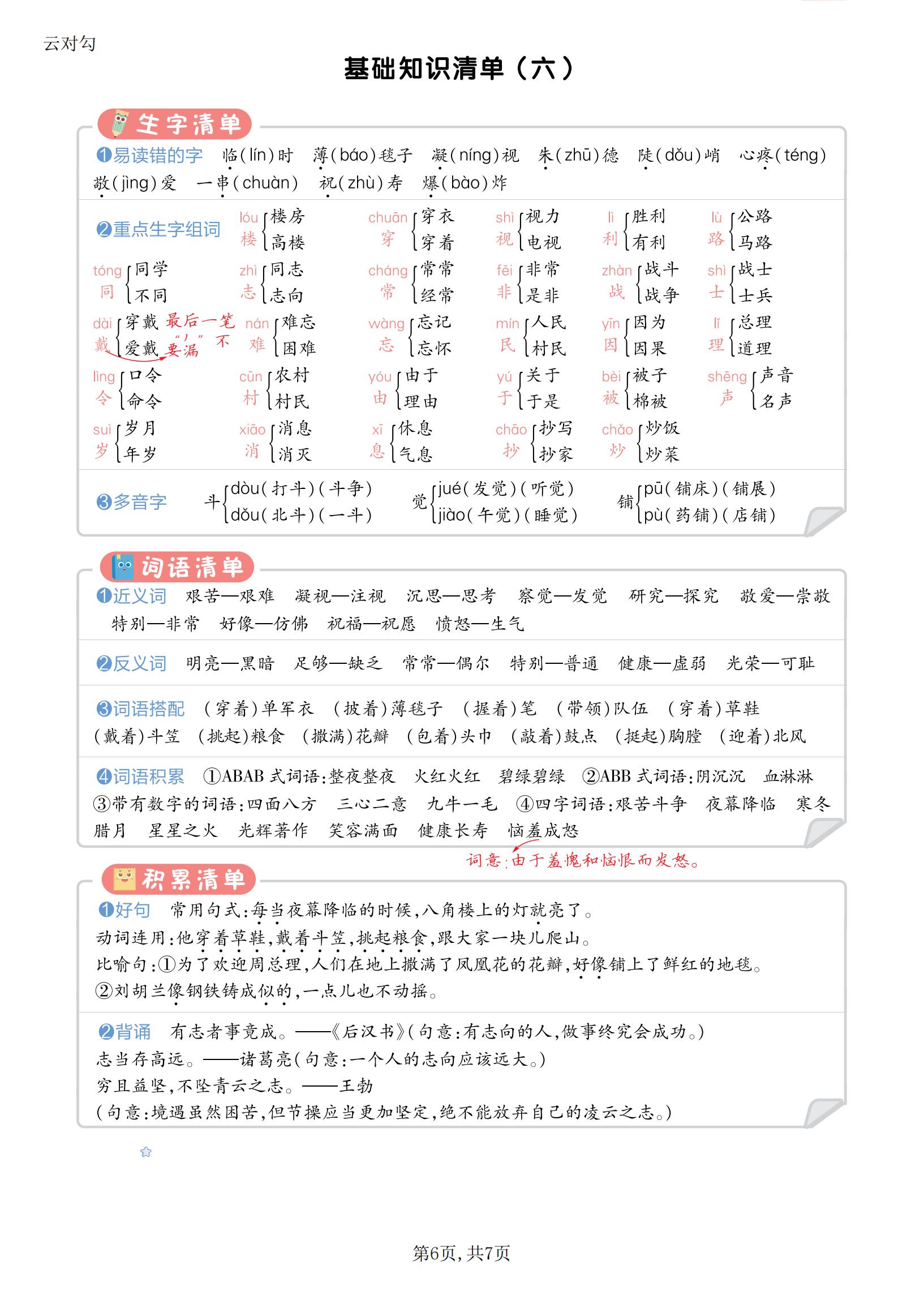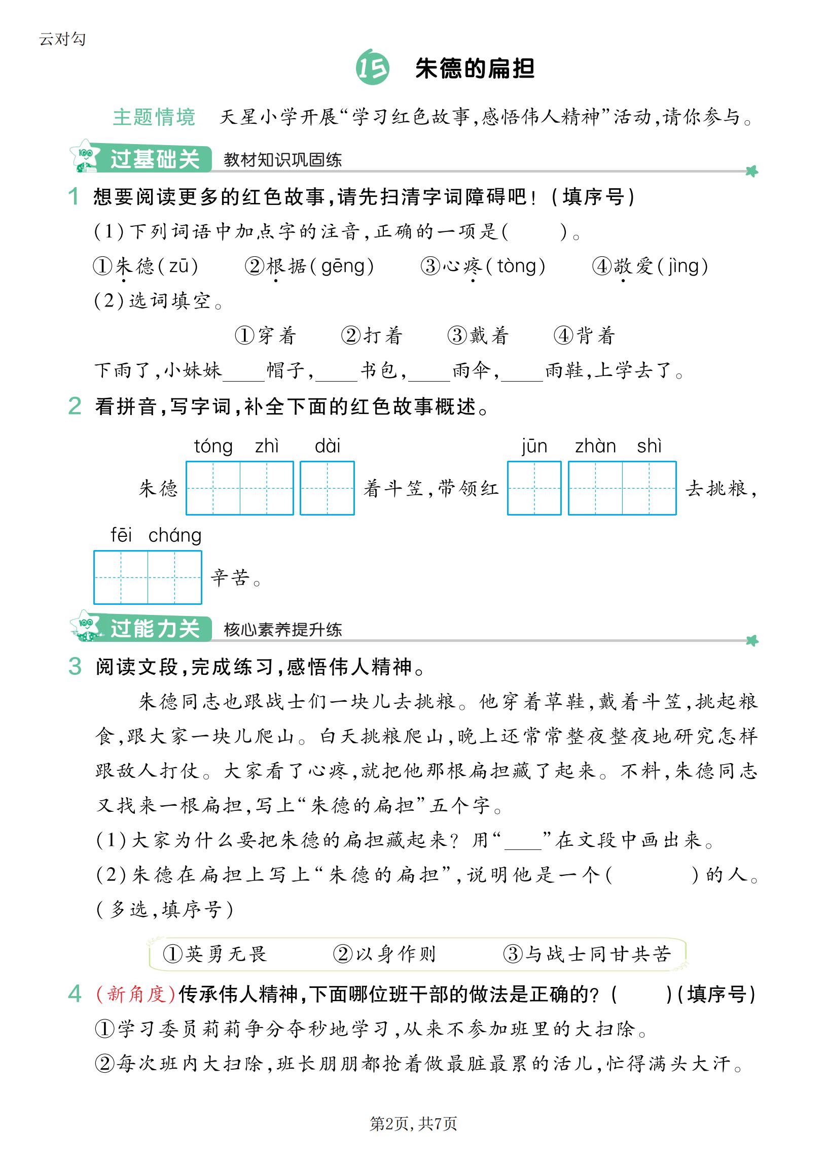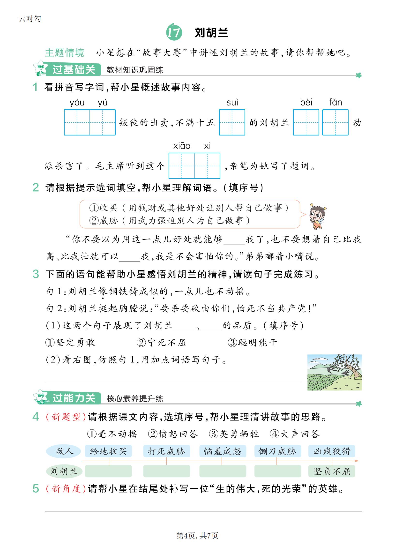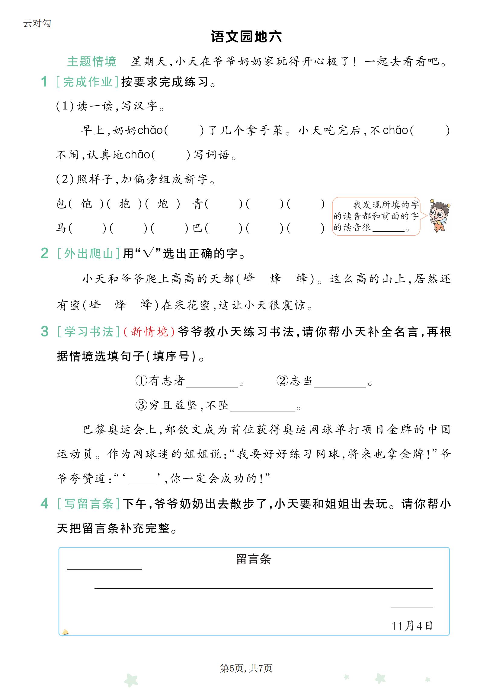 2025秋 · 二年级语文上册-一课一练-第六单元部分