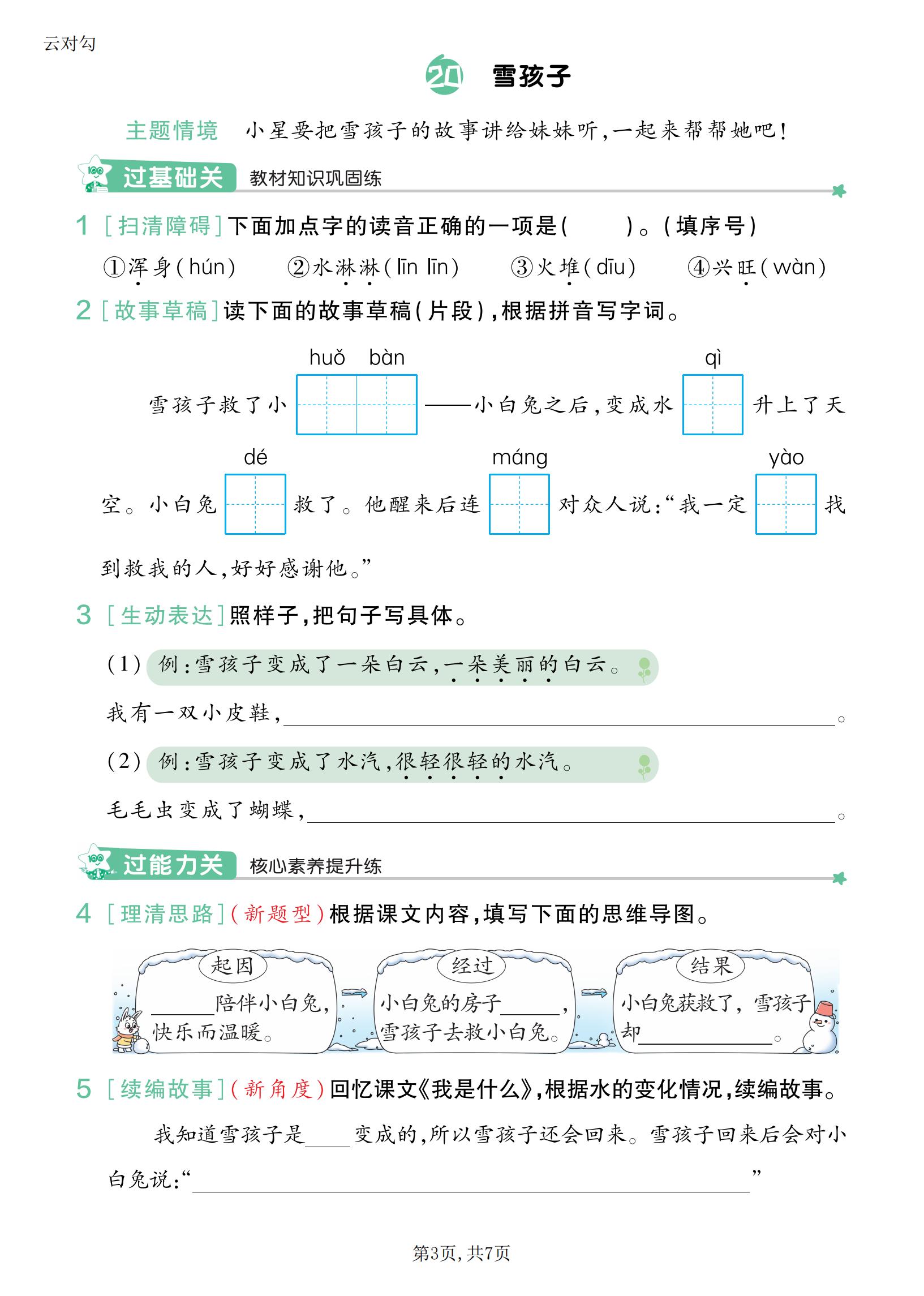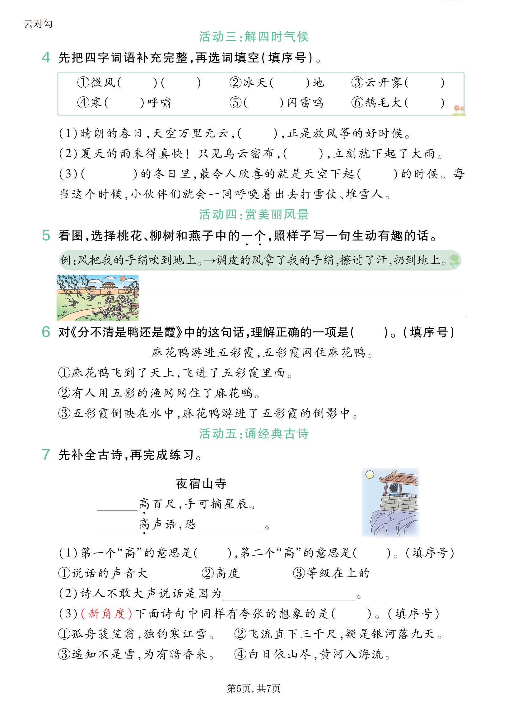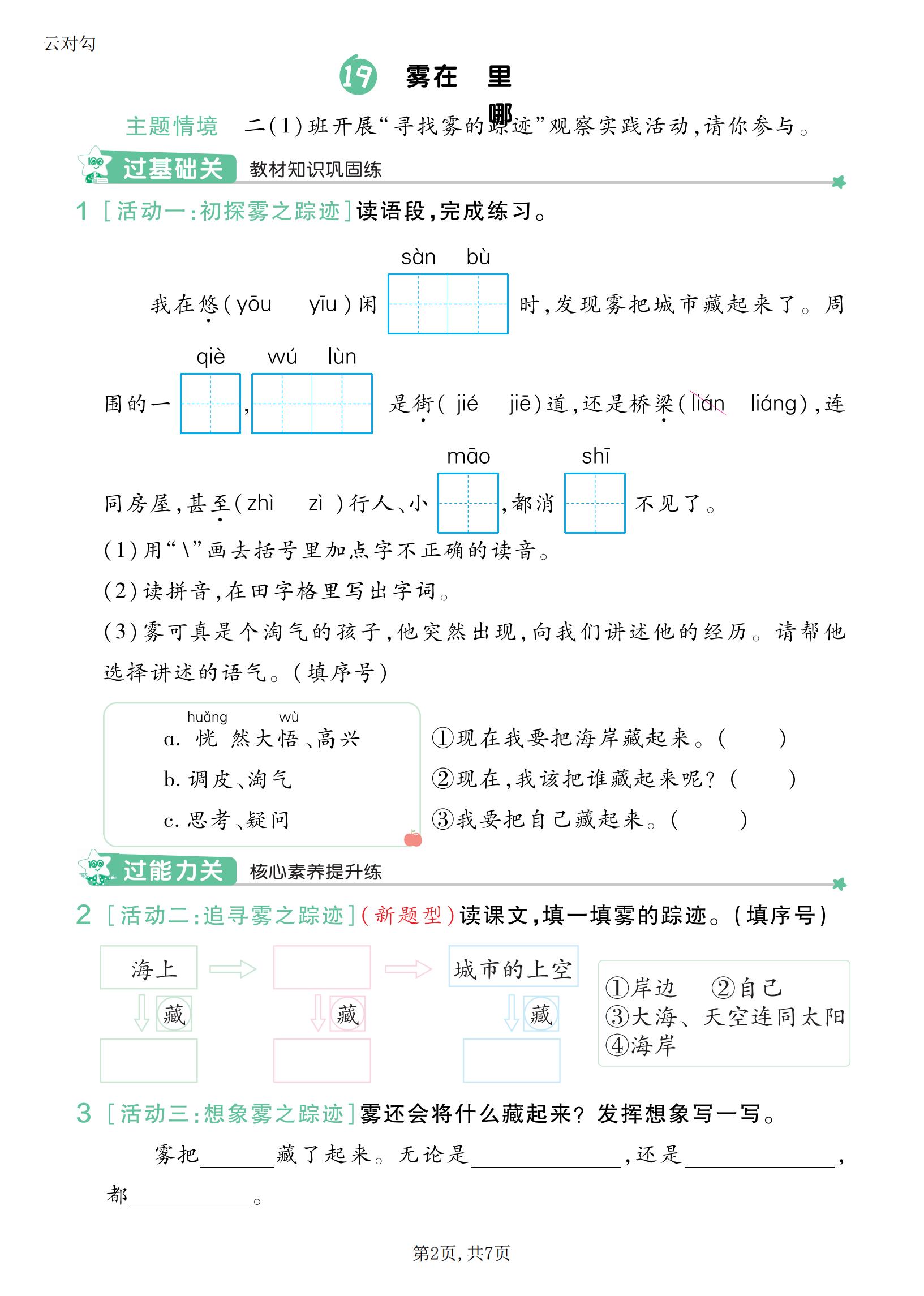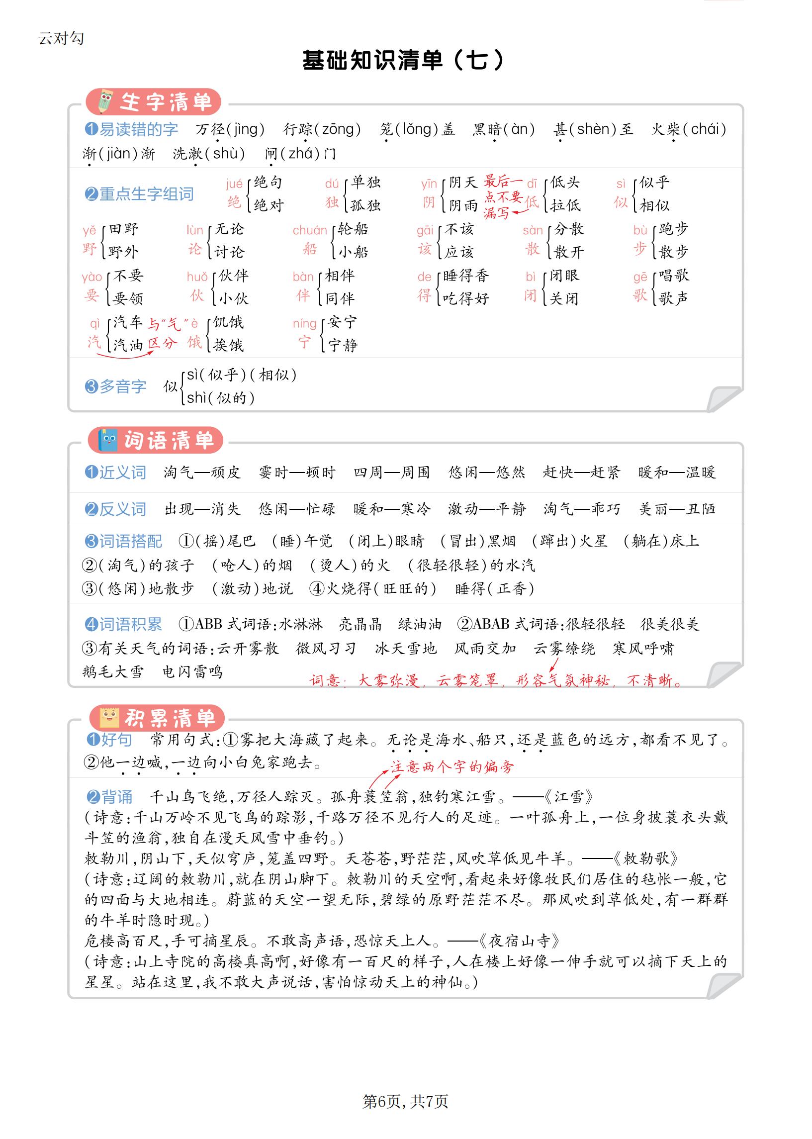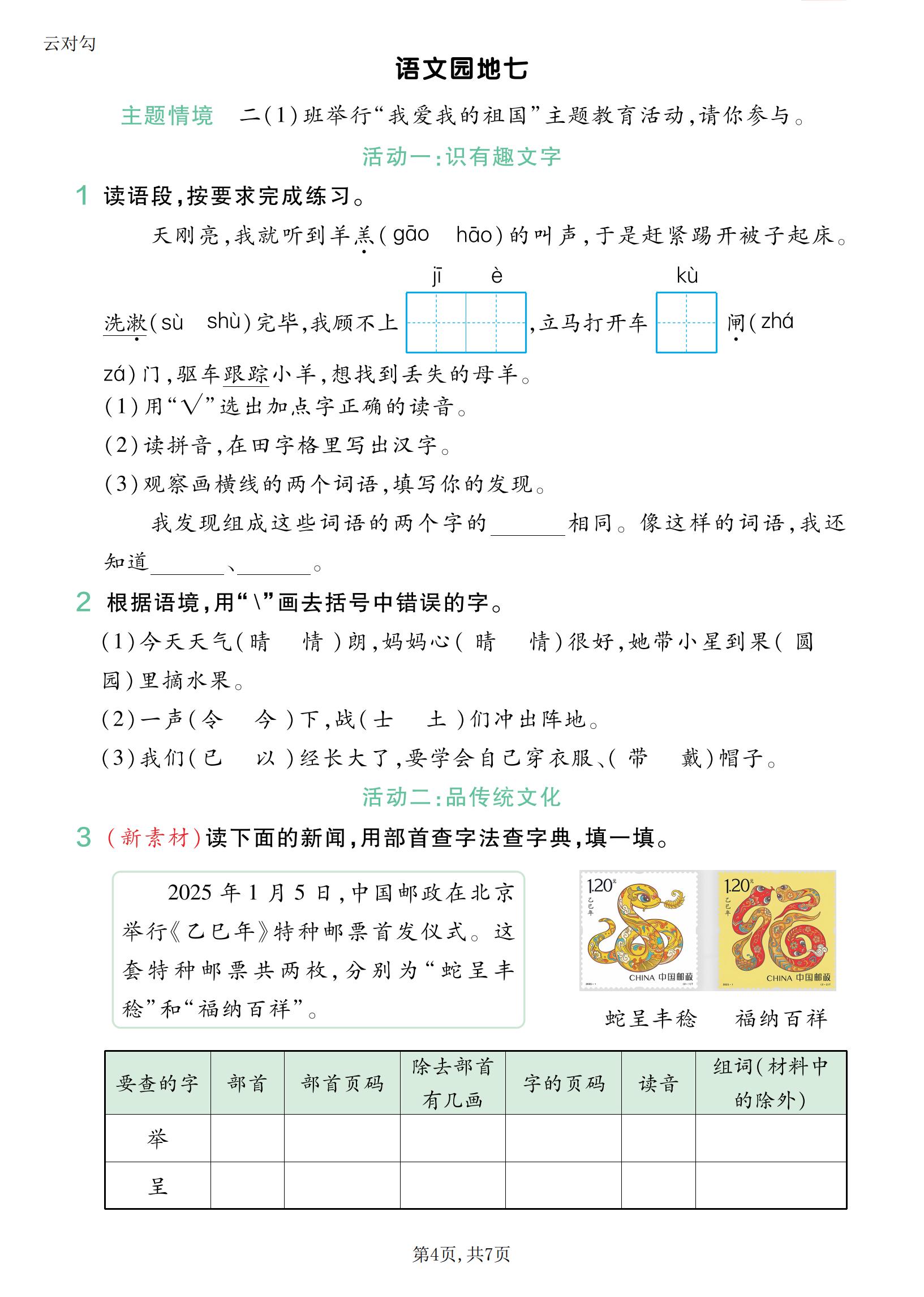 2025秋 · 二年级语文上册-一课一练-第七单元部分