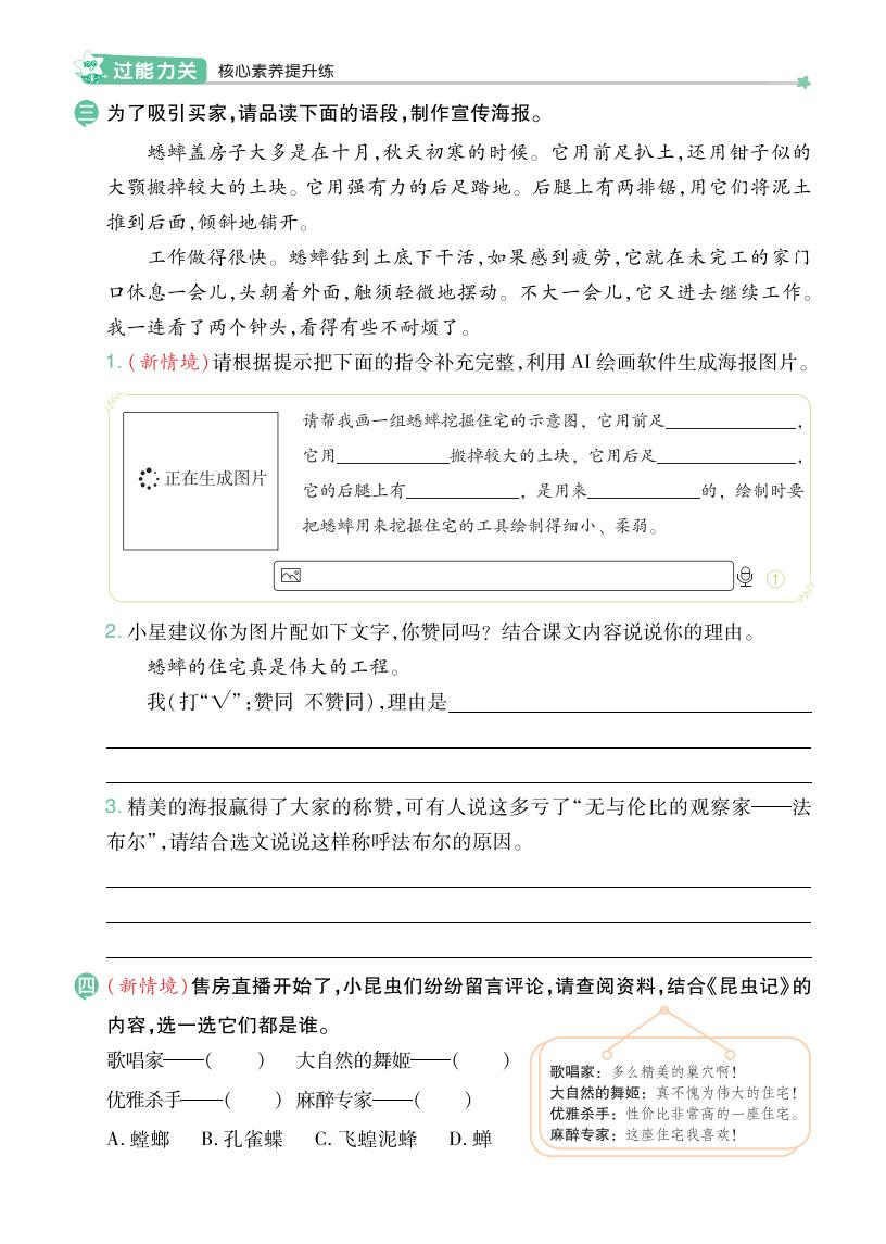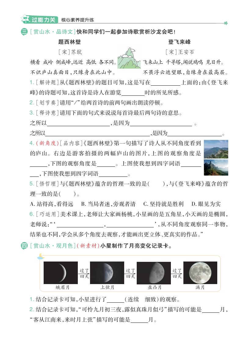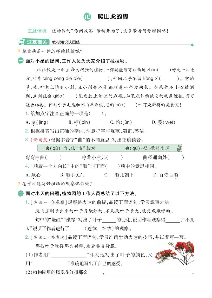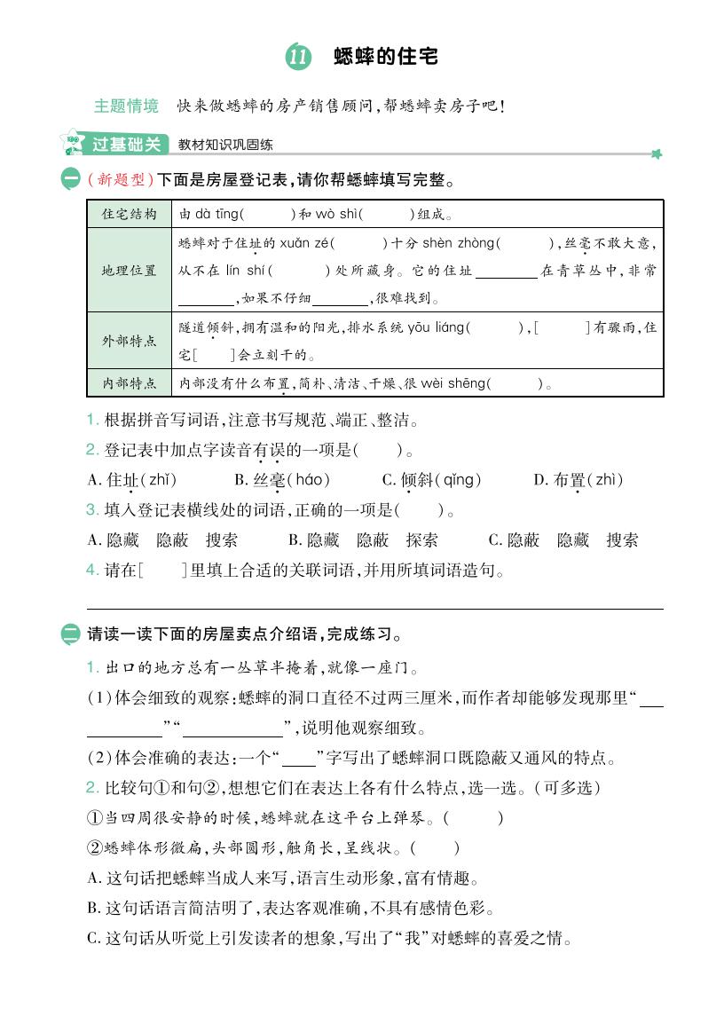 2025秋 · 四年级语文上册-一课一练-第三单元部分