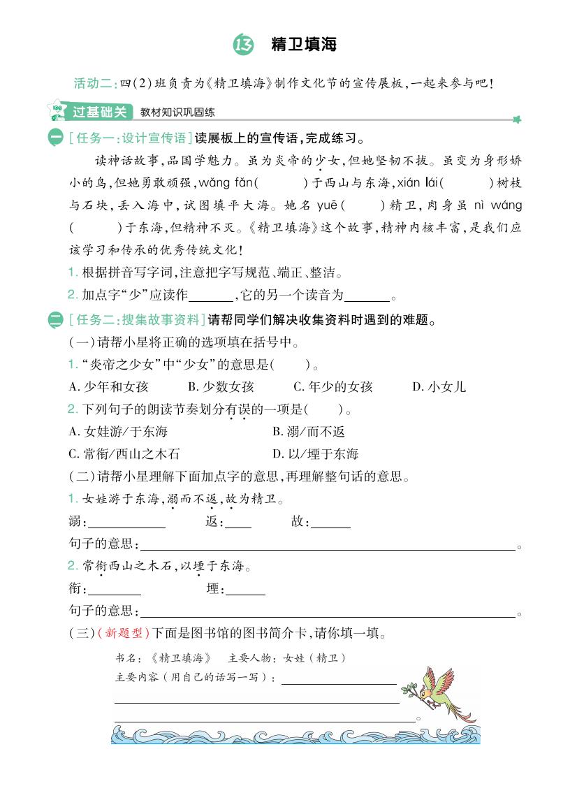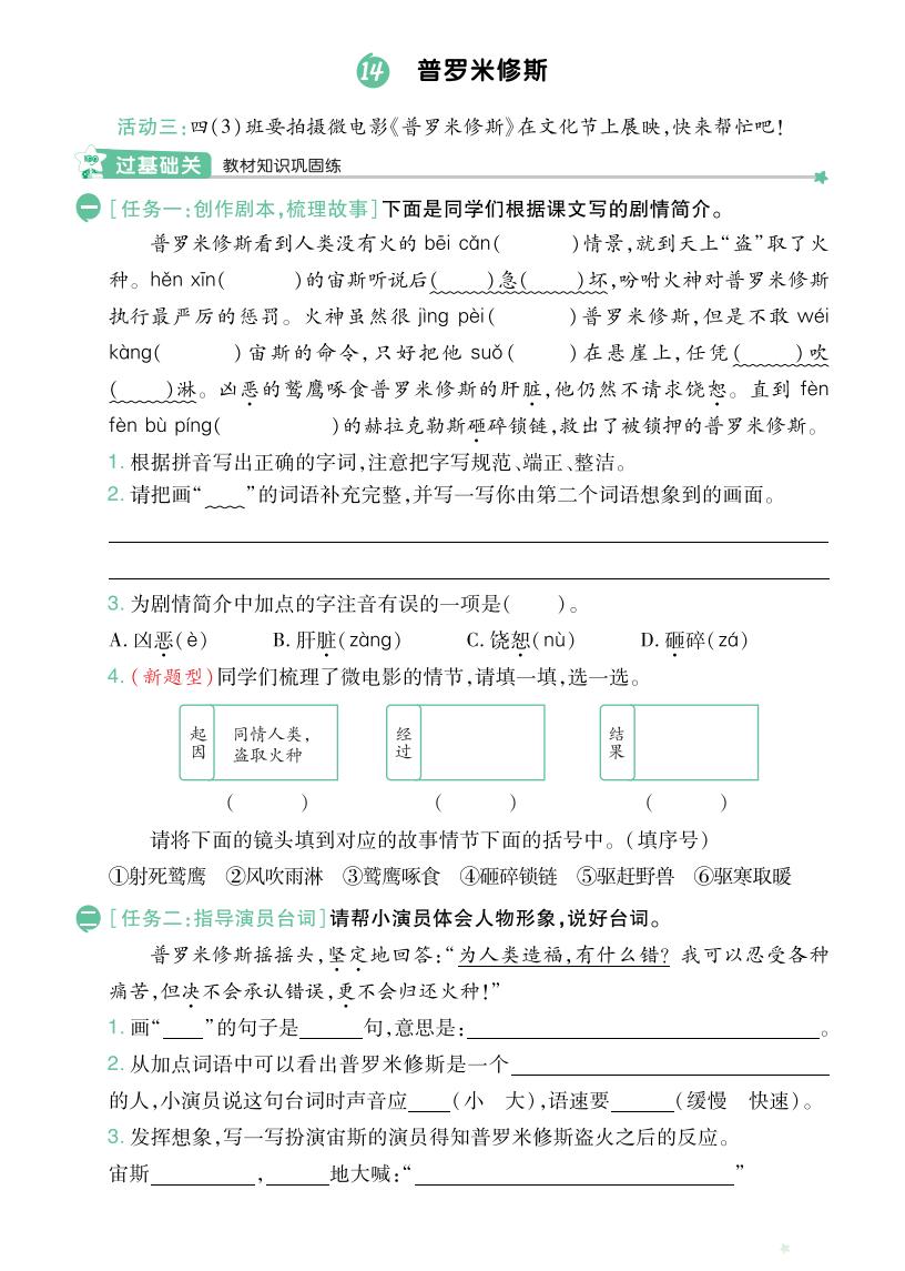 2025秋 · 四年级语文上册-一课一练-第四单元部分
