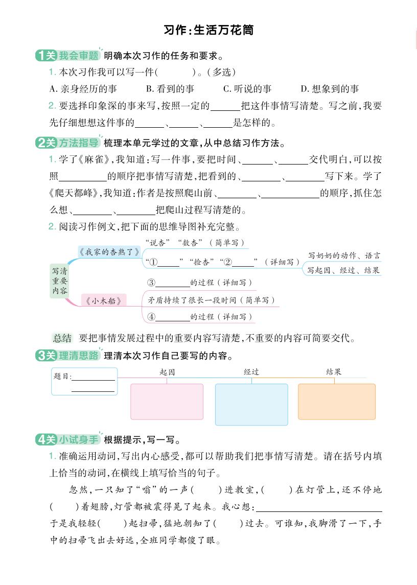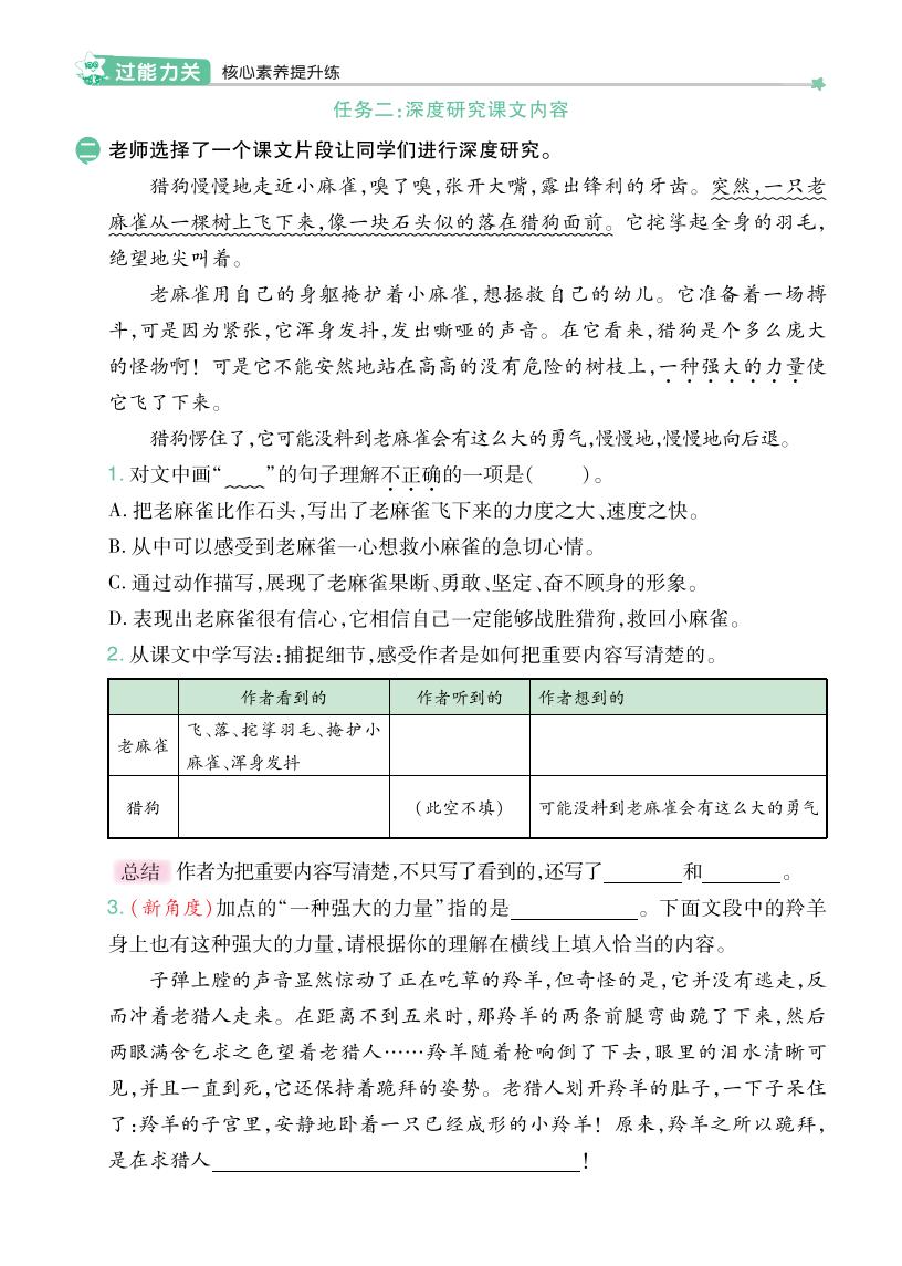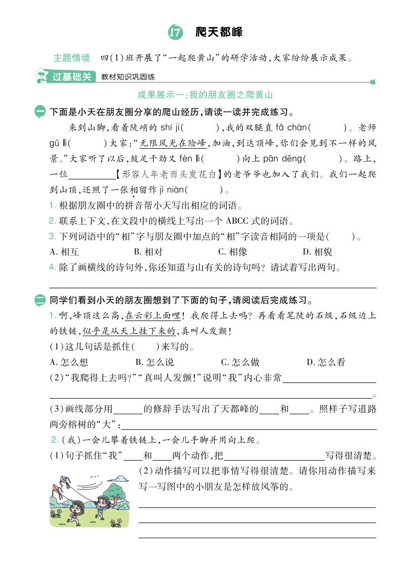 2025秋 · 四年级语文上册-一课一练-第五单元部分
