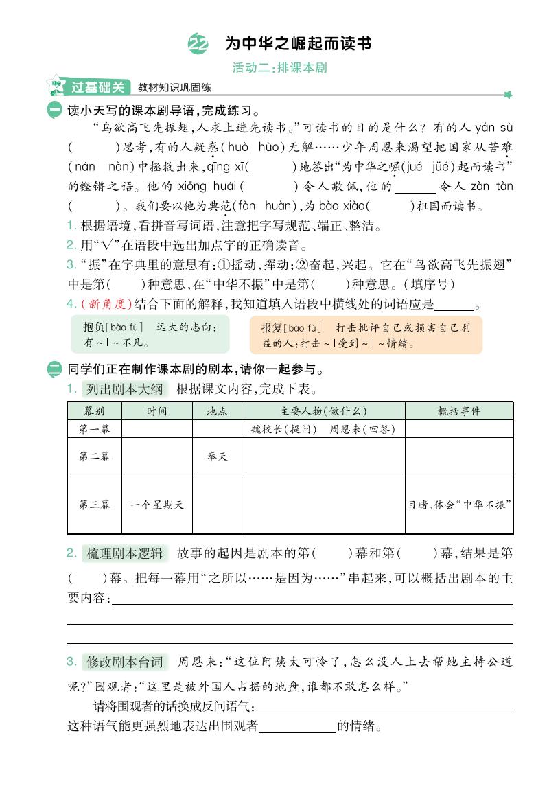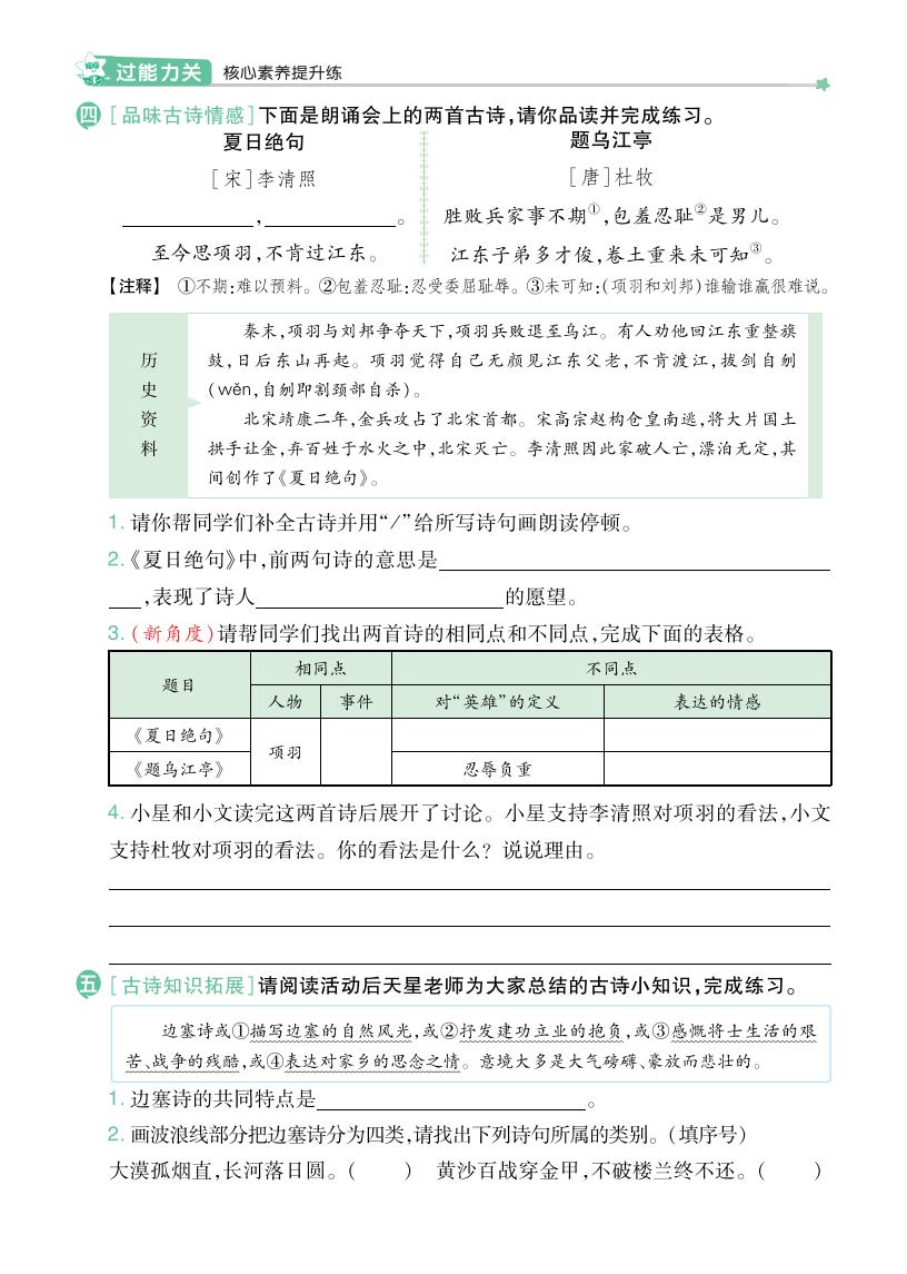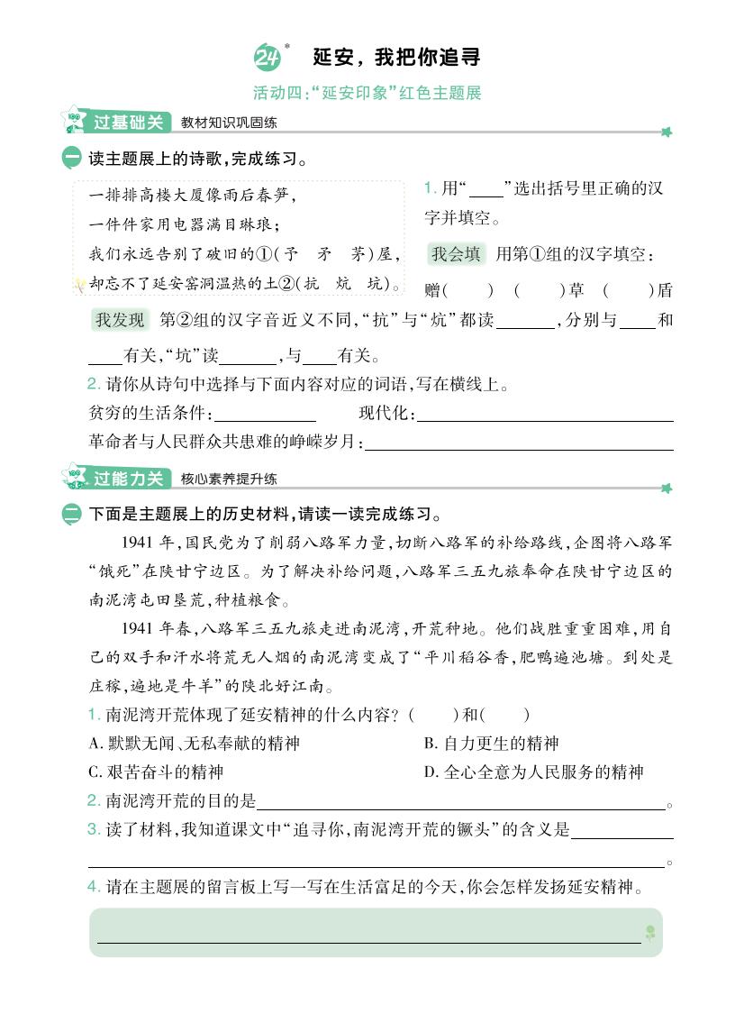 2025秋 · 四年级语文上册-一课一练-第七单元部分
