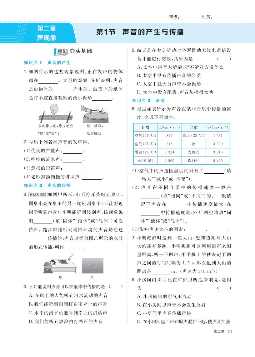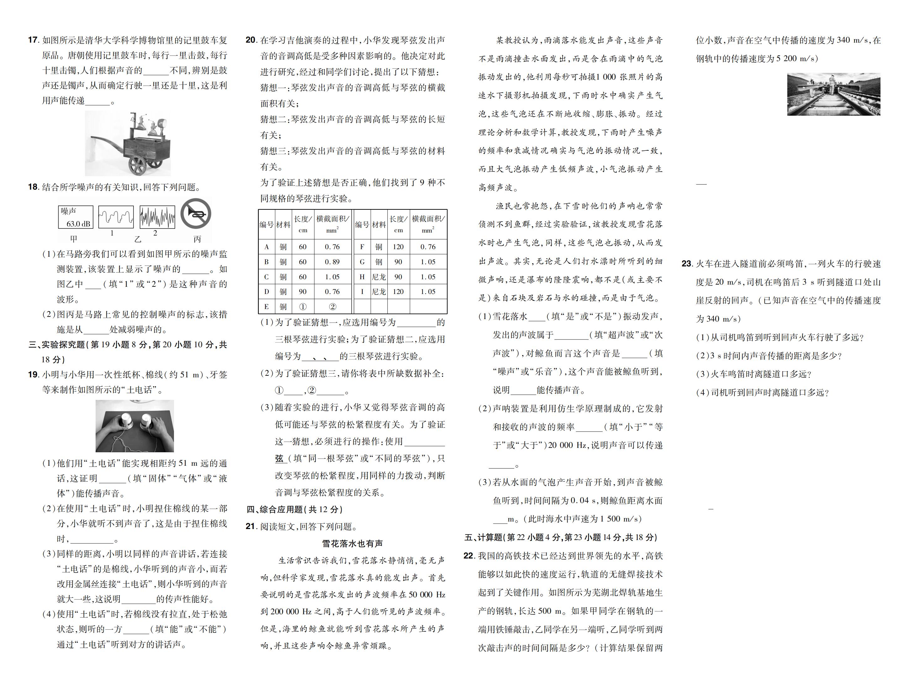 八年级物理上册 · 第二章 声现象-单元测试卷-2025秋