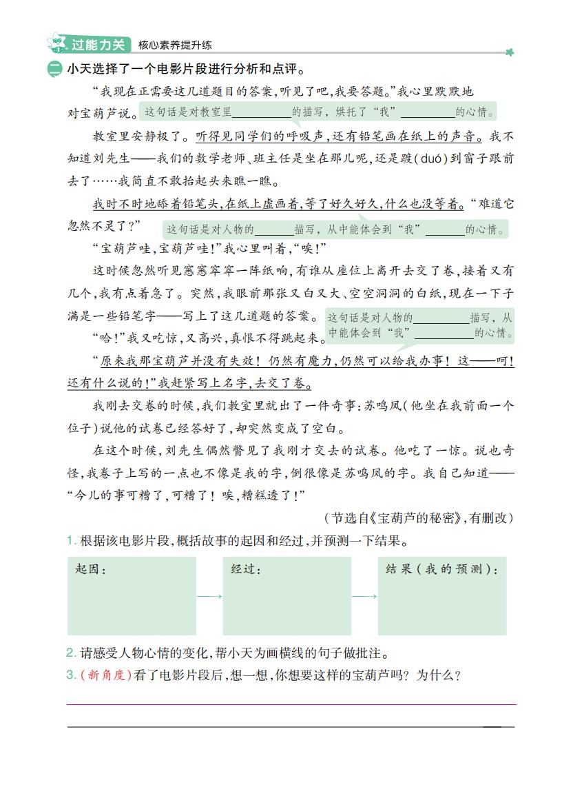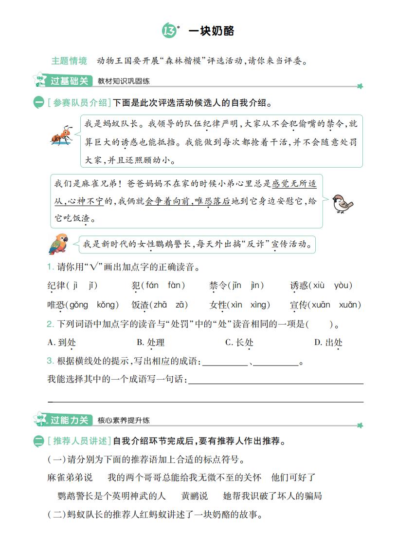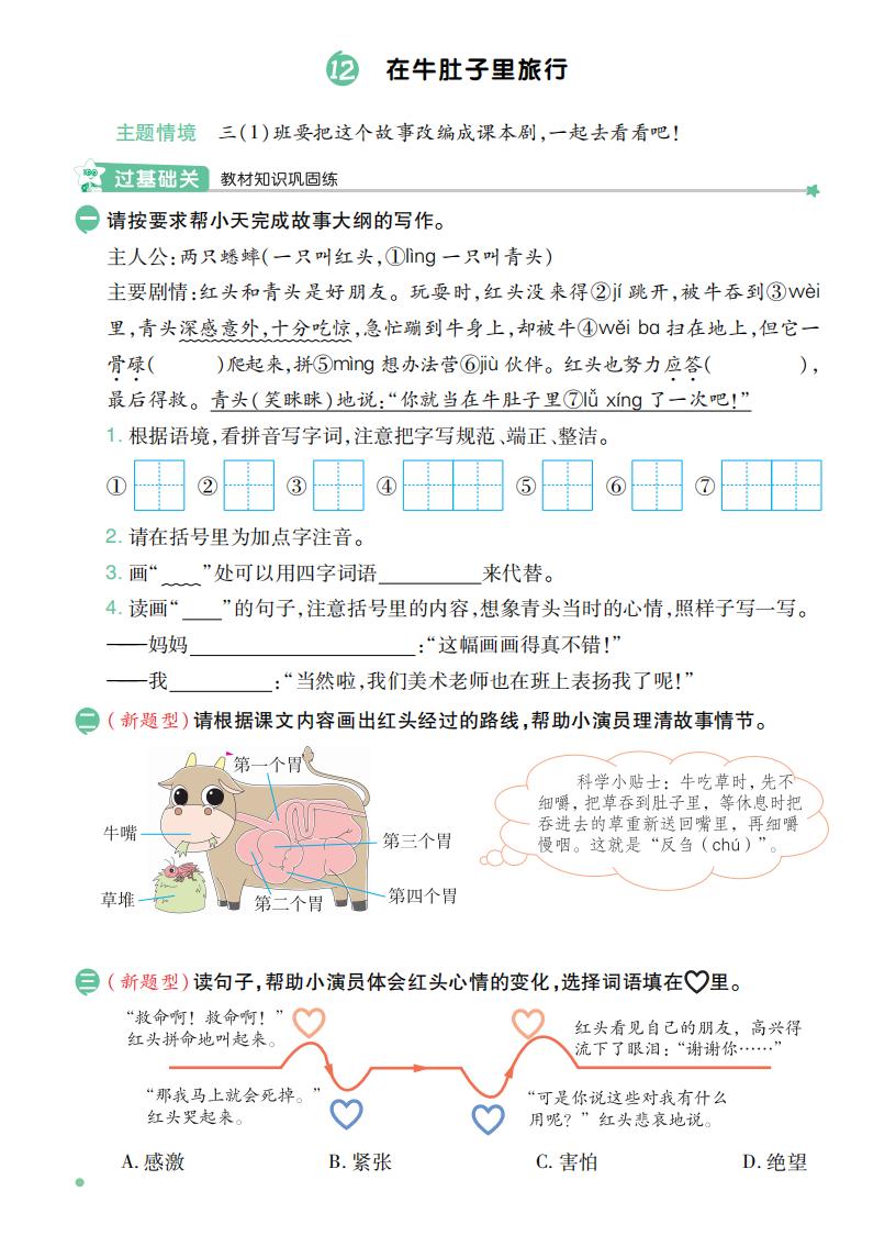 三年级语文上册 · 一课一练-第四单元部分-2025秋