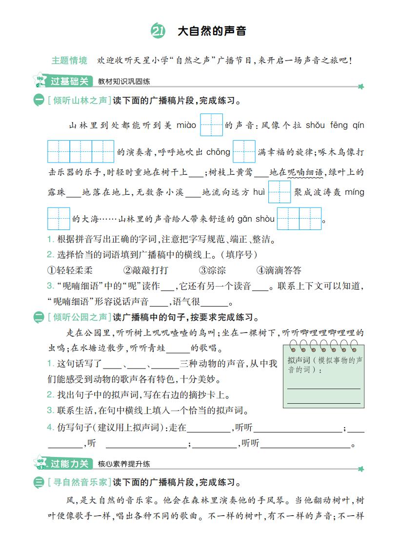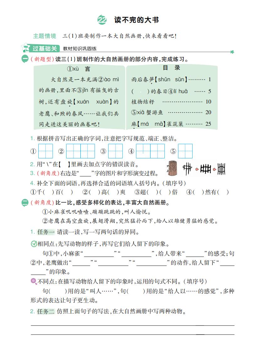 三年级语文上册 · 一课一练-第七单元部分-2025秋