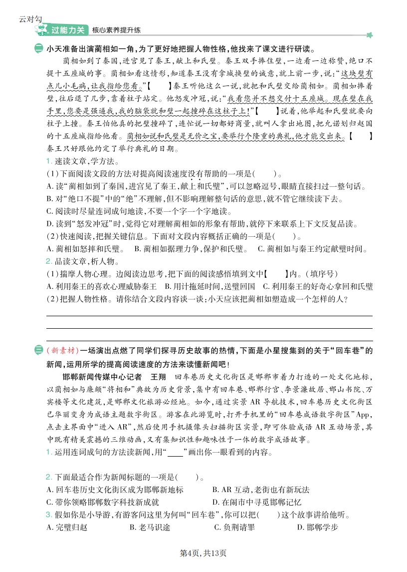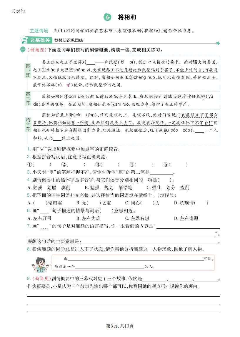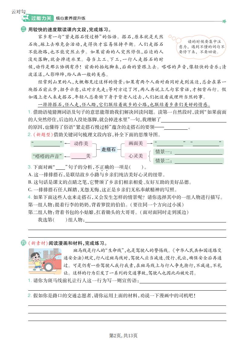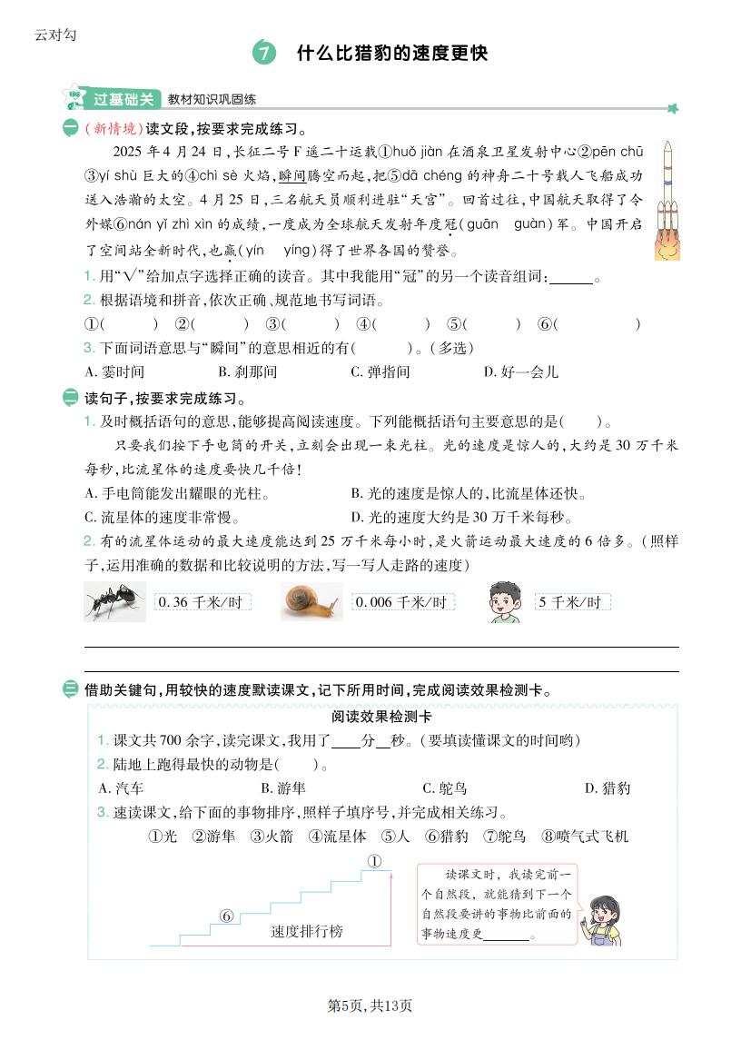 五年级语文上册 · 一课一练-第二单元部分-2025秋