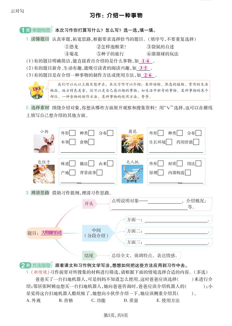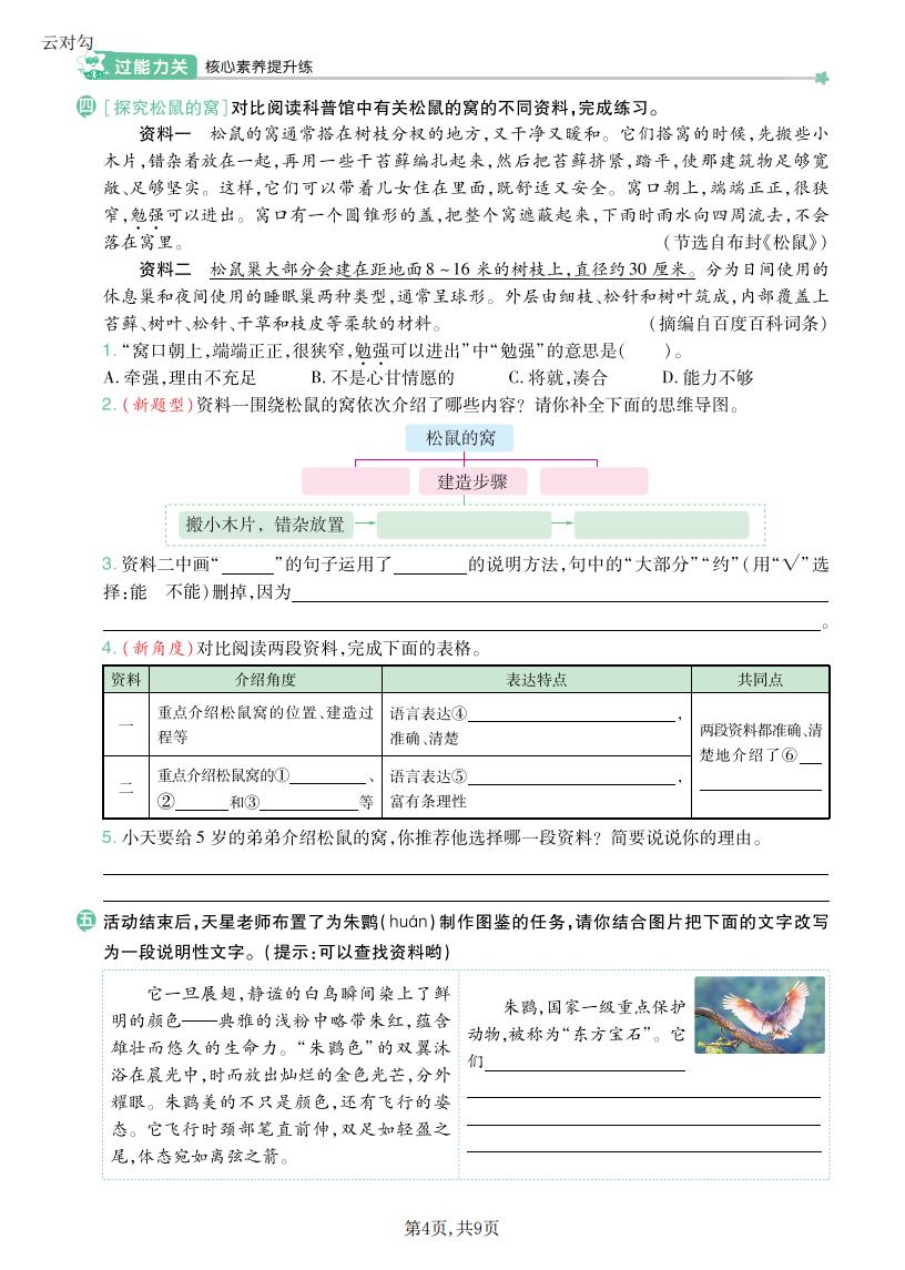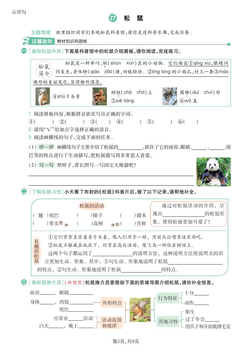 五年级语文上册 · 一课一练-第五单元部分-2025秋