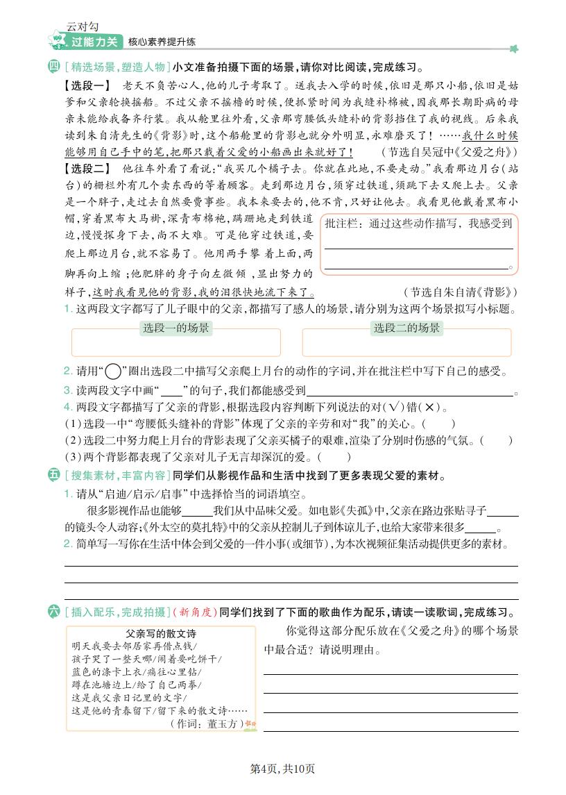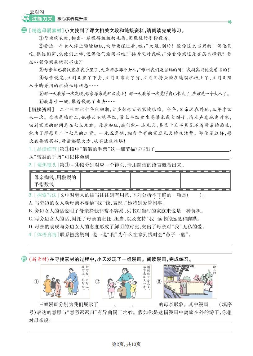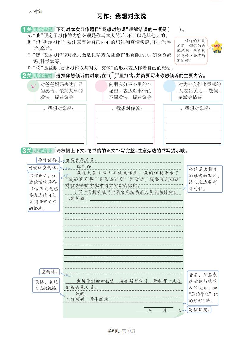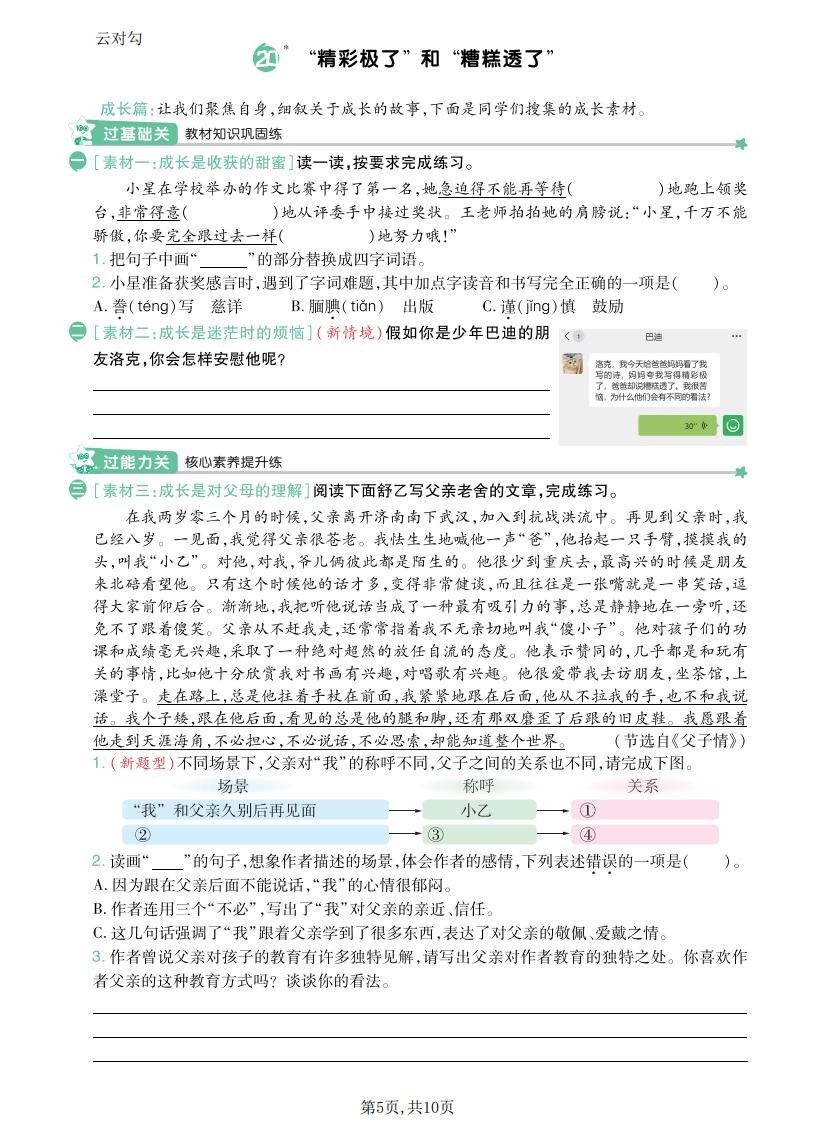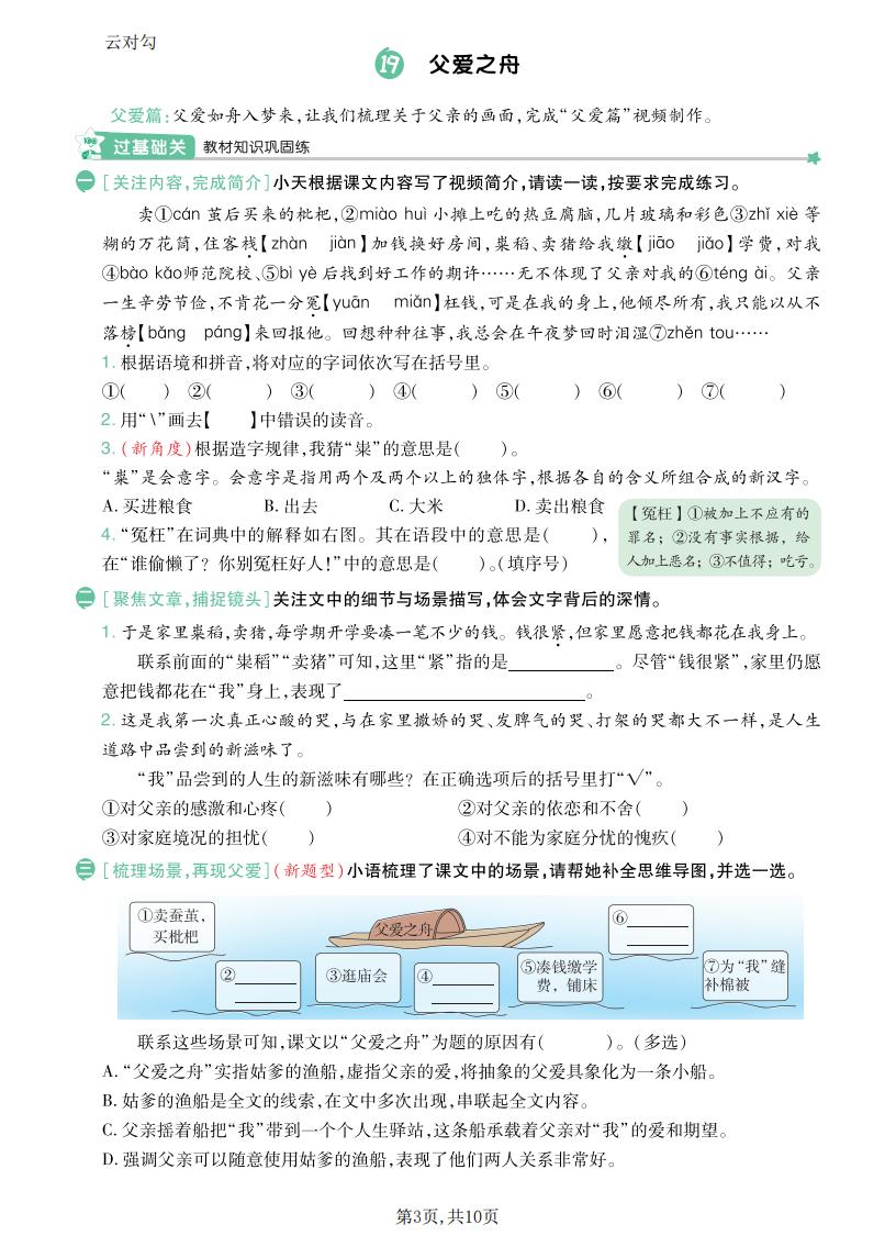 五年级语文上册 · 一课一练-第六单元部分-2025秋