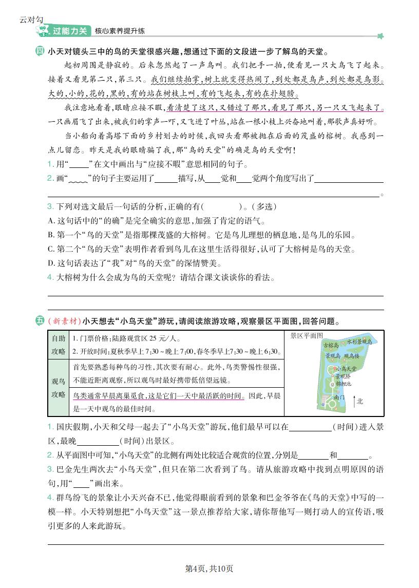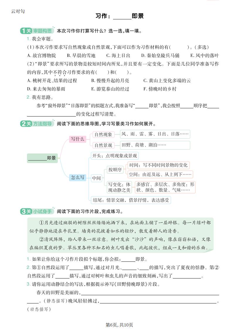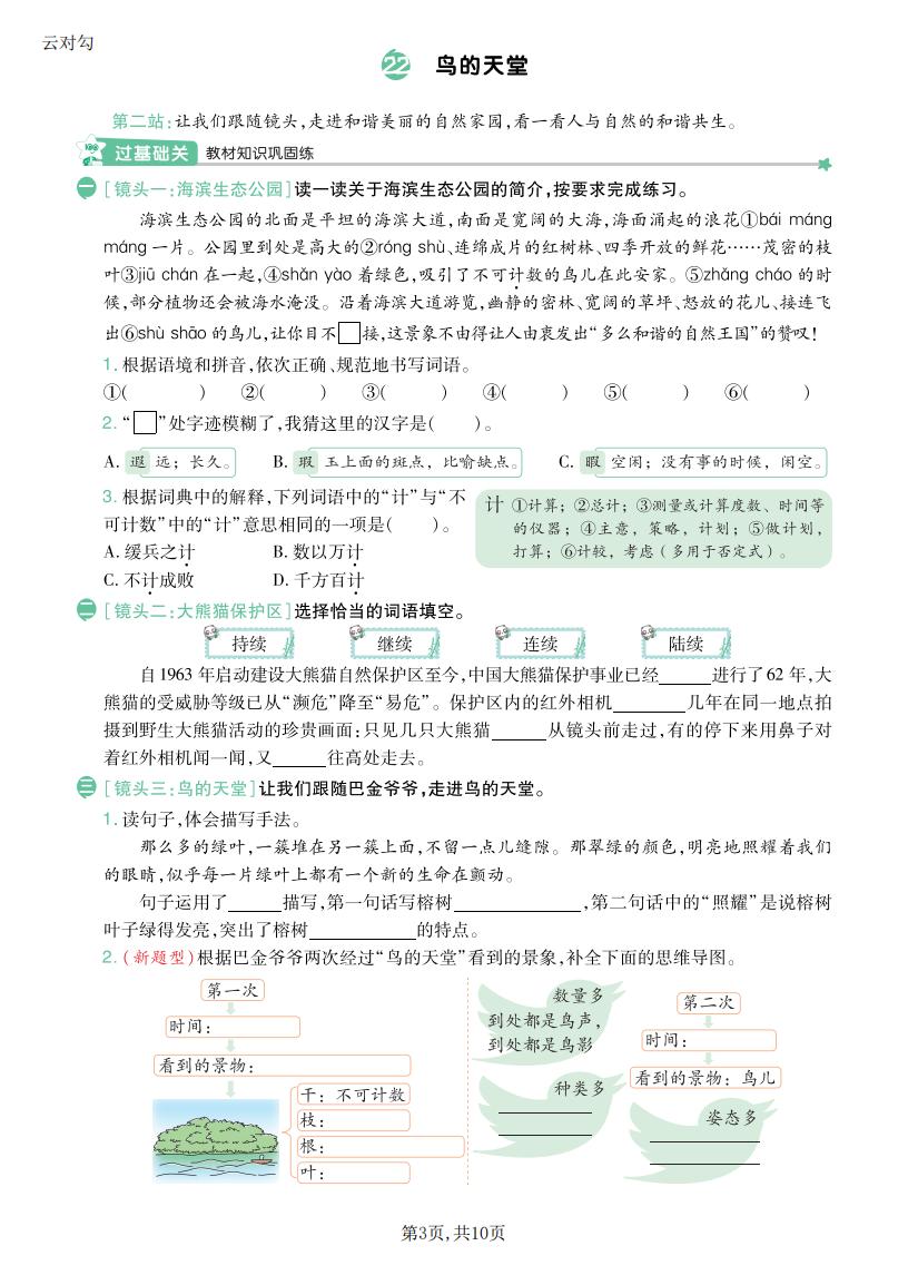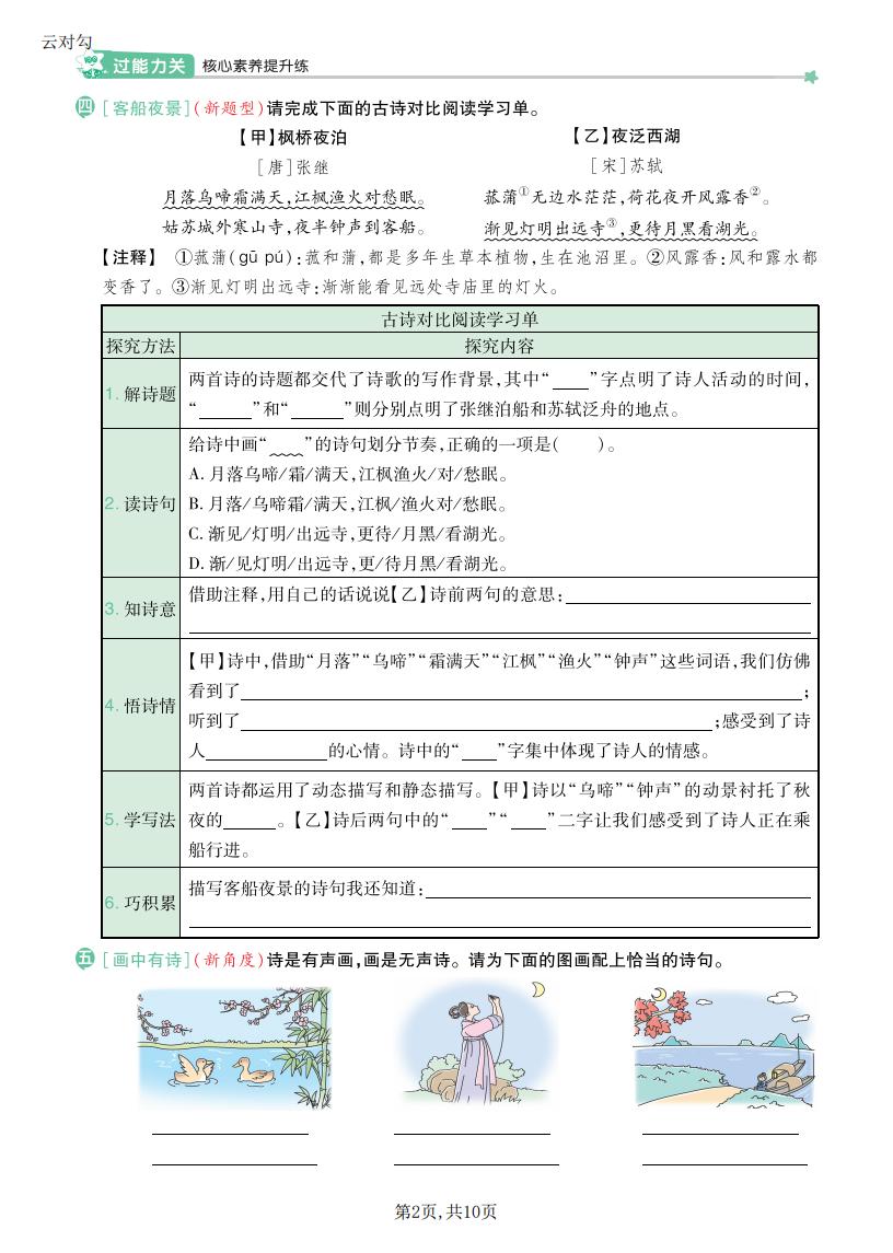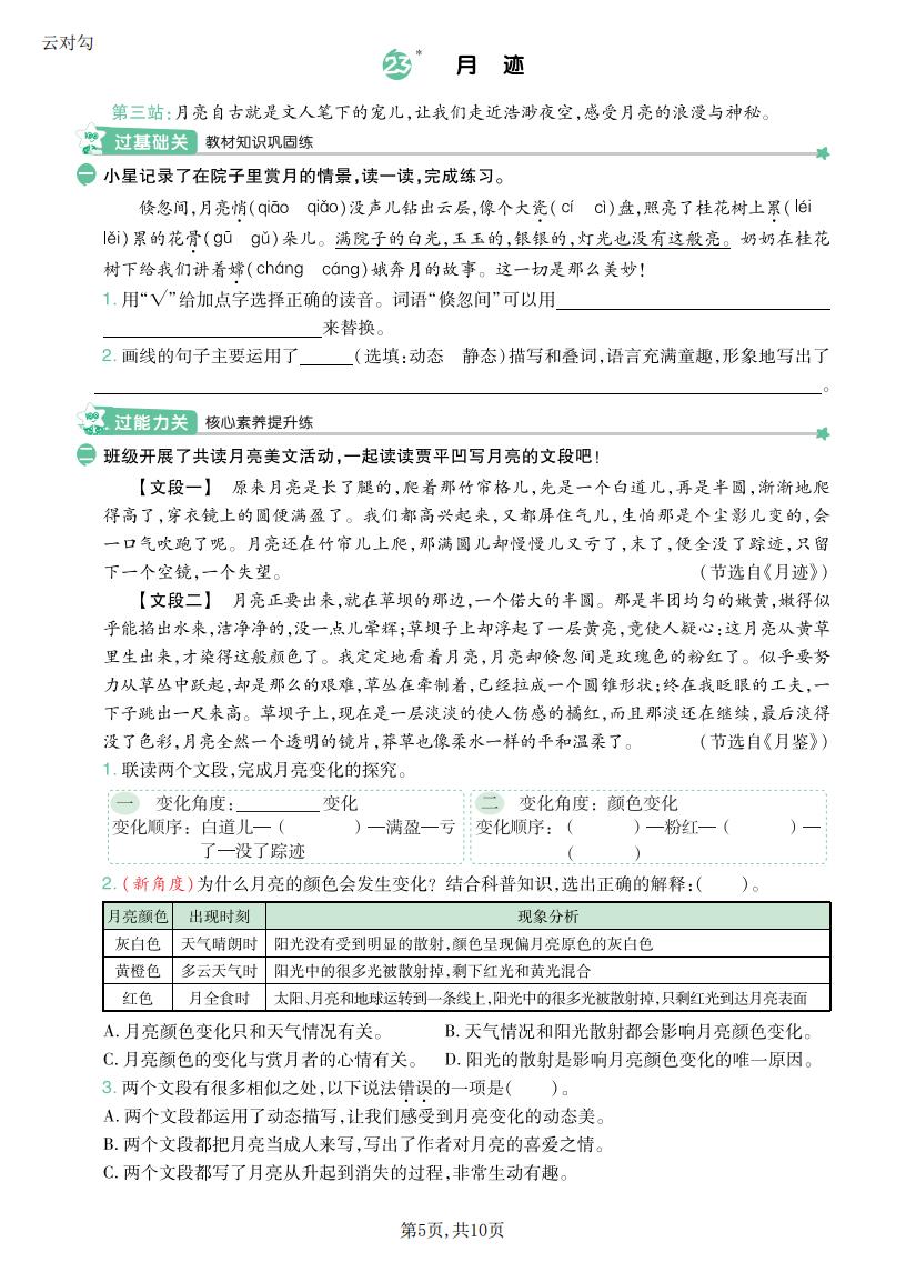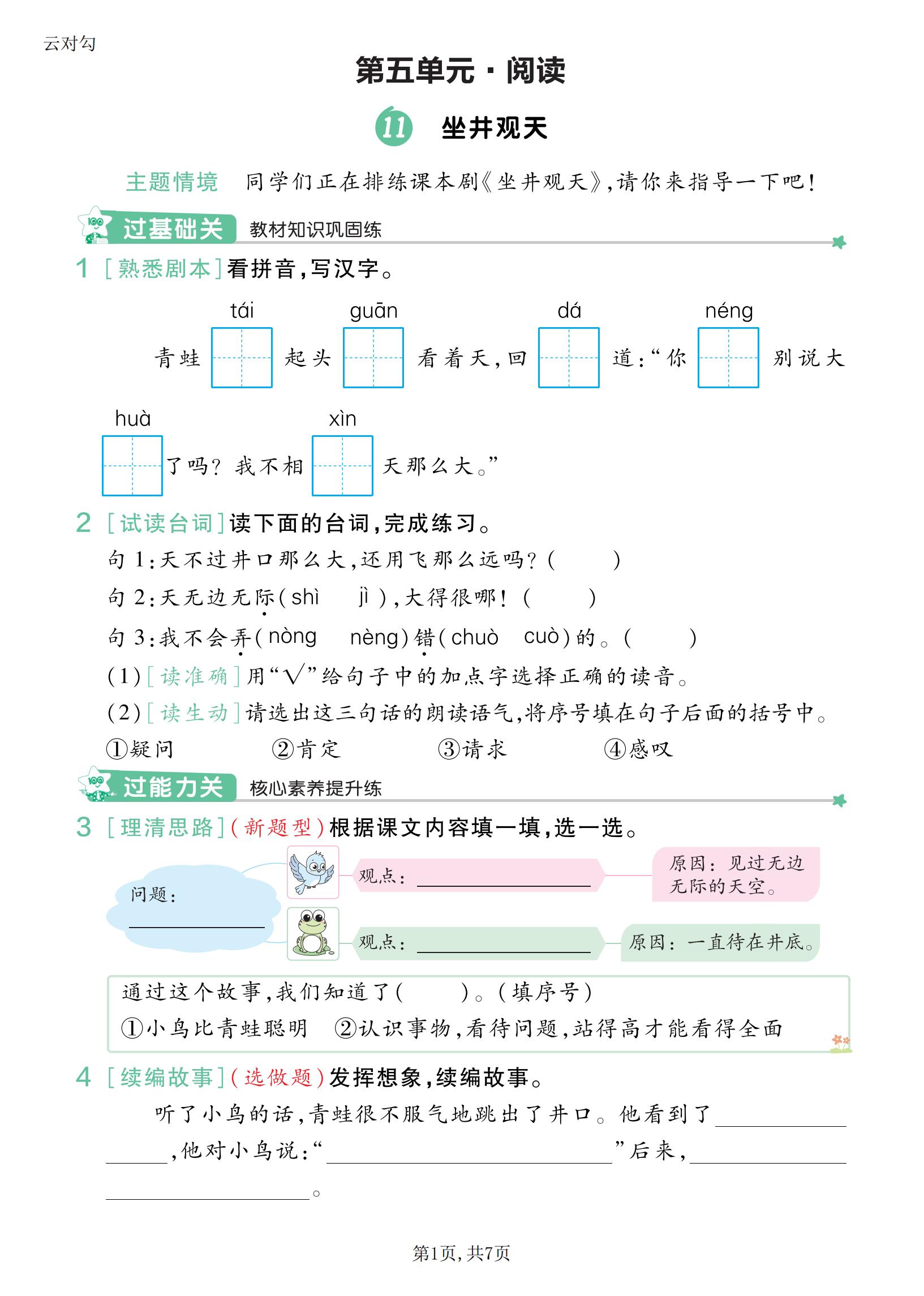 五年级语文上册 · 一课一练-第七单元部分-2025秋