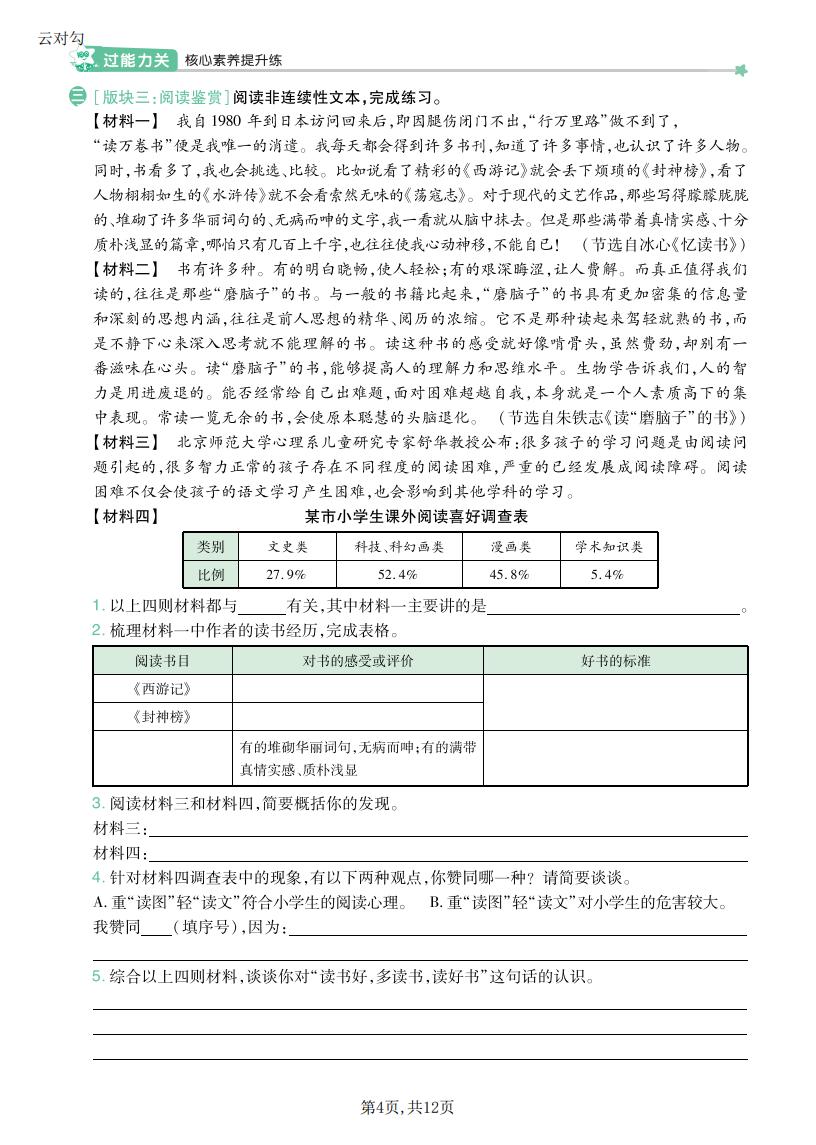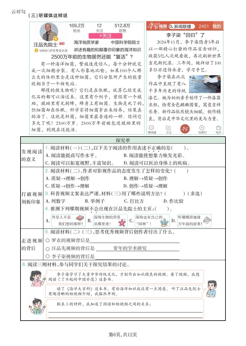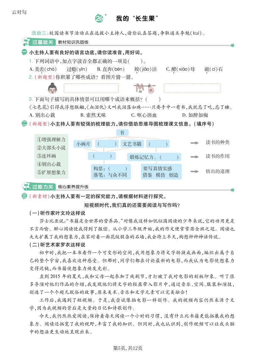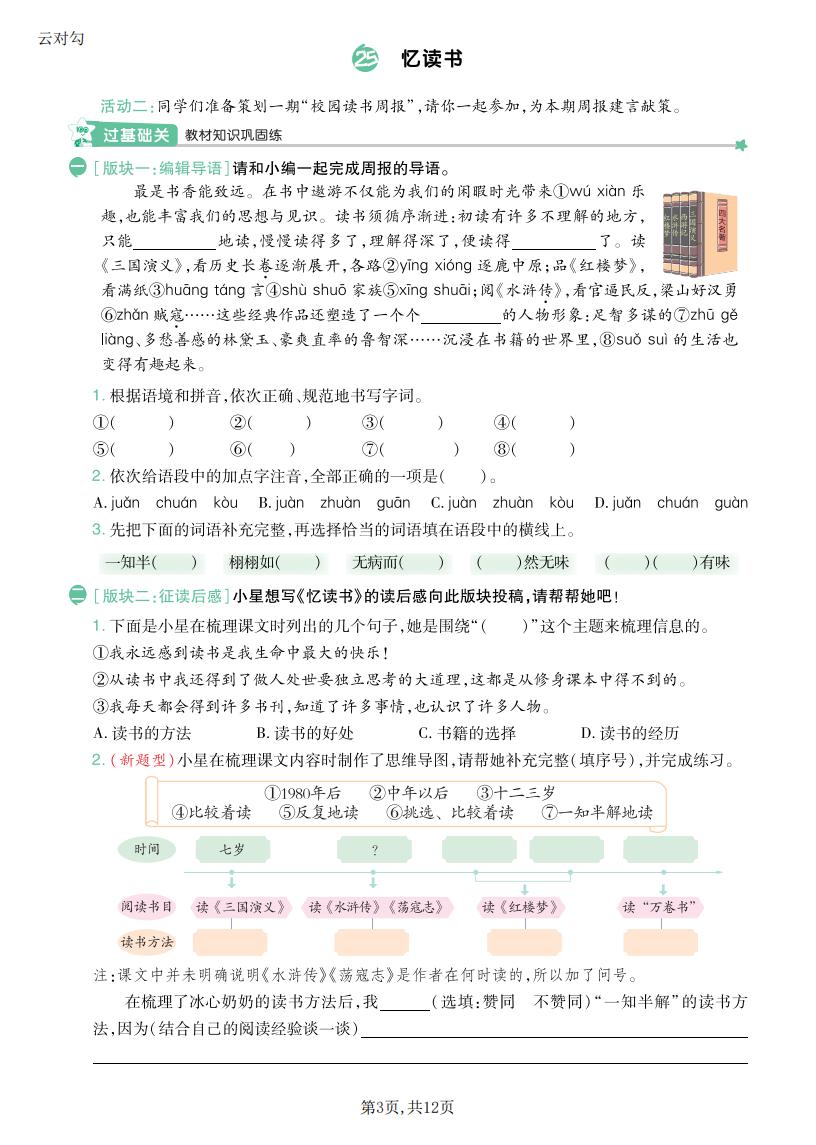 五年级语文上册 · 一课一练-第八单元部分-2025秋