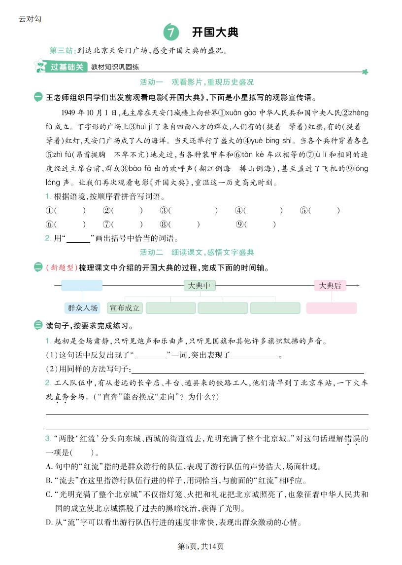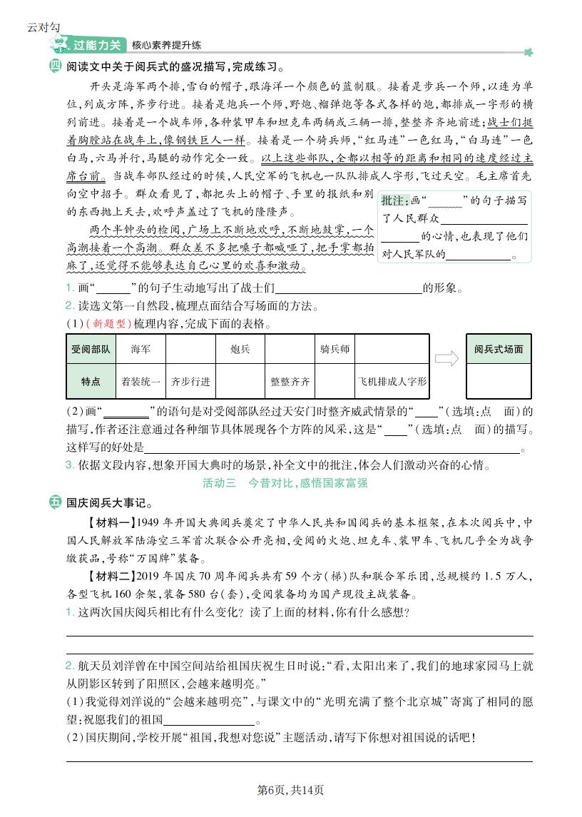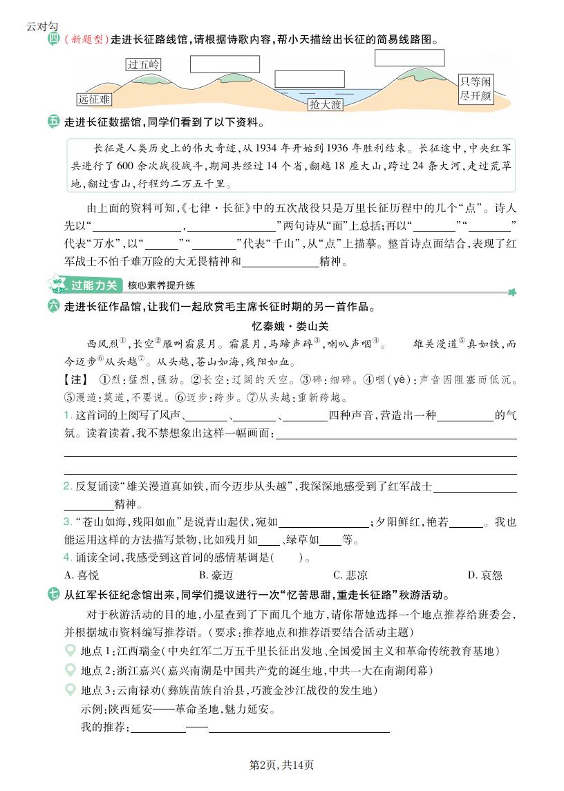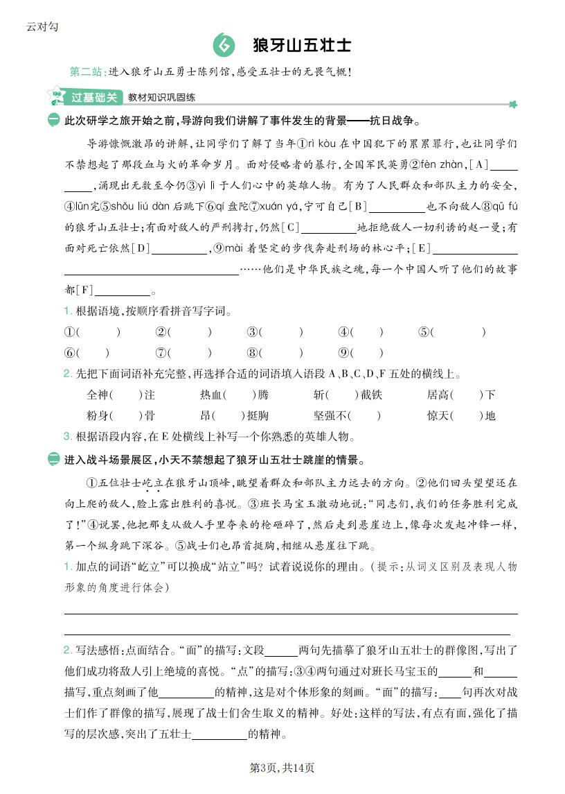 六年级语文上册 · 一课一练-第二单元部分-2025秋