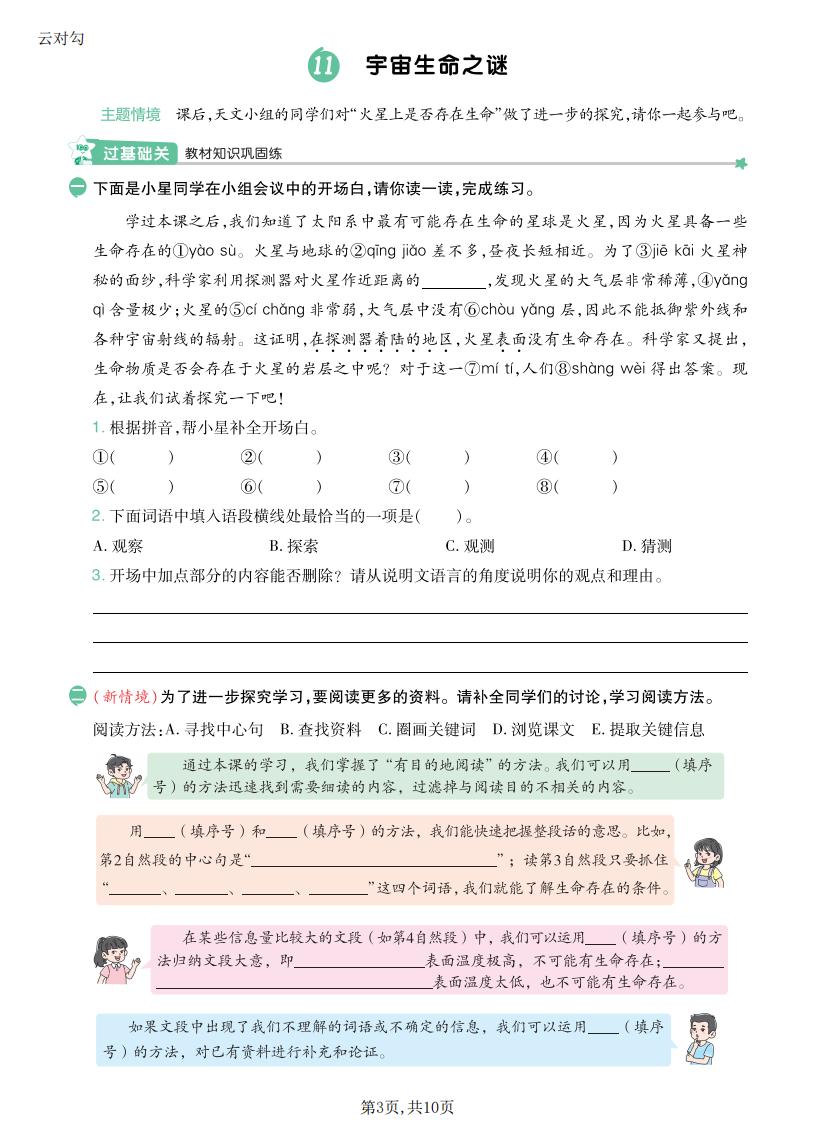 六年级语文上册 · 一课一练-第三单元部分-2025秋
