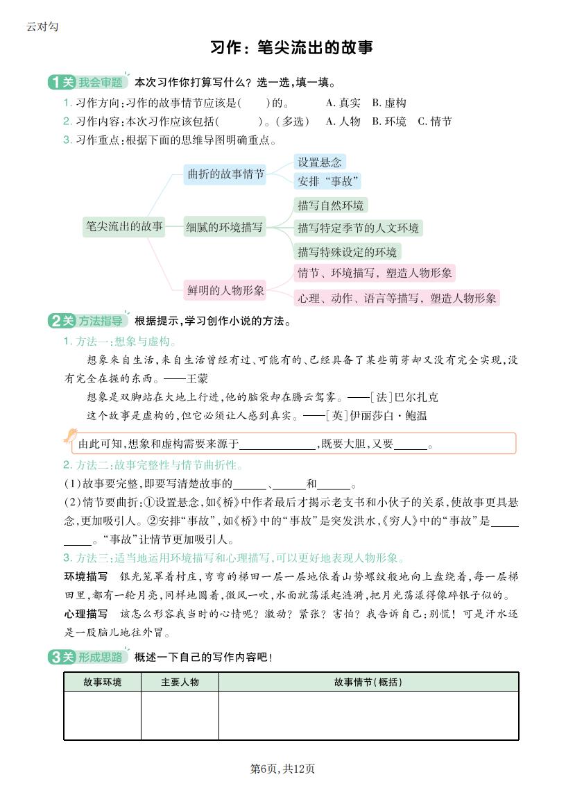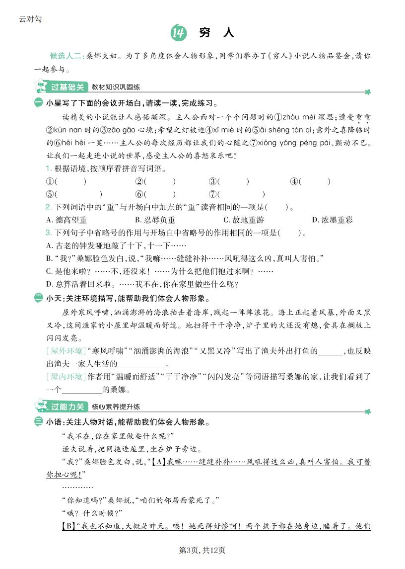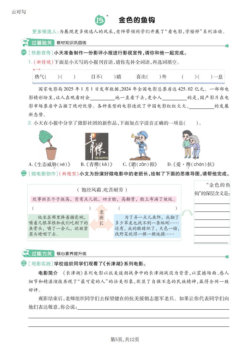 六年级语文上册 · 一课一练-第四单元部分-2025秋