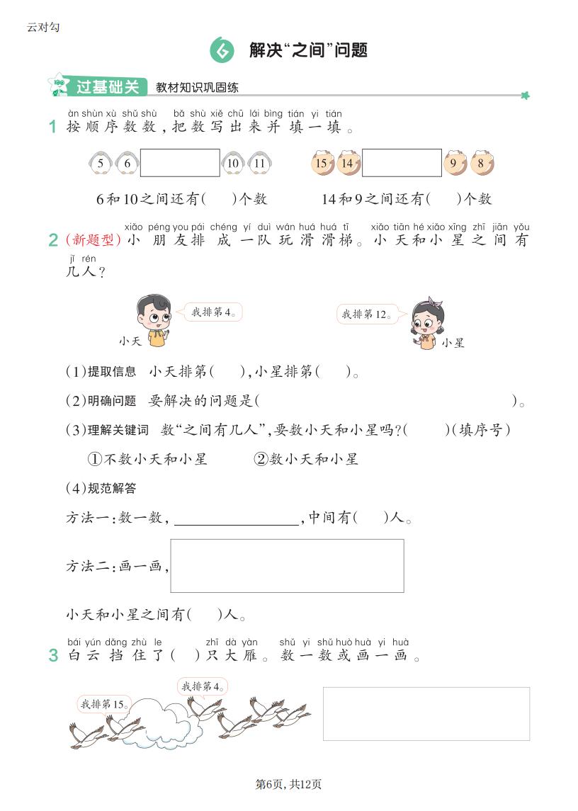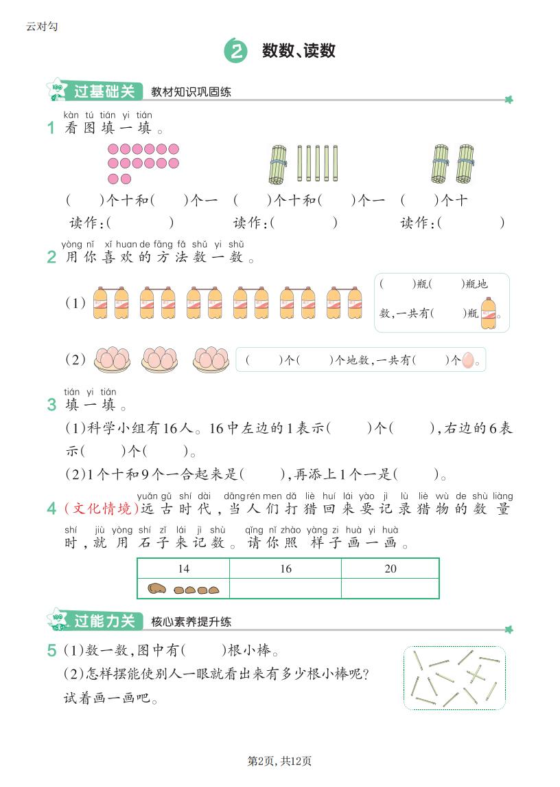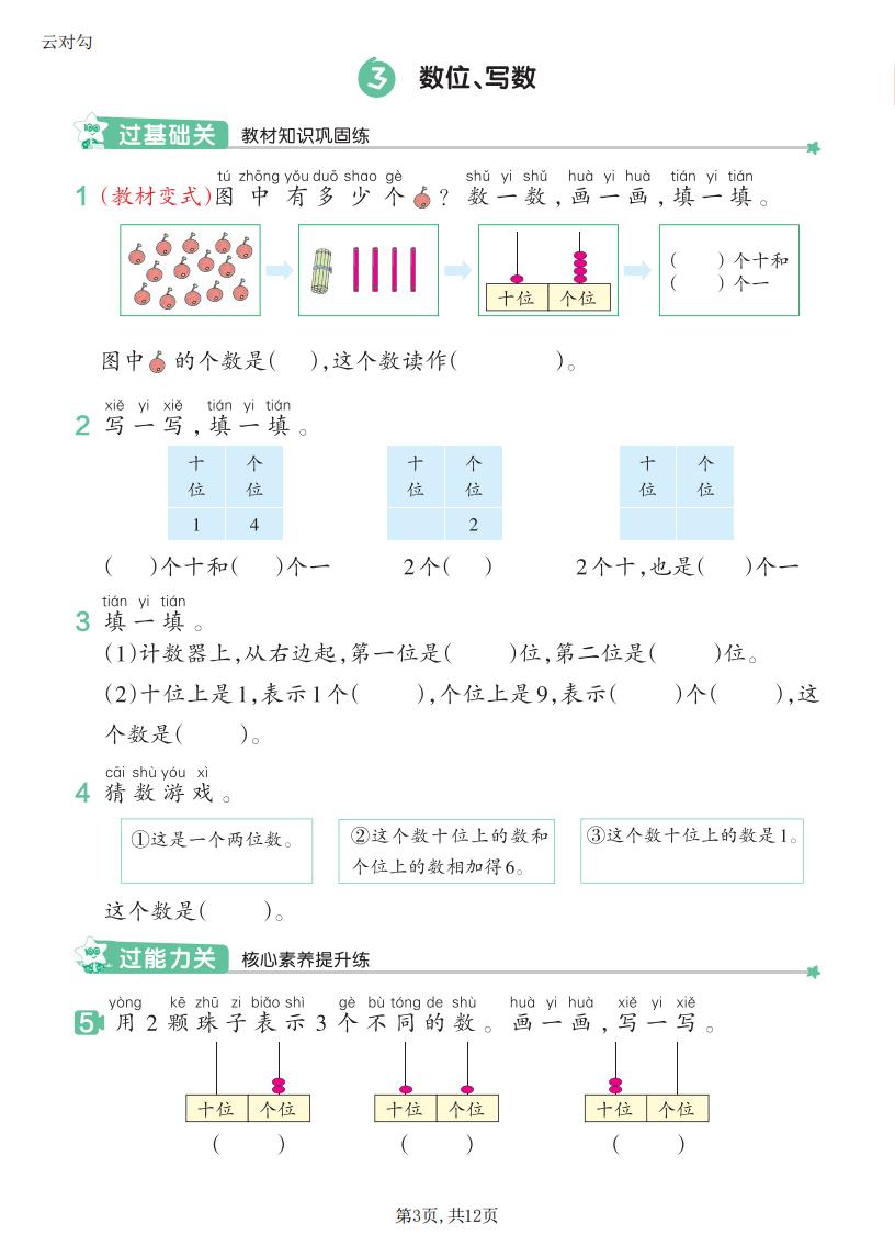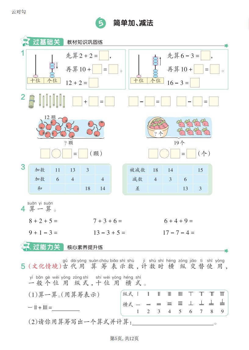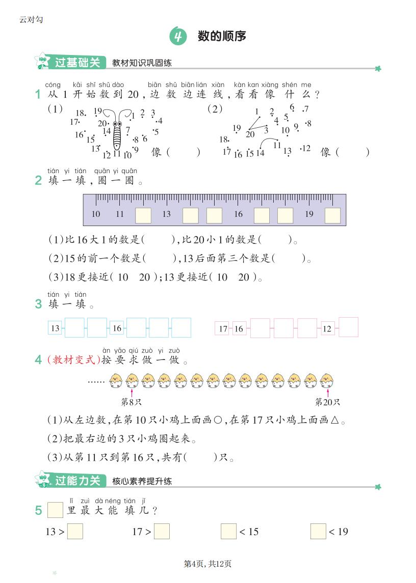 一年级数学上册RJ · 一课一练-第四单元部分-2025秋