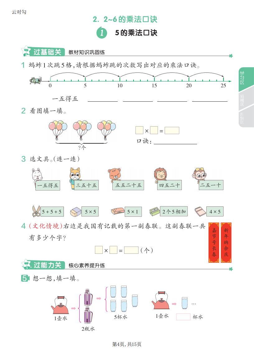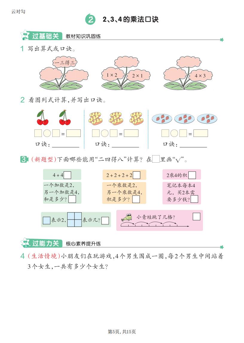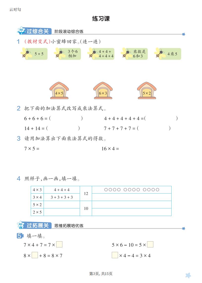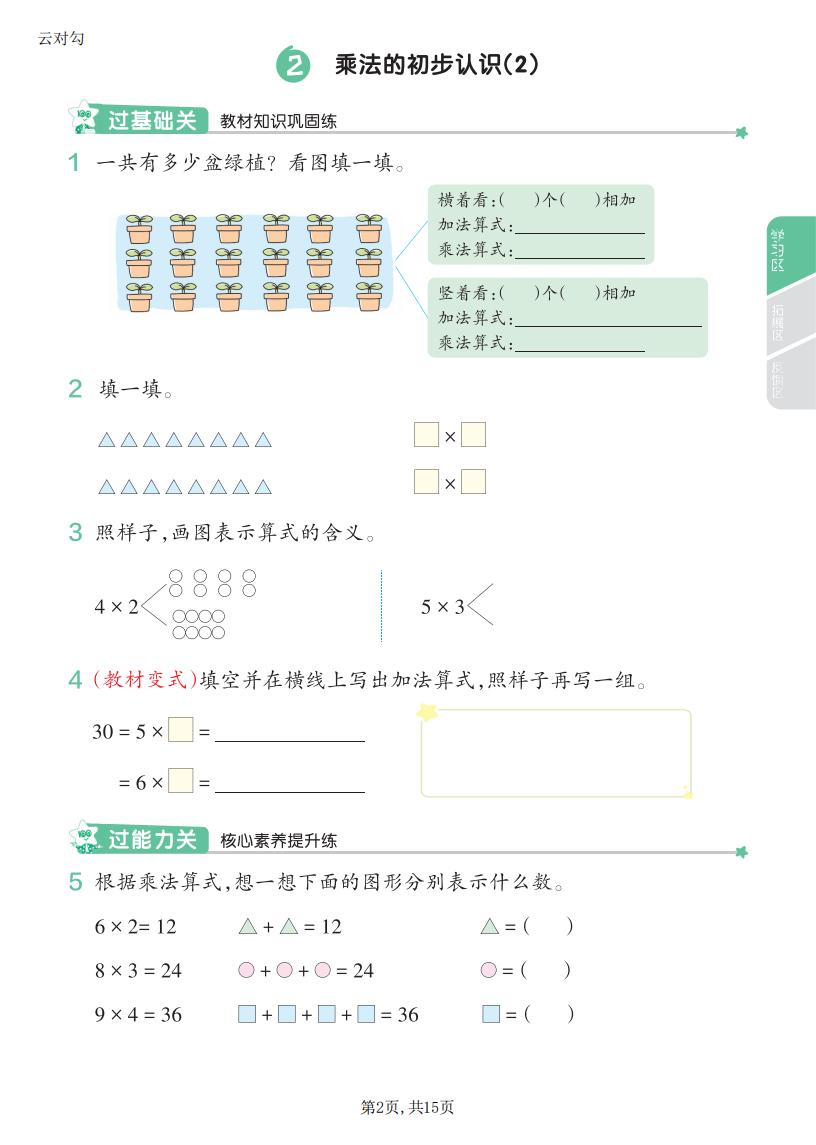 二年级数学上册RJ · 一课一练-第二单元部分-2025秋