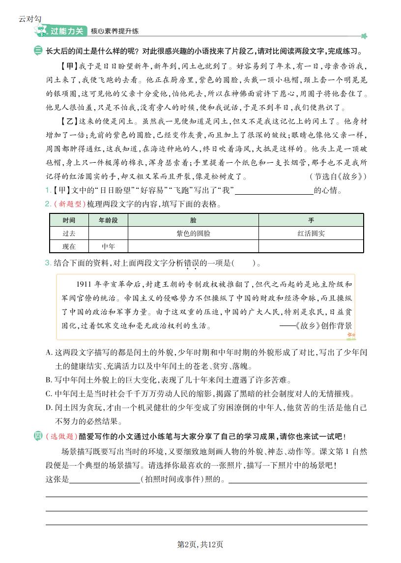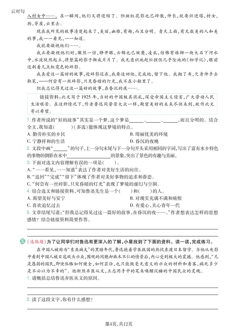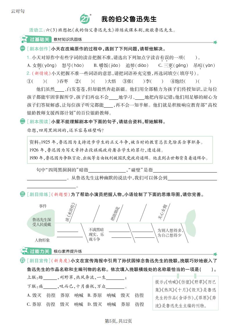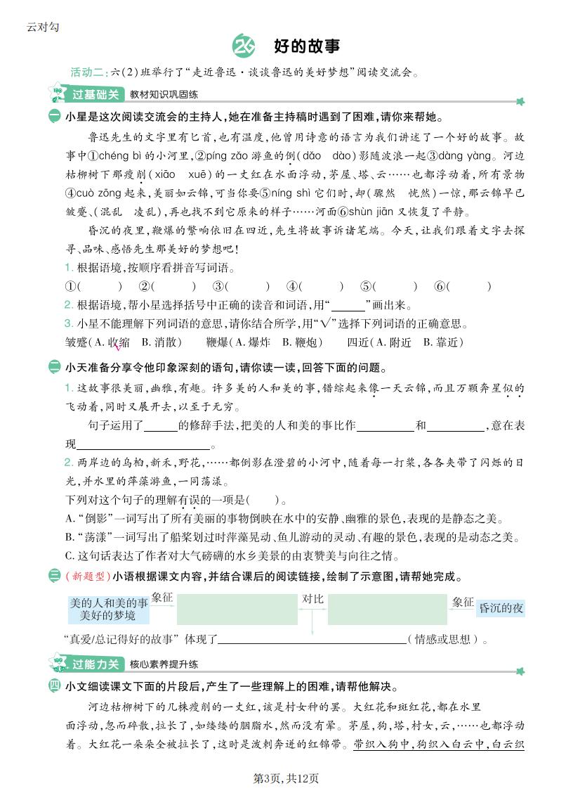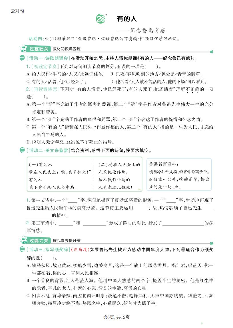 六年级语文上册 · 一课一练-第八单元部分-2025秋