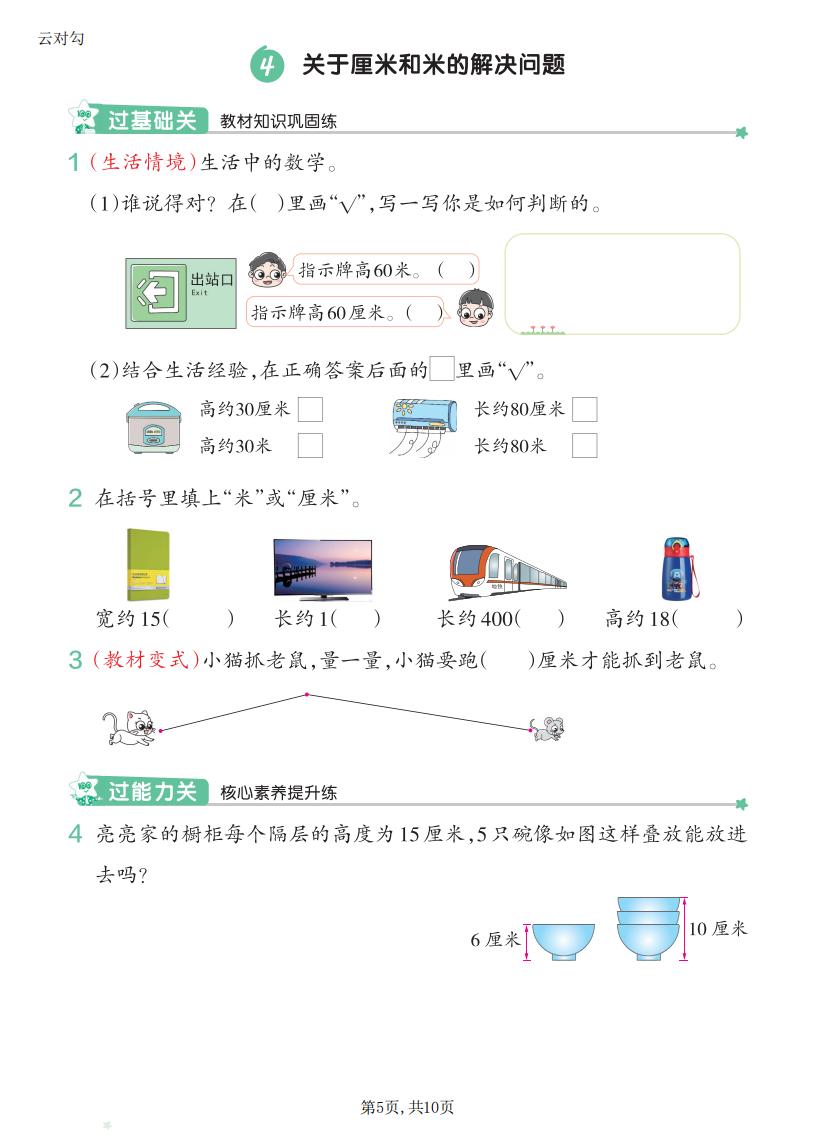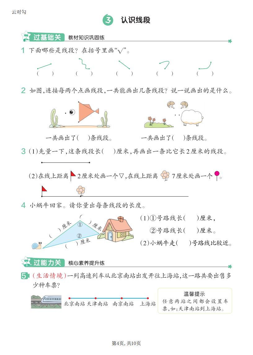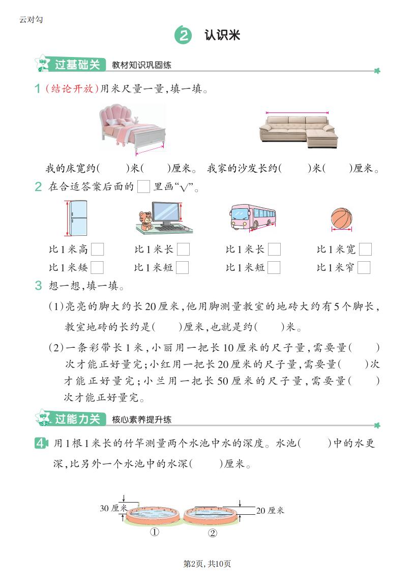 二年级数学上册RJ · 一课一练-第四单元部分-2025秋