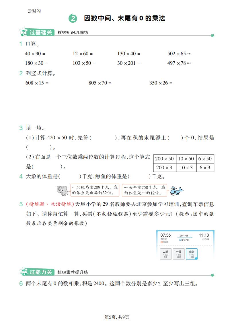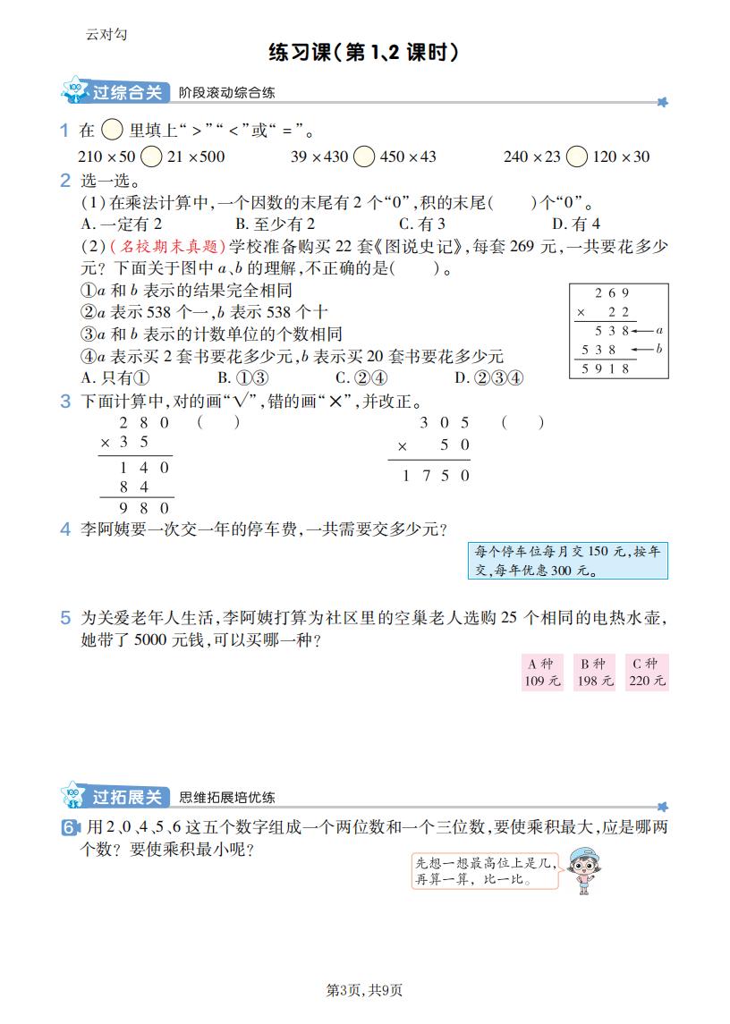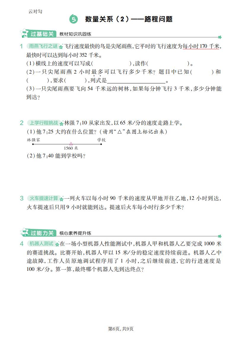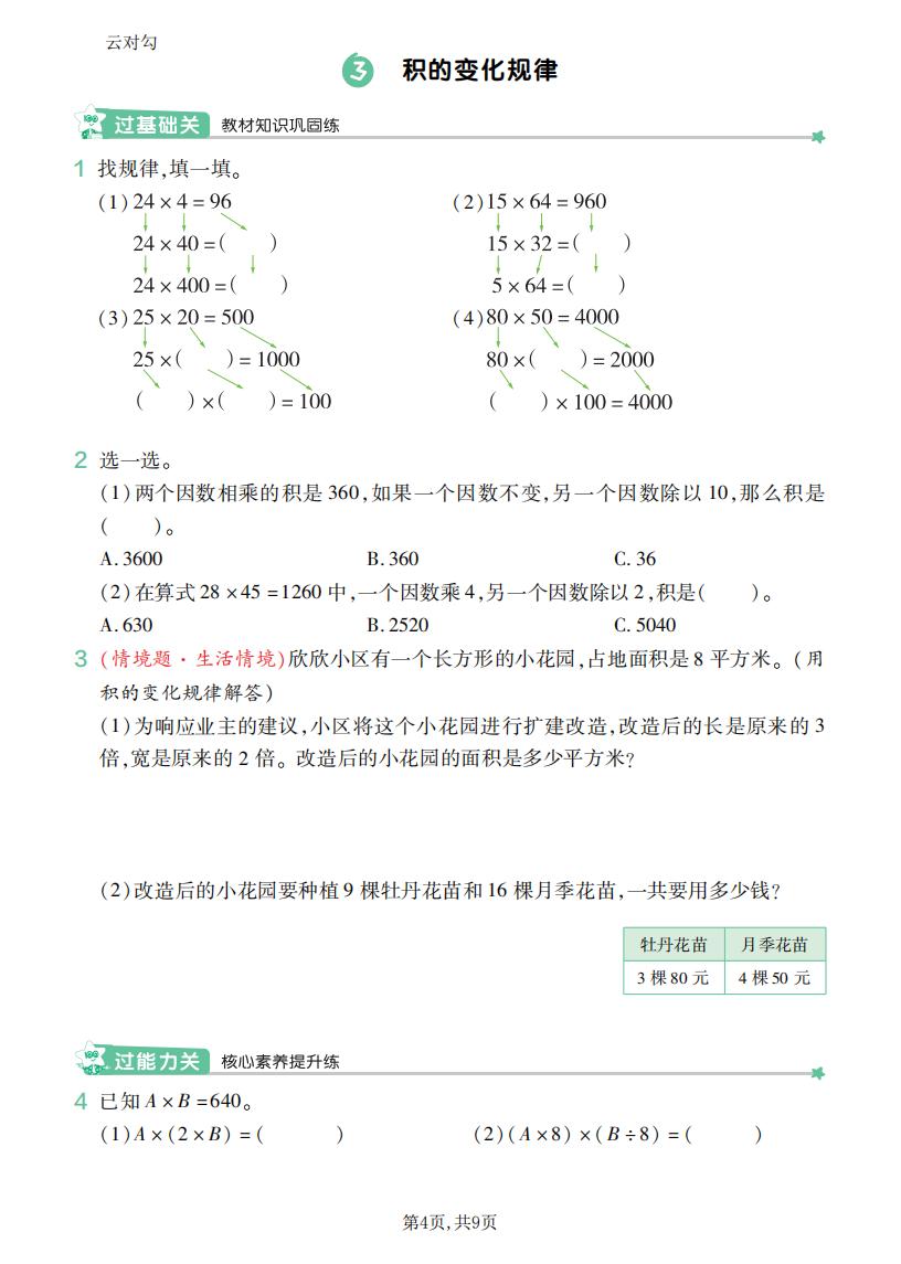 四年级数学上册RJ · 一课一练-第四单元部分-2025秋