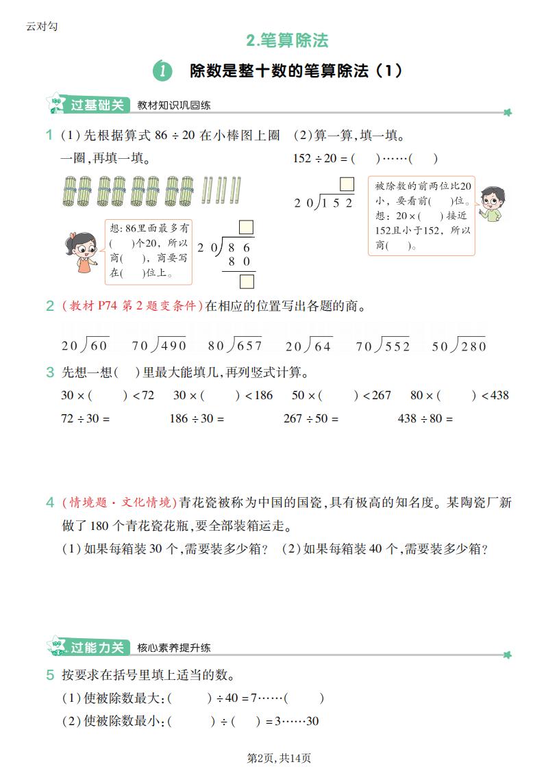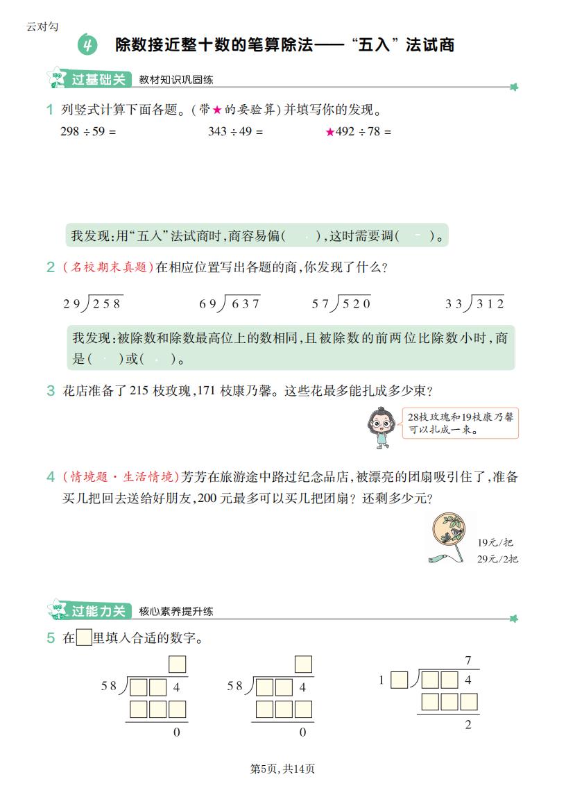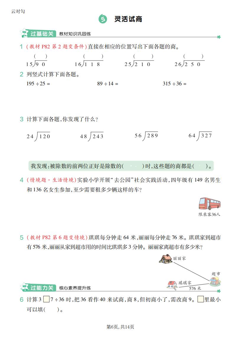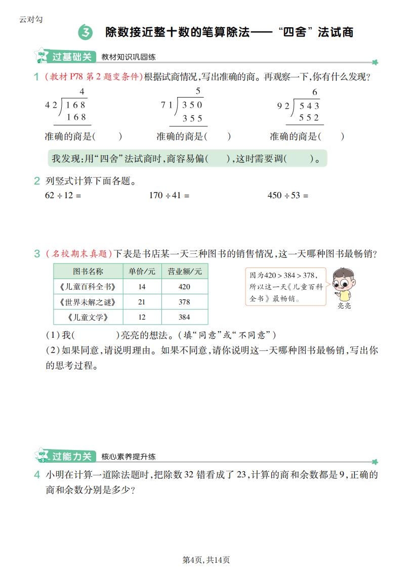 四年级数学上册RJ · 一课一练-第六单元部分-2025秋