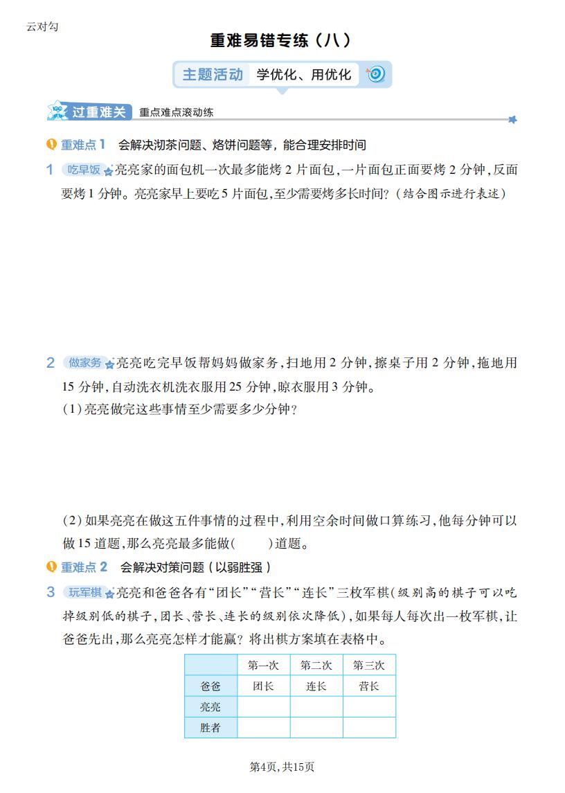 四年级数学上册RJ · 一课一练-第八单元部分-2025秋