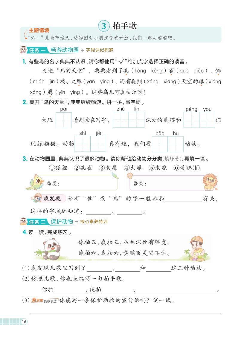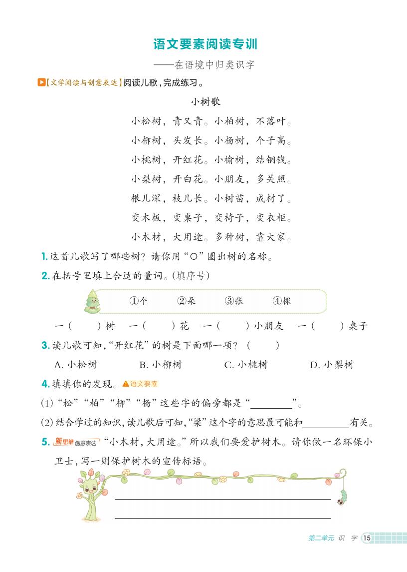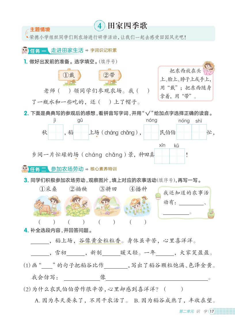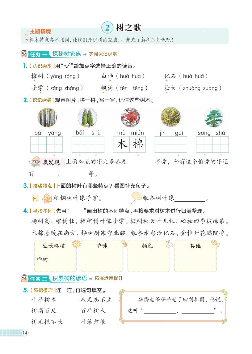 二年级语文上册 · 第二单元课练习册-2025秋