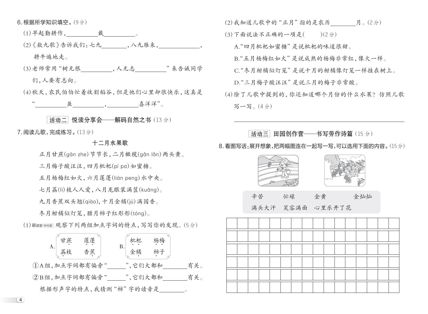 二年级语文上册 · 第二单元素质达标测试卷-2025秋