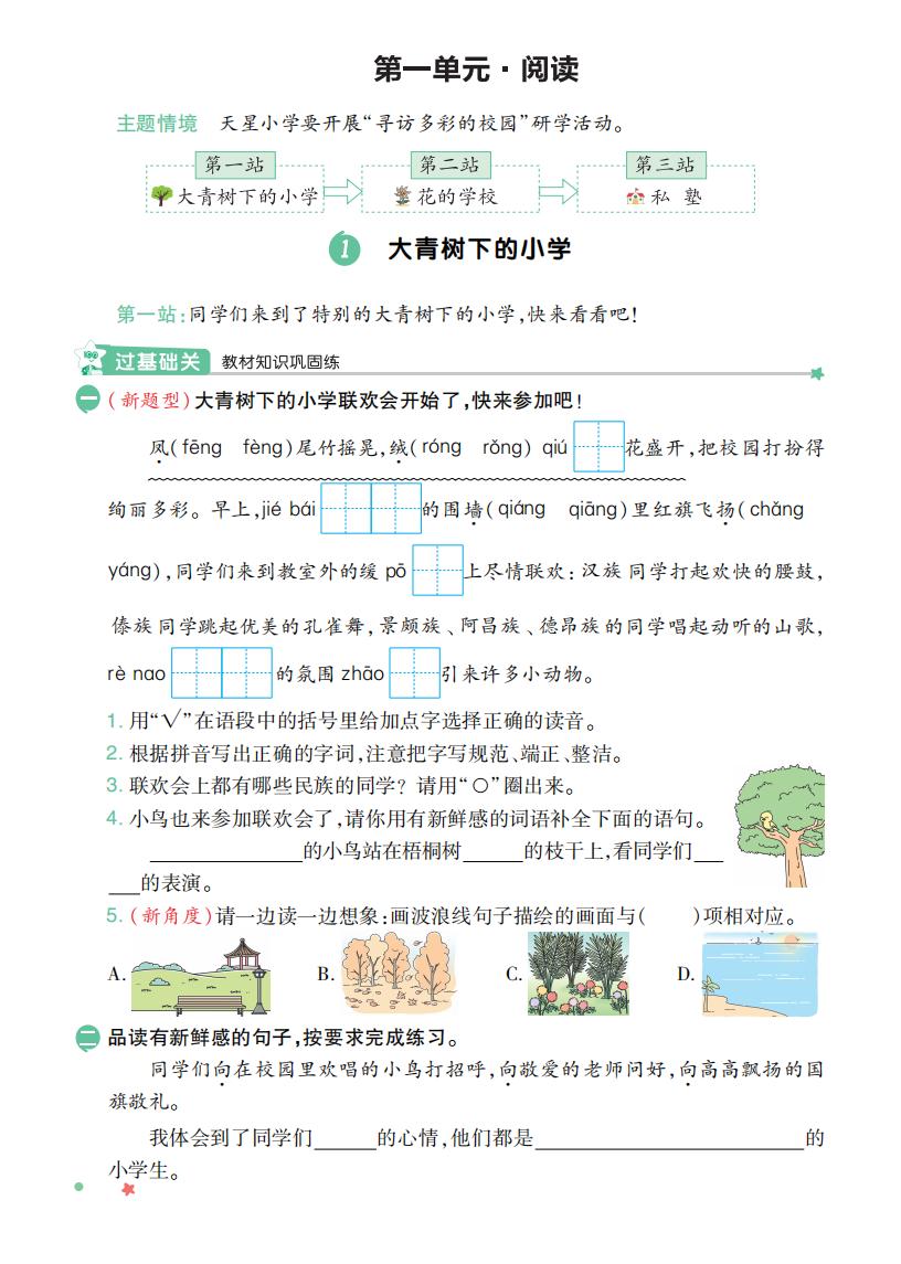 三年级语文上册 · 第一单元同步练习册-2025秋