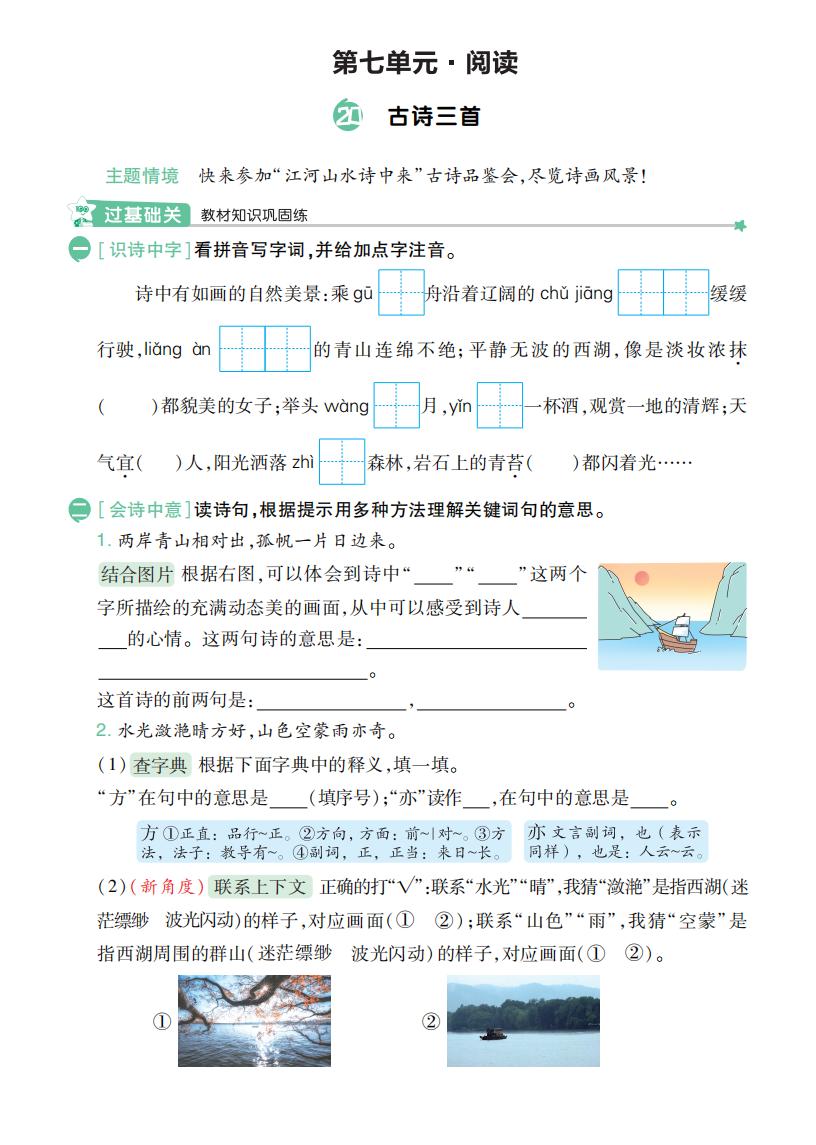 六年级语文上册 · 第三单元同步练习册-2025秋