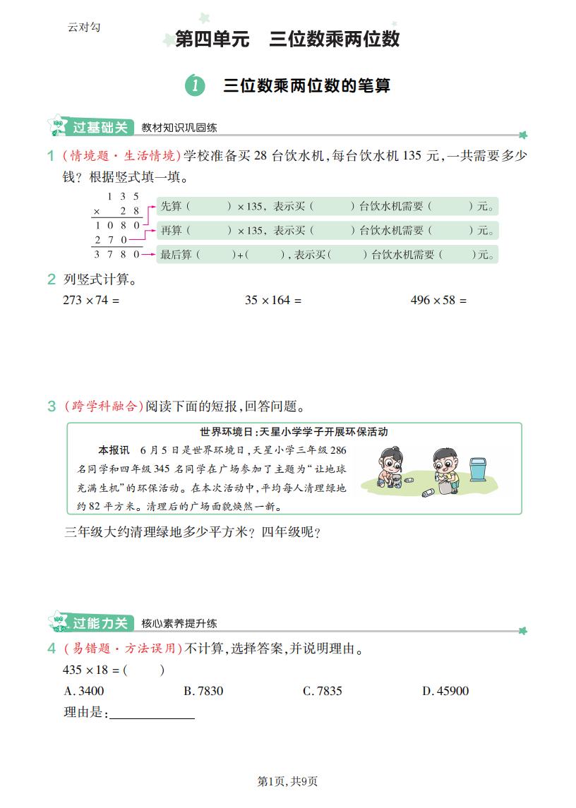 四年级语文上册 · 第一单元同步练习册-2025秋
