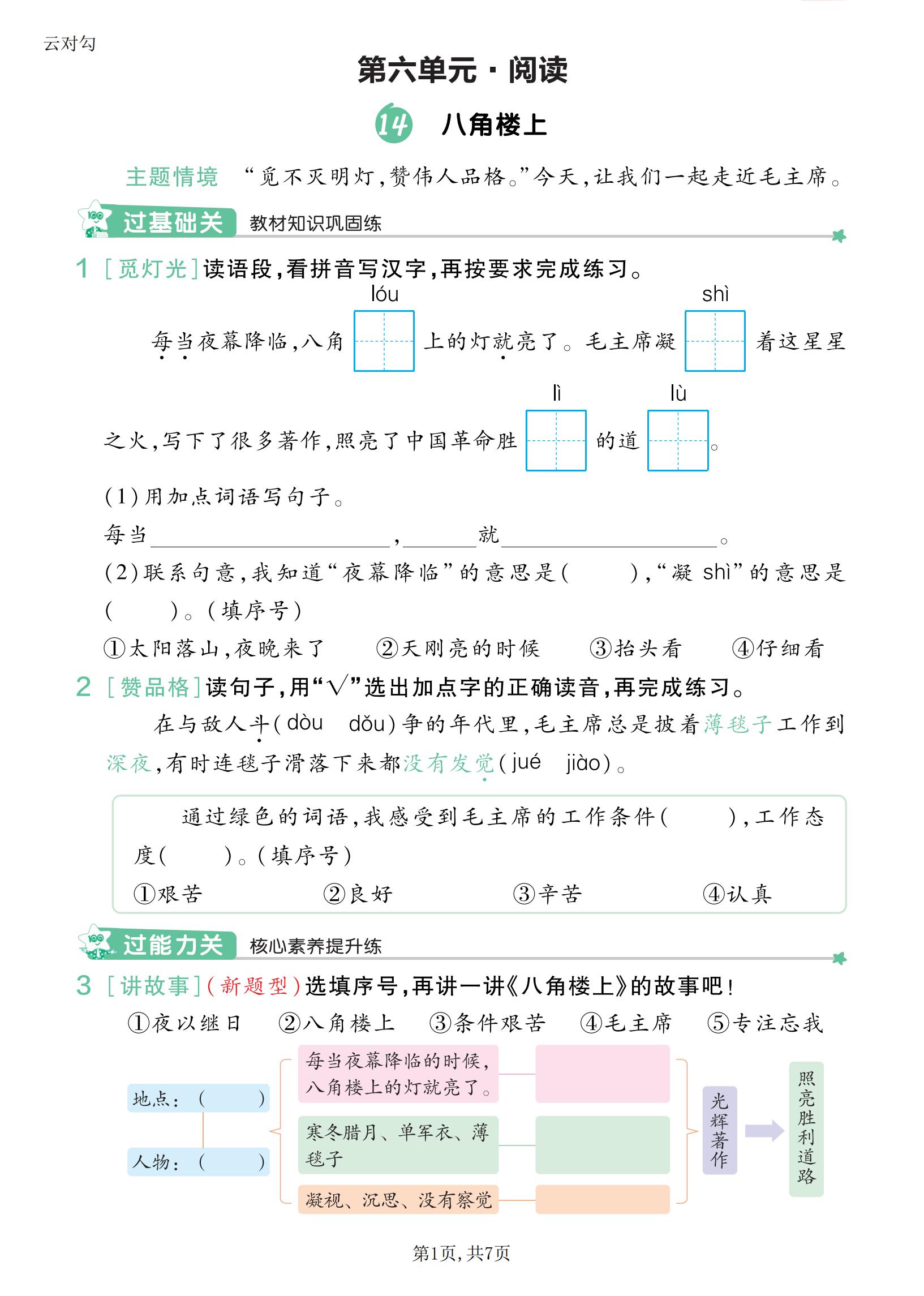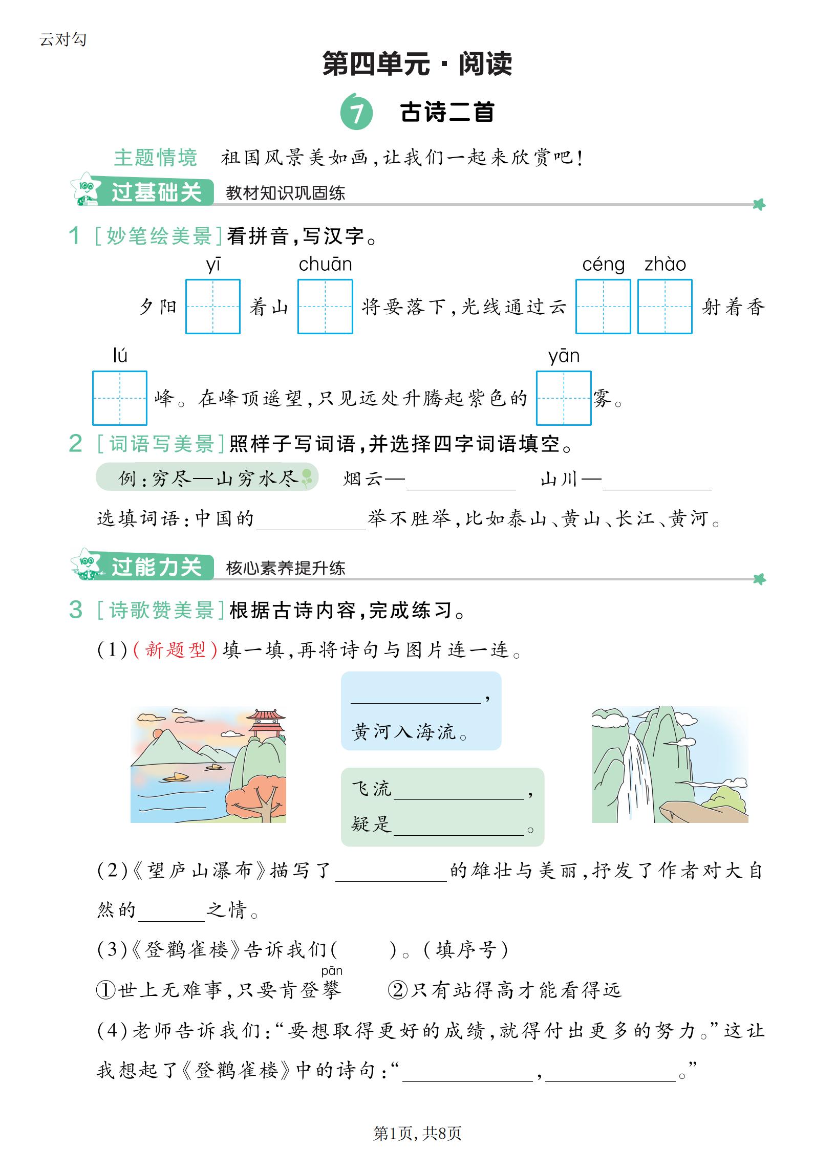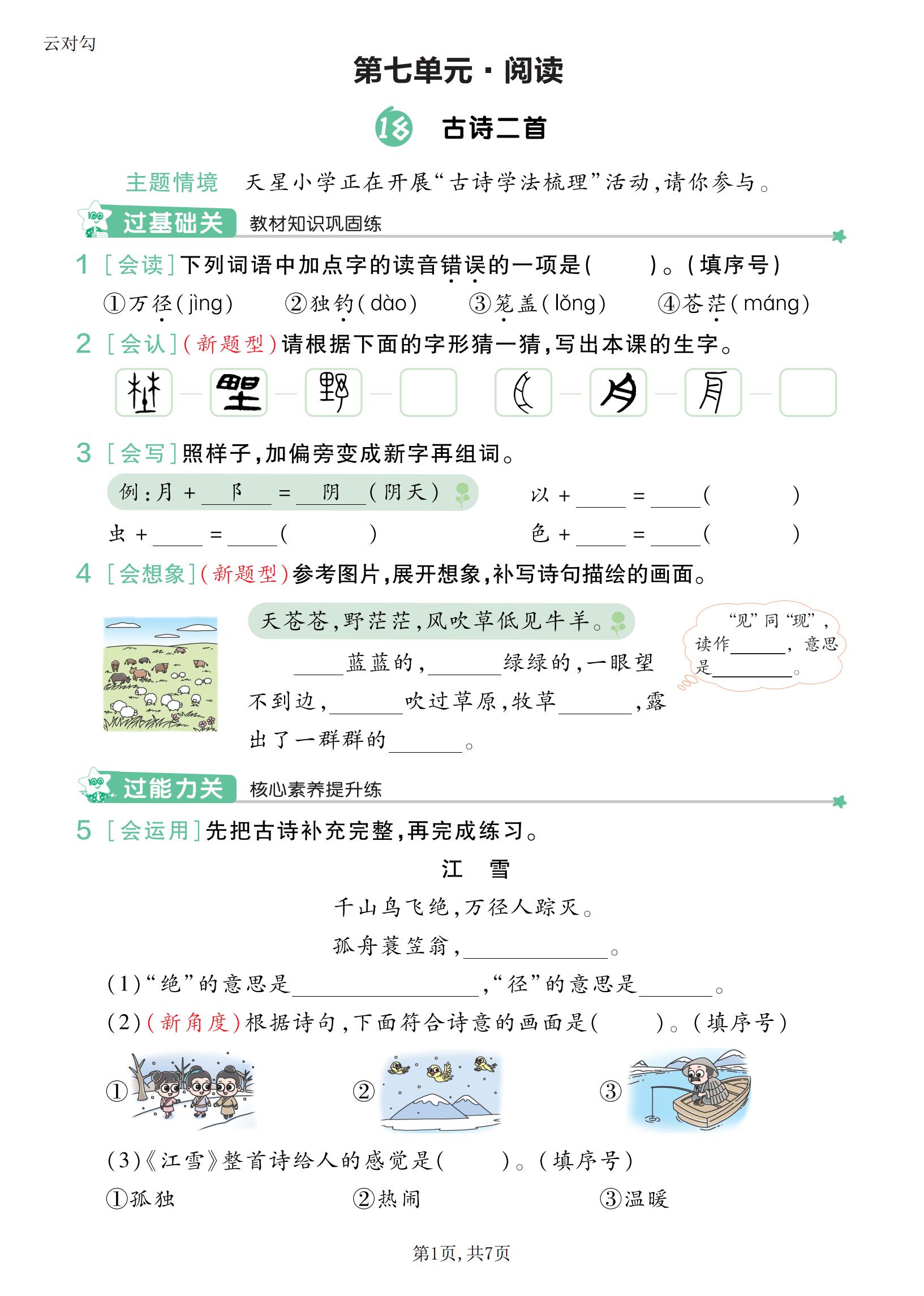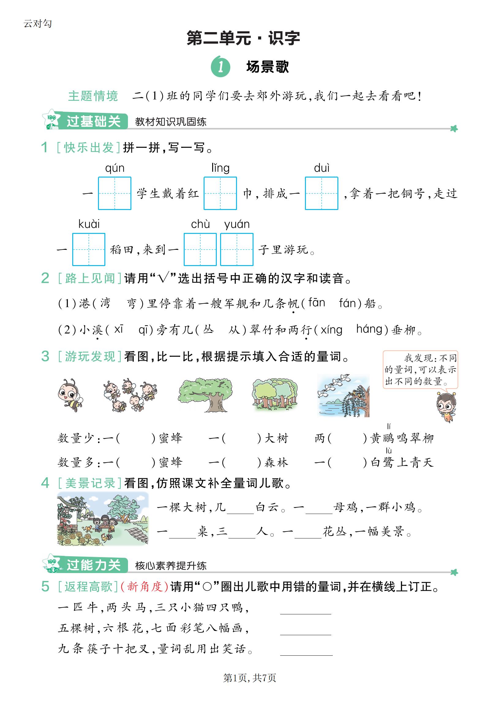 2025秋 · 二年级语文上册-一课一练-第七单元部分